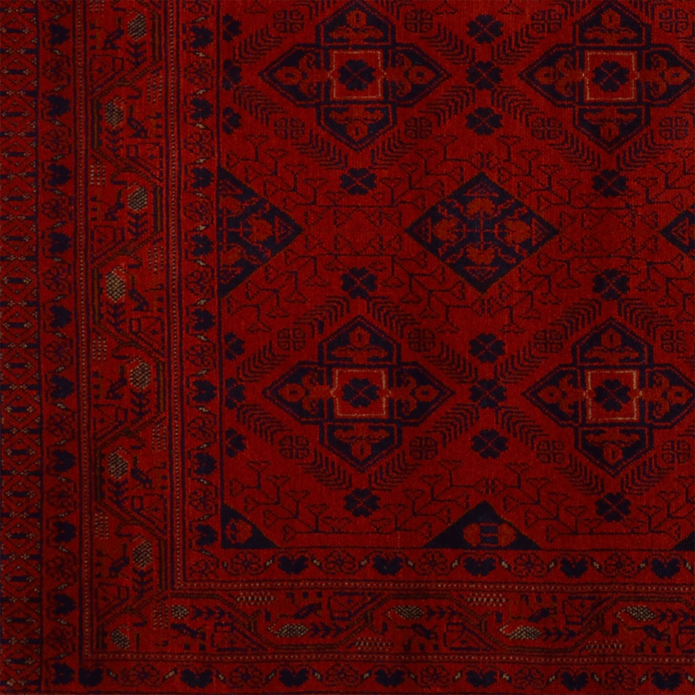Afghanische Teppiche: Teppiche und Kelims haben in Afghanistan eine lange Tradition. Im Gegensatz zu persischen Teppichen sind Afghan Teppiche meist in geometrischen Mustern und ruhigeren Farben gehalten. Die Knüpfung der Teppiche ist fest und flachflorig.