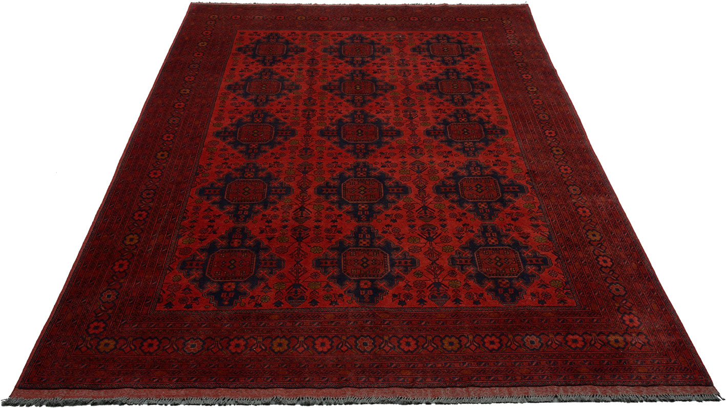 Afghanische Teppiche: Teppiche und Kelims haben in Afghanistan eine lange Tradition. Im Gegensatz zu persischen Teppichen sind Afghan Teppiche meist in geometrischen Mustern und ruhigeren Farben gehalten. Die Knüpfung der Teppiche ist fest und flachflorig.