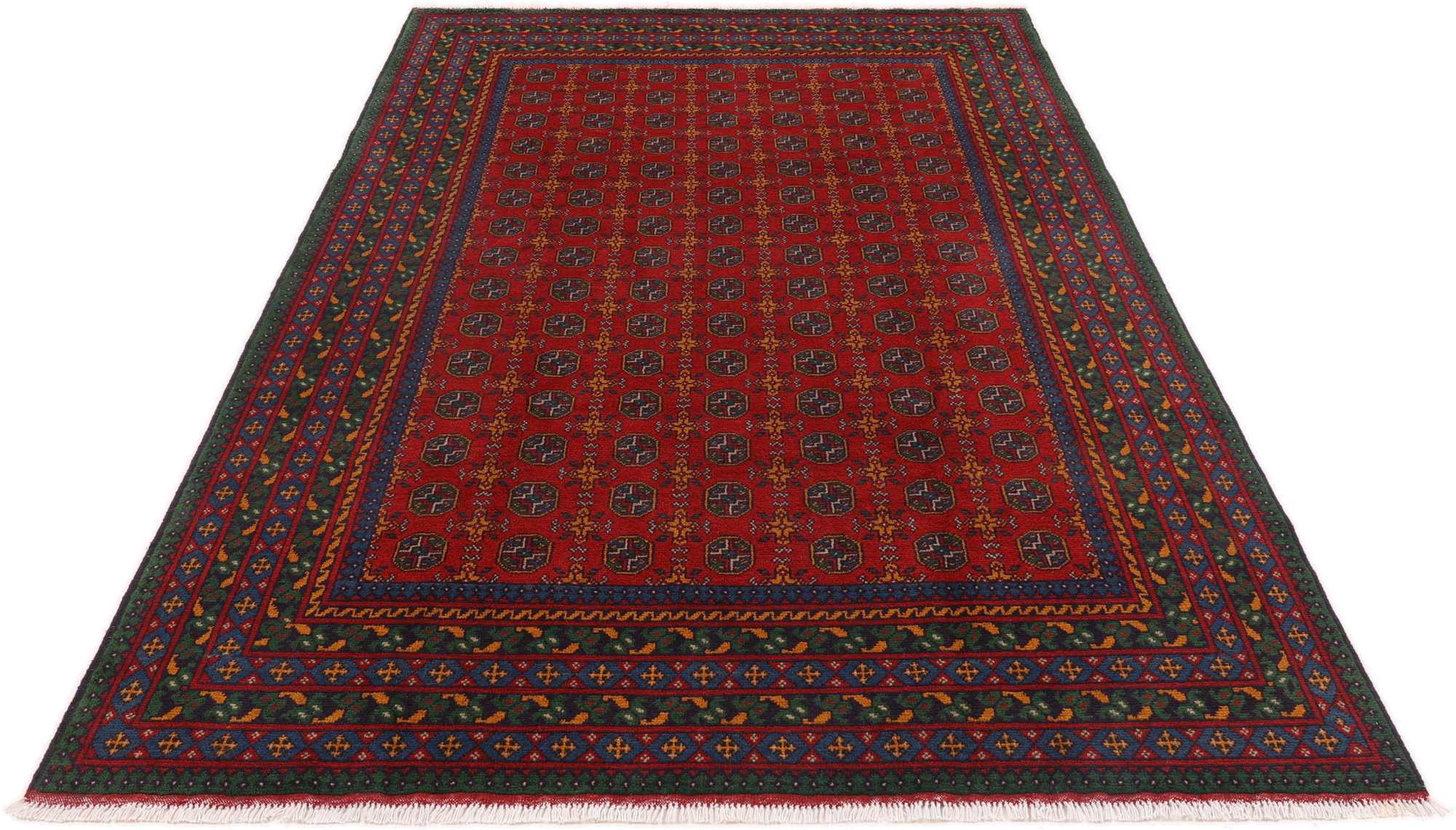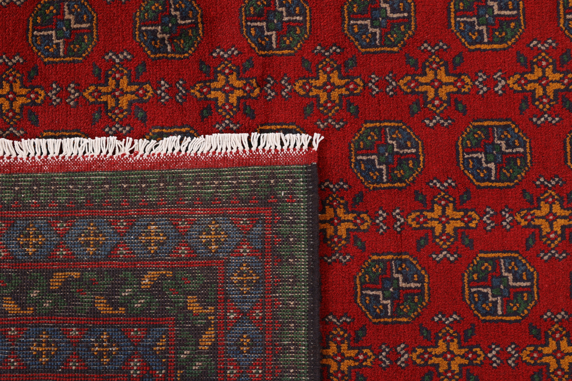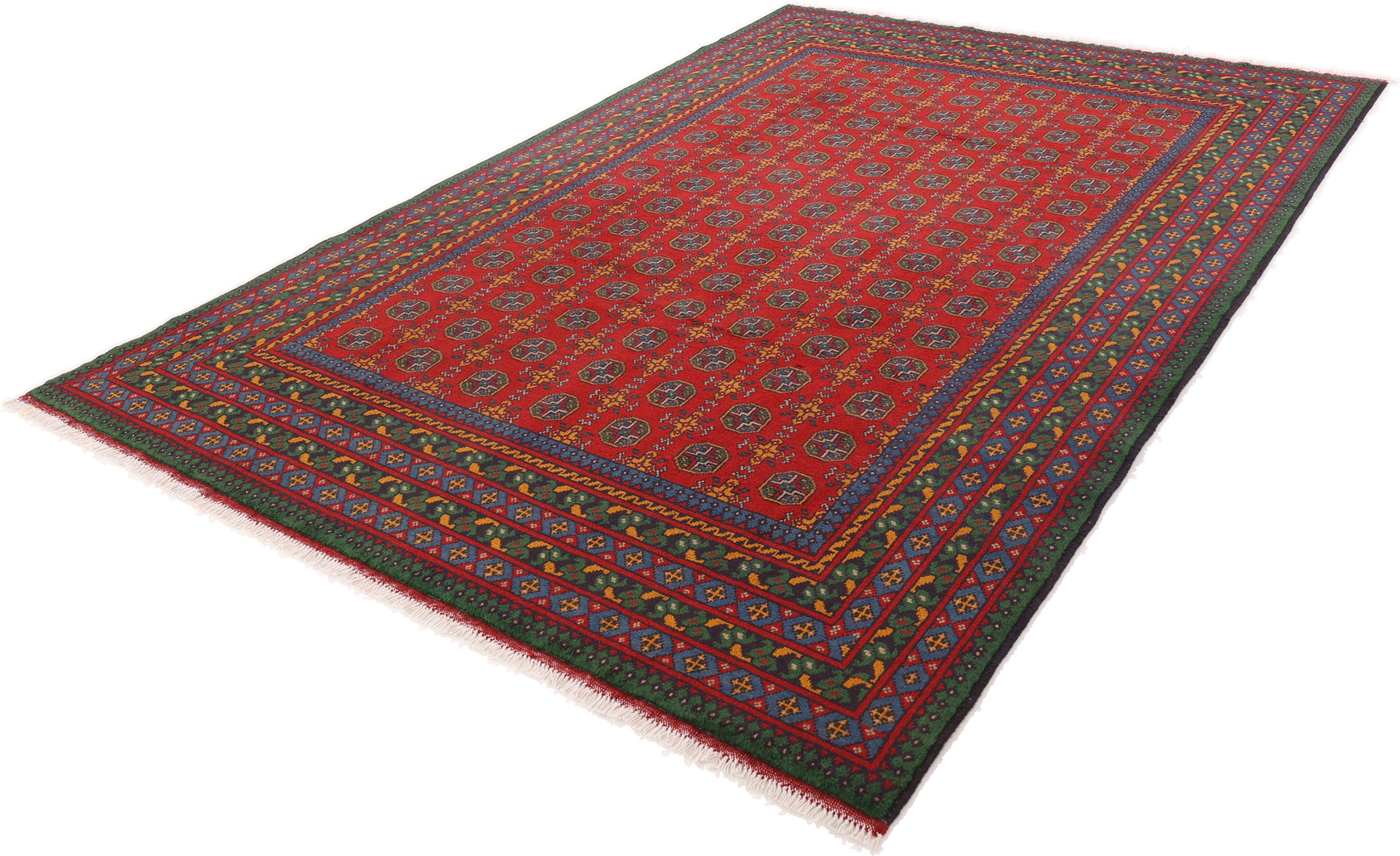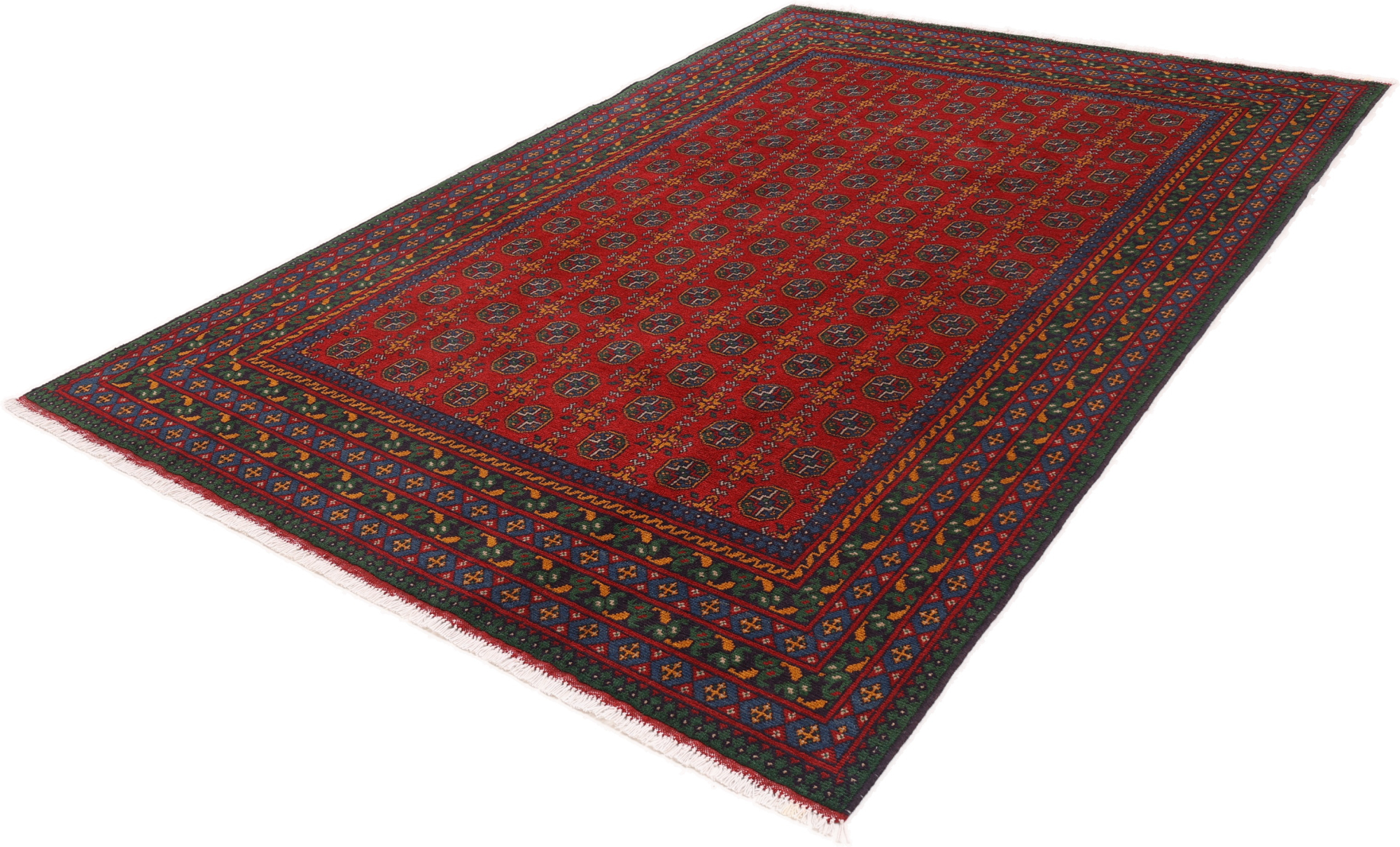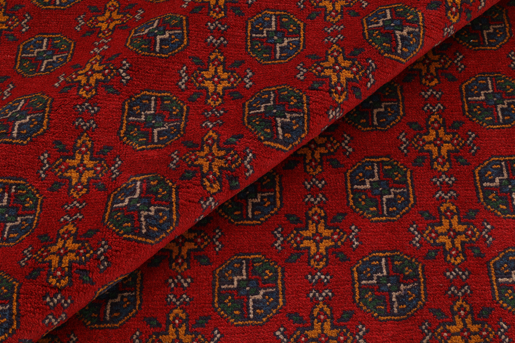 Afghanische Teppiche: Teppiche und Kelims haben in Afghanistan eine lange Tradition. Im Gegensatz zu persischen Teppichen sind Afghan Teppiche meist in geometrischen Mustern und ruhigeren Farben gehalten. Die Knüpfung der Teppiche ist fest und flachflorig.
