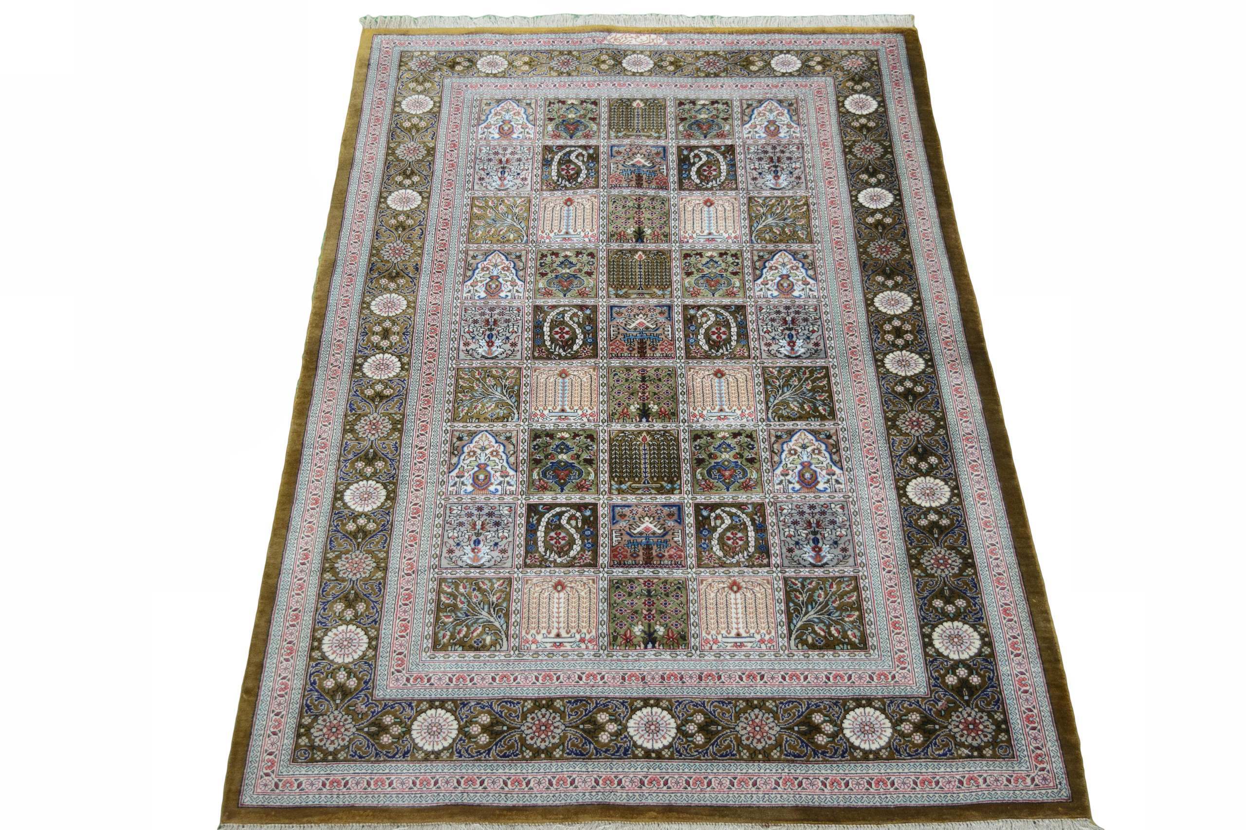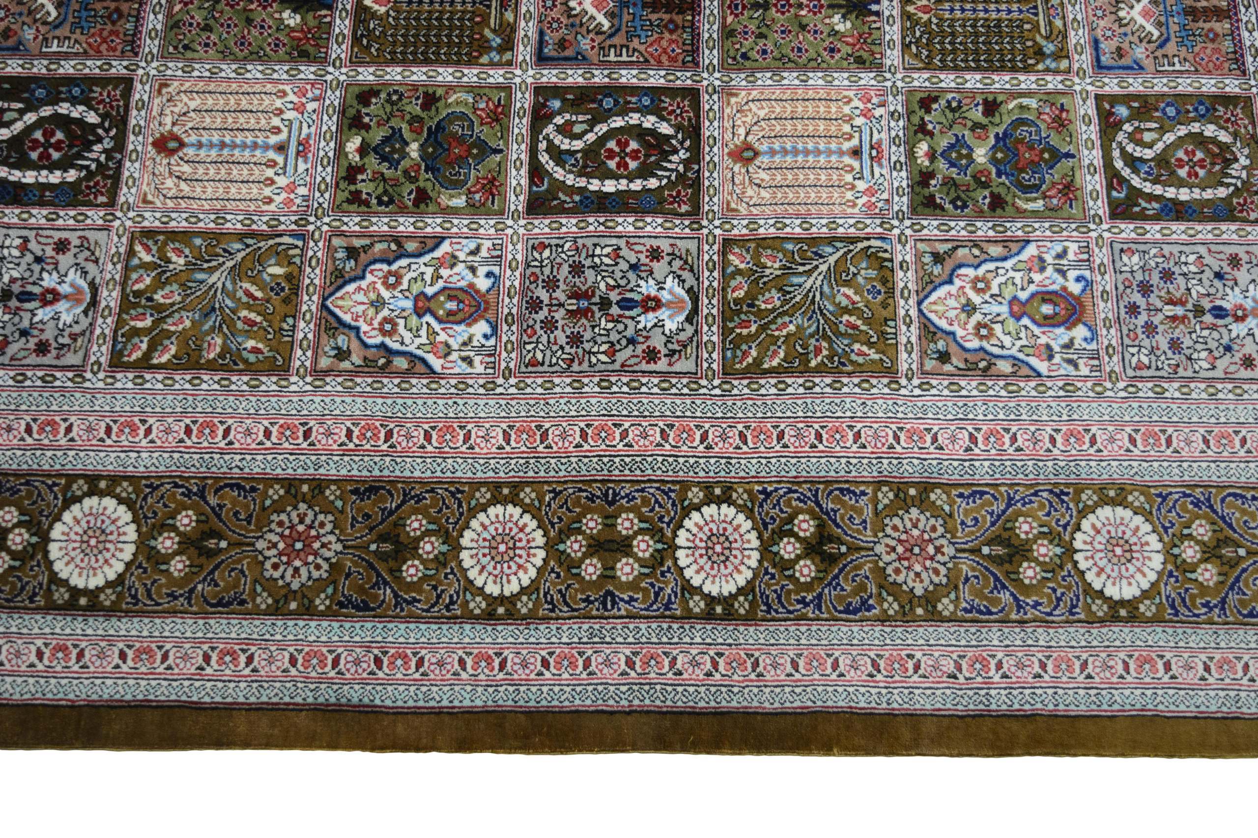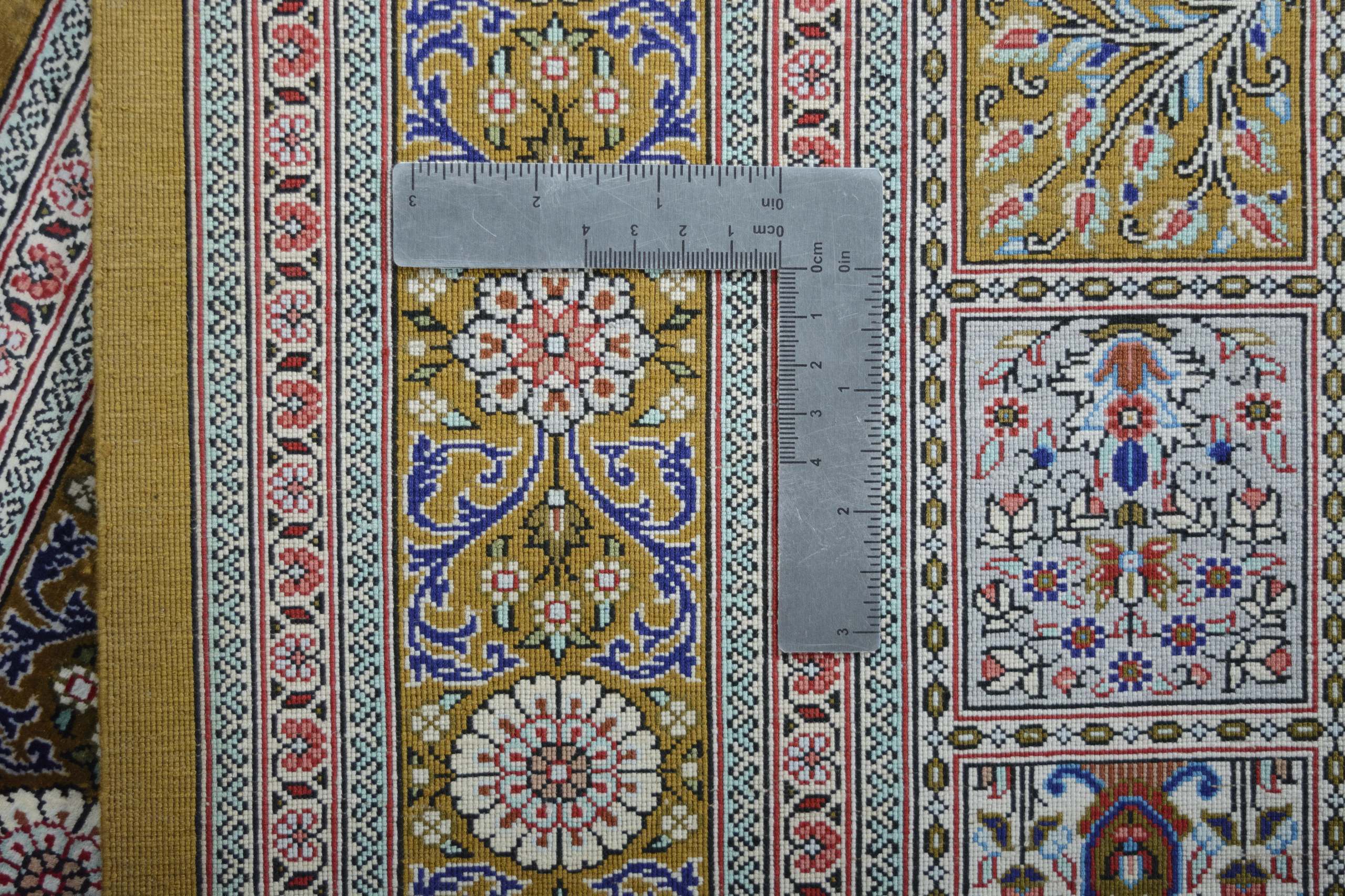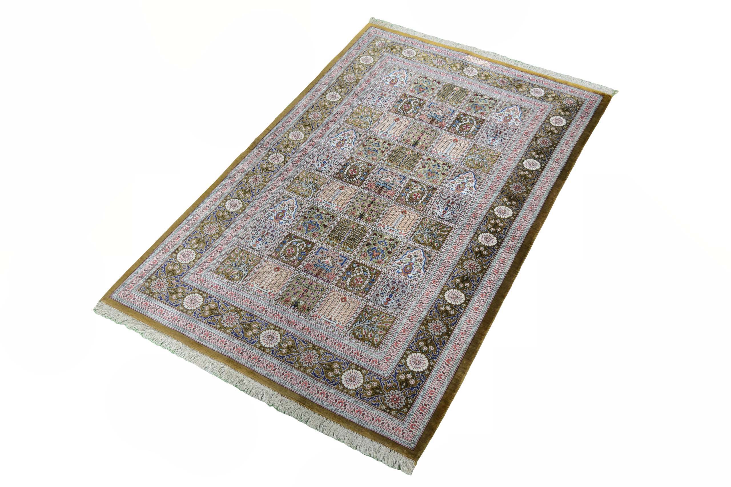 Flor aus Seide: Seide ist das feinste und geschmeidigste Garn der Welt und verleiht dem Teppich dadurch eine sehr exklusive Note. Seide wird nur für sehr hochwertige Teppiche verwendet und verleiht dem Teppich eine sehr angenehme Haptik.