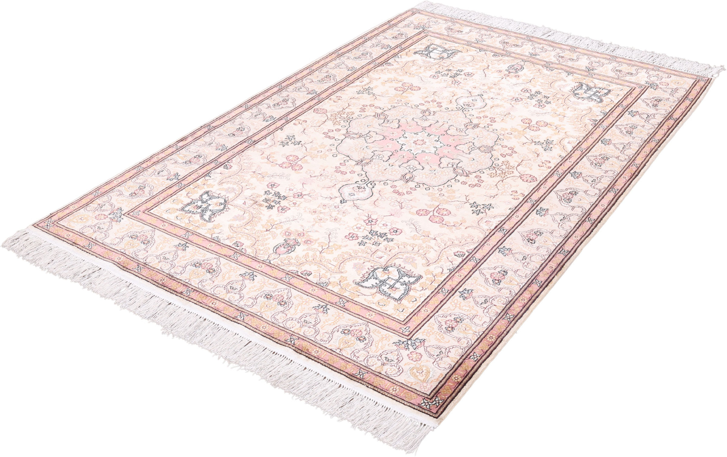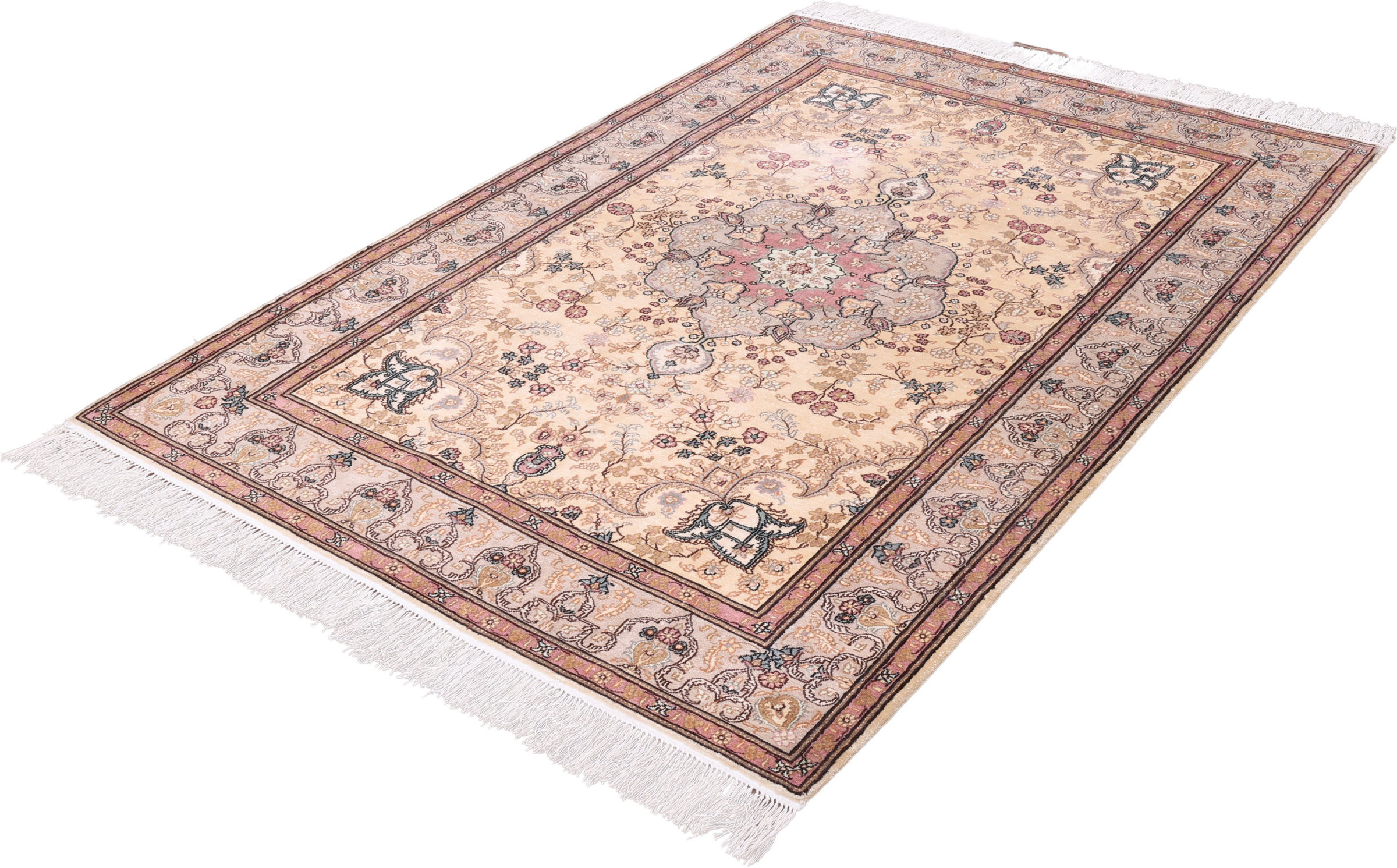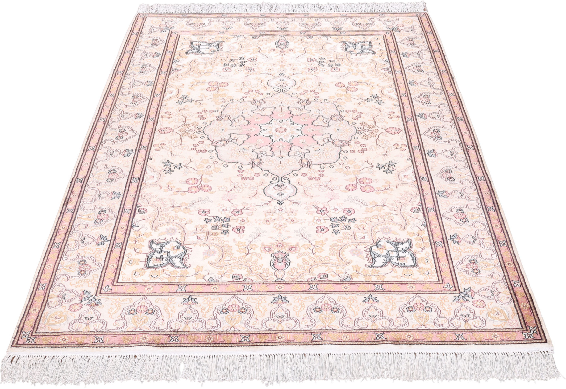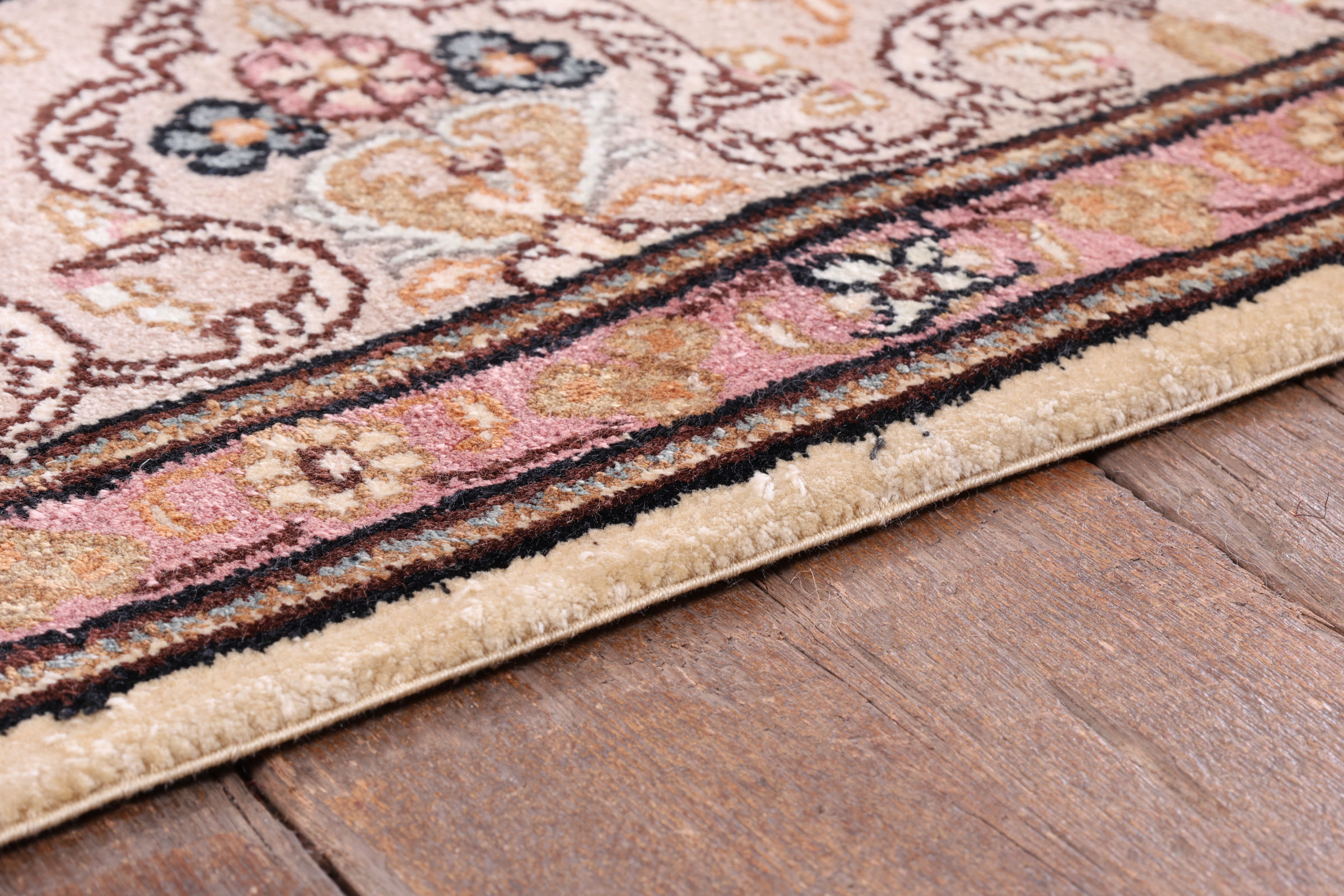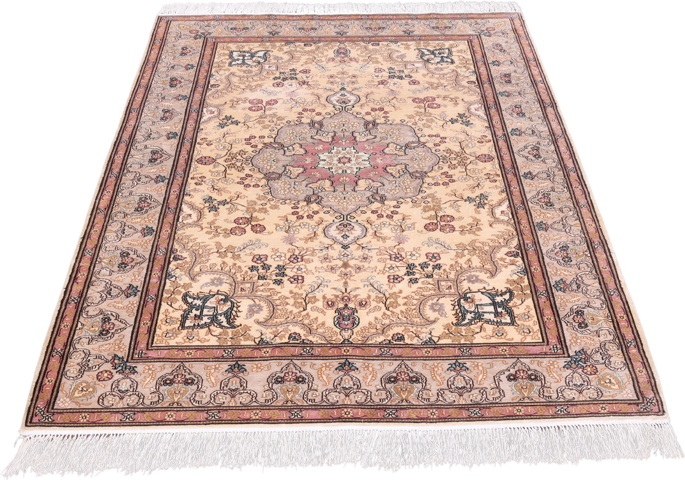 Flor aus Seide: Seide ist das feinste und geschmeidigste Garn der Welt und verleiht dem Teppich dadurch eine sehr exklusive Note. Seide wird nur für sehr hochwertige Teppiche verwendet und verleiht dem Teppich eine sehr angenehme Haptik.