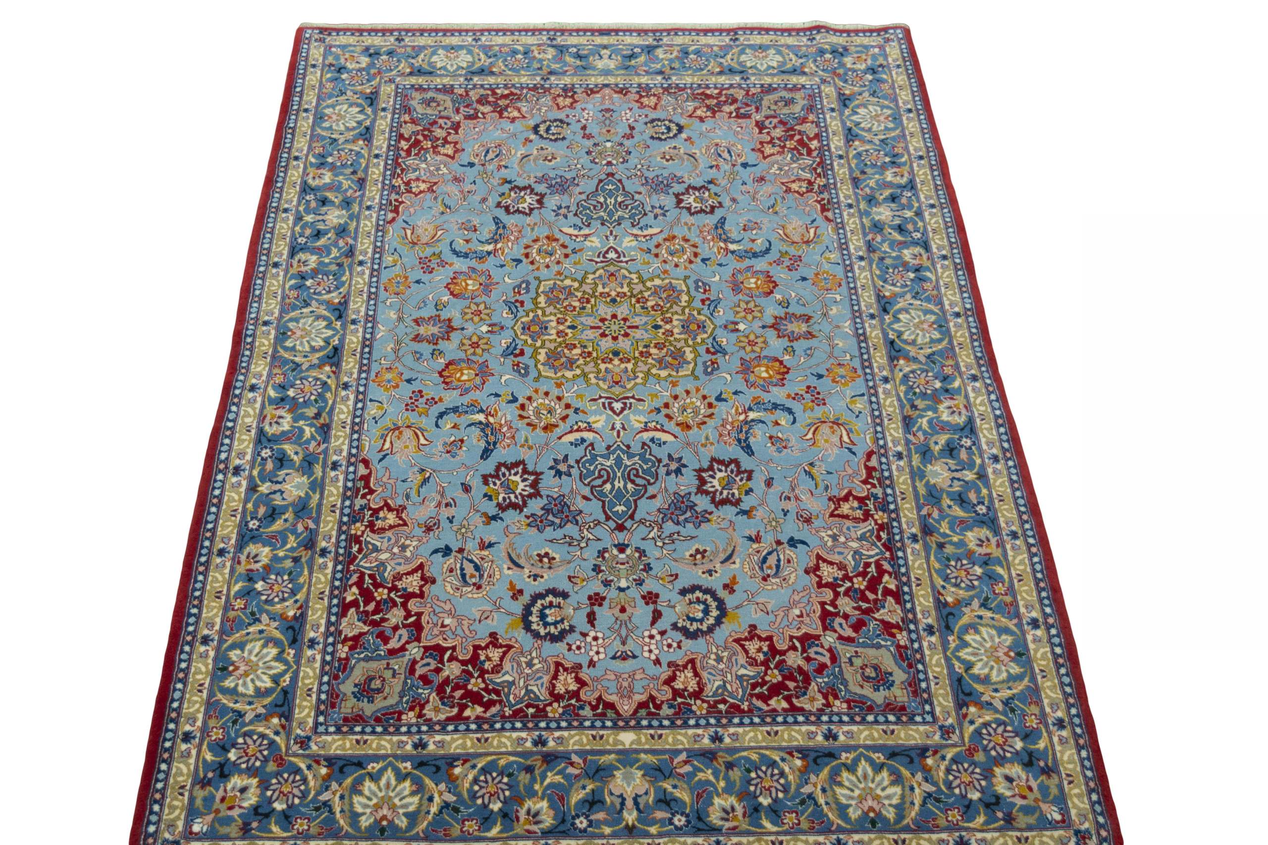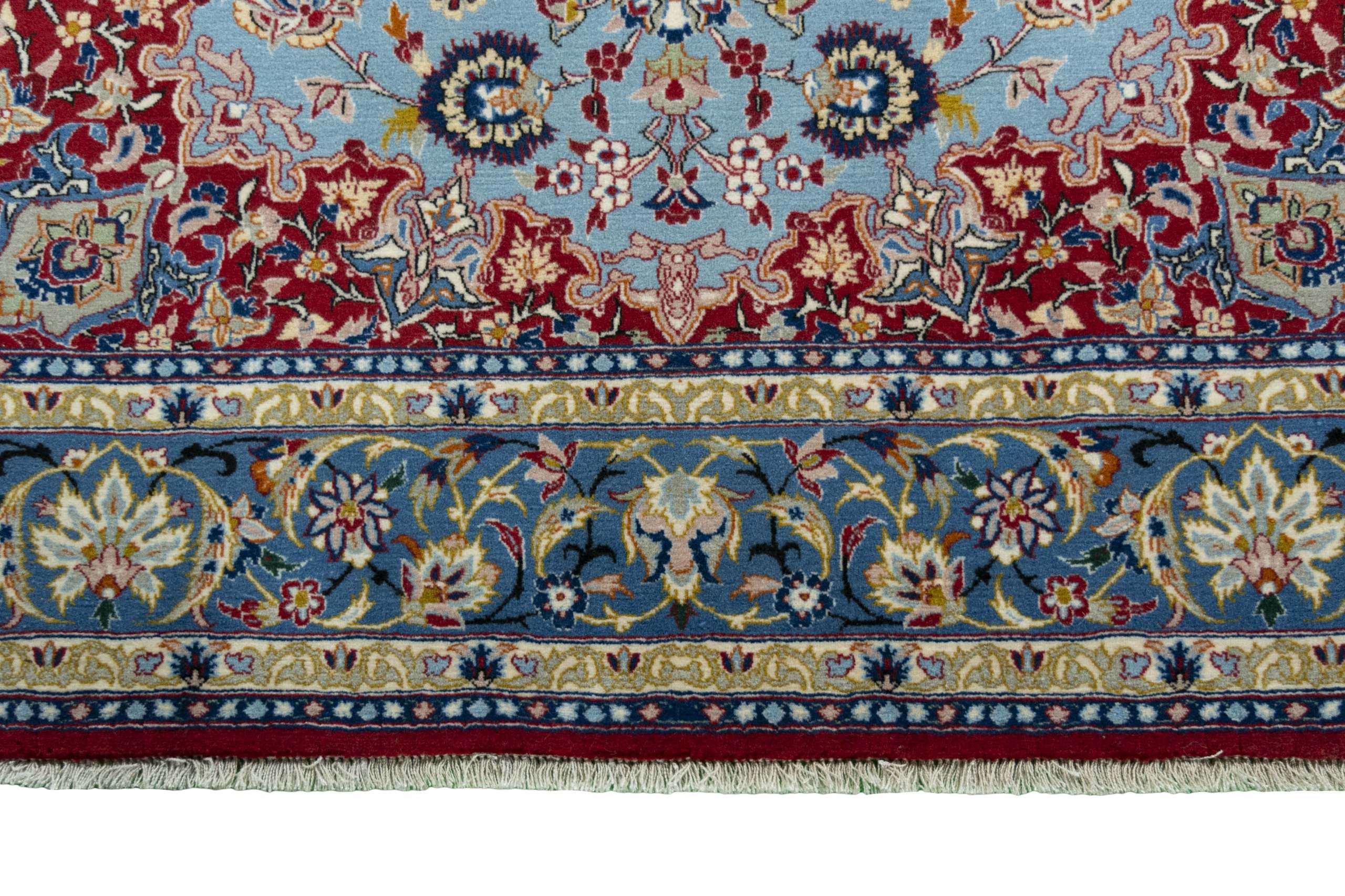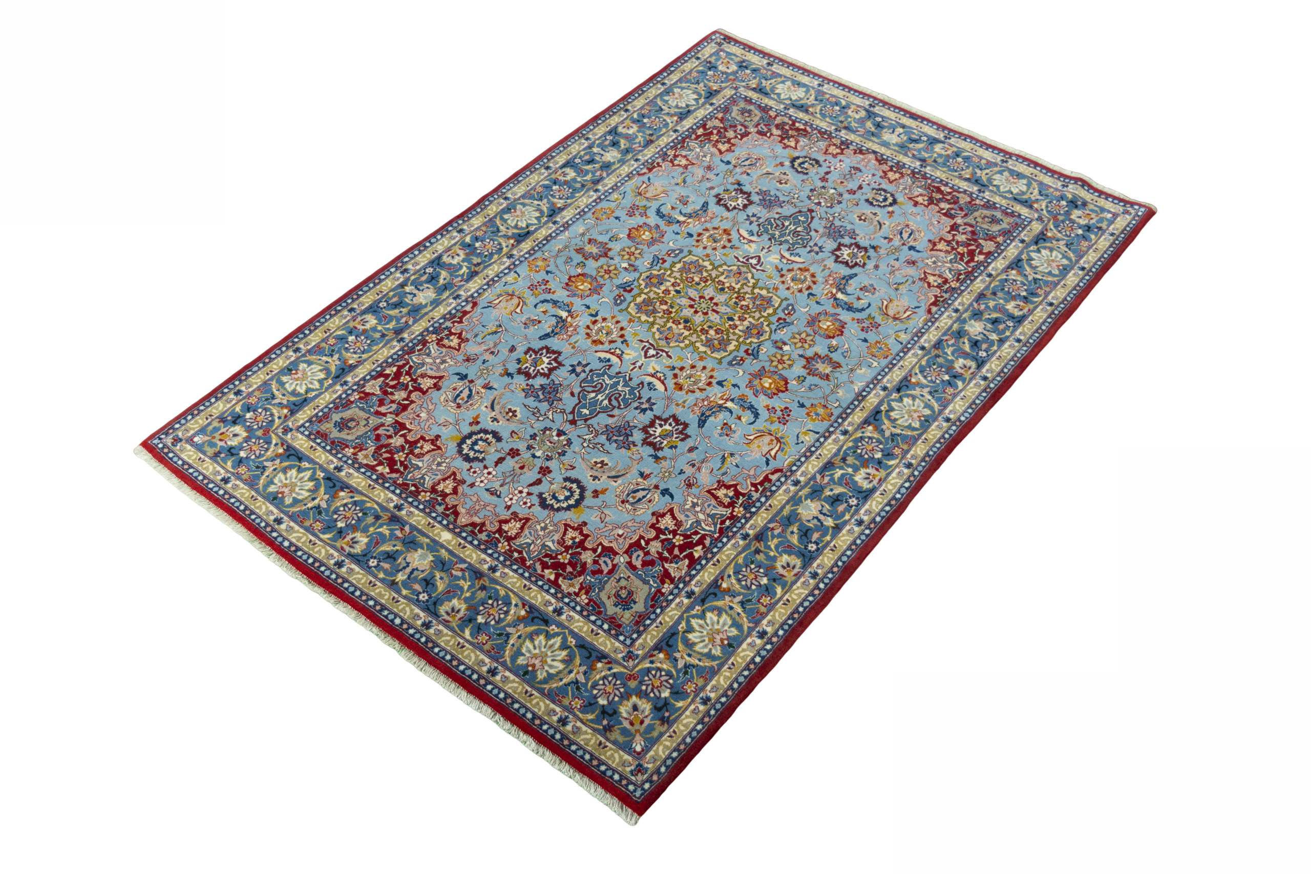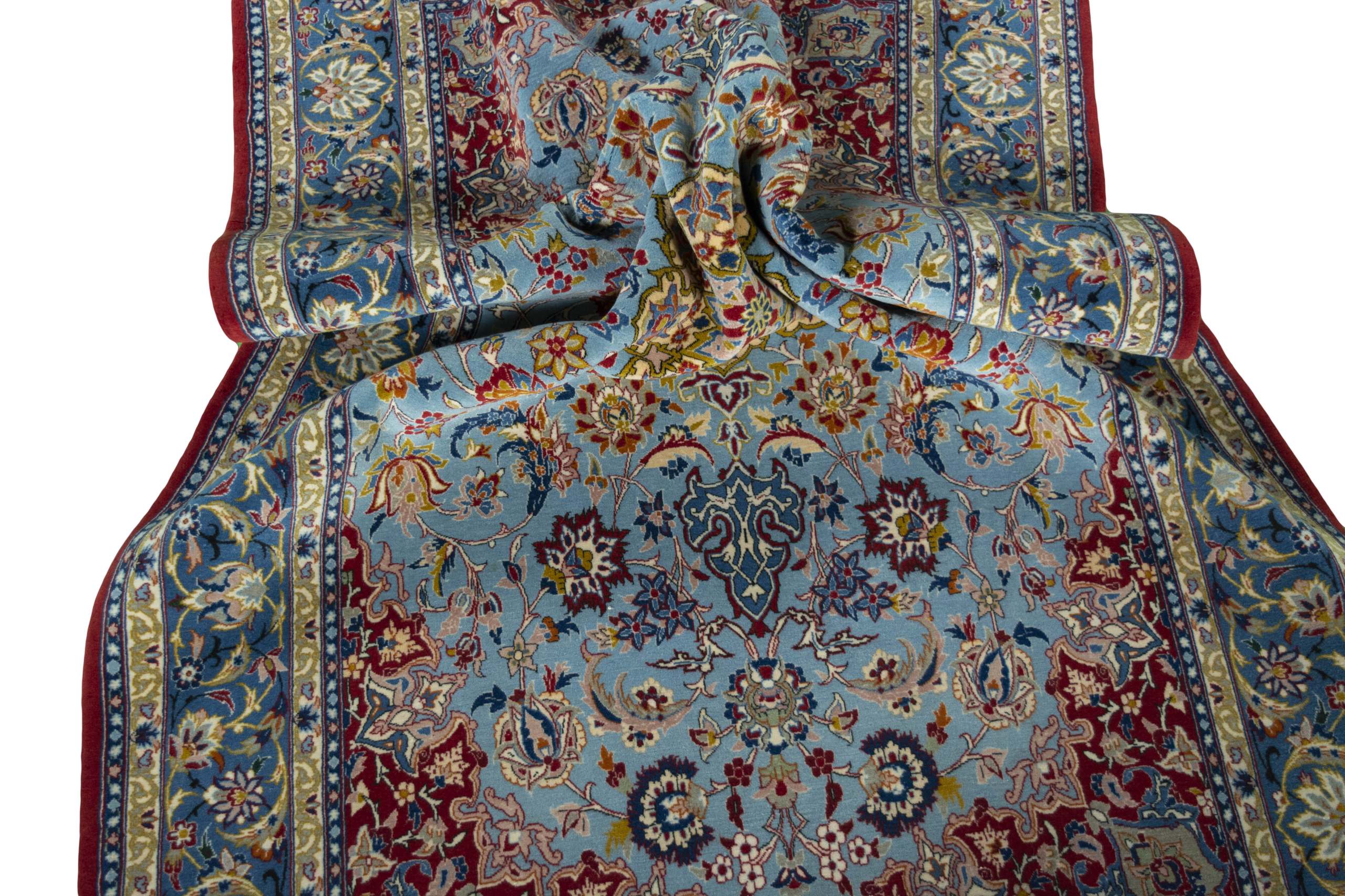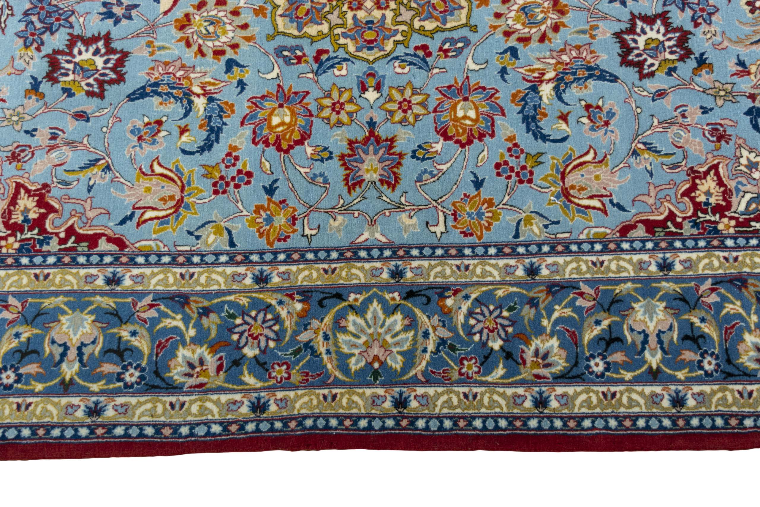 Isfahan Teppiche: Die Stadt Isfahan ist das kulturelle Herz Persiens. Die Designs und Muster Isfahans beeinflussen bis heute den gesamten Orient. Feine Isfahan Teppiche erreichen eine Knotenzahl von bis zu einer Million Knoten pro Quadratmeter. Besonders feine und hochwertige Isfahan Teppiche werden auf Seide geknüpft. Mit einem echten Isfahan Teppich erhält Ihr Zuhause ein optisches Highlight persischer Knüpfkunst. Die hochwertige Verarbeitung, die feine Korkwolle und die floralen persischen Muster machen den Isfahan zum exklusivsten Perserteppich überhaupt.
