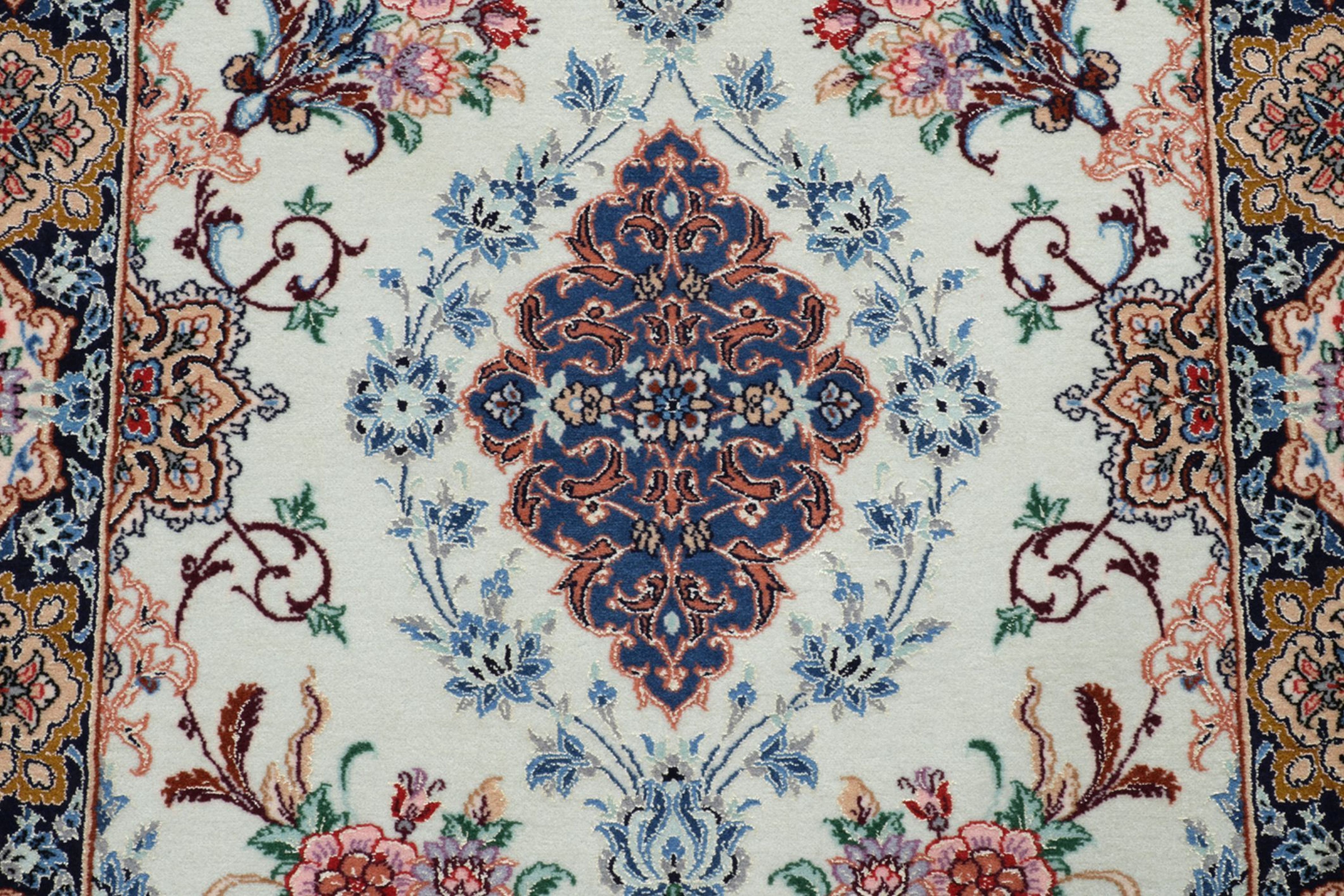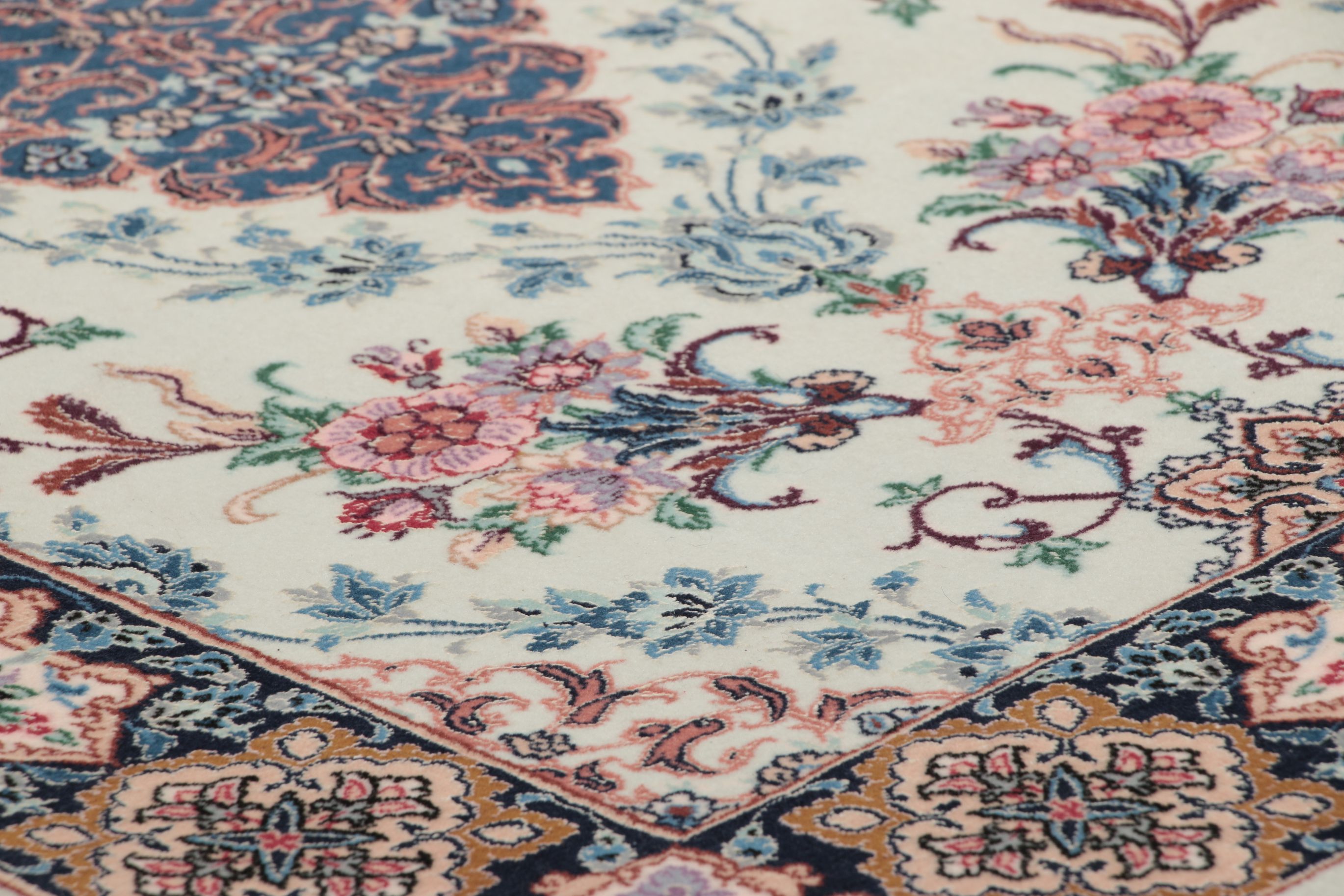 Isfahan Teppiche: Die Stadt Isfahan ist das kulturelle Herz Persiens. Die Designs und Muster Isfahans beeinflussen bis heute den gesamten Orient. Feine Isfahan Teppiche erreichen eine Knotenzahl von bis zu einer Million Knoten pro Quadratmeter. Besonders feine und hochwertige Isfahan Teppiche werden auf Seide geknüpft. Mit einem echten Isfahan Teppich erhält Ihr Zuhause ein optisches Highlight persischer Knüpfkunst. Die hochwertige Verarbeitung, die feine Korkwolle und die floralen persischen Muster machen den Isfahan zum exklusivsten Perserteppich überhaupt.