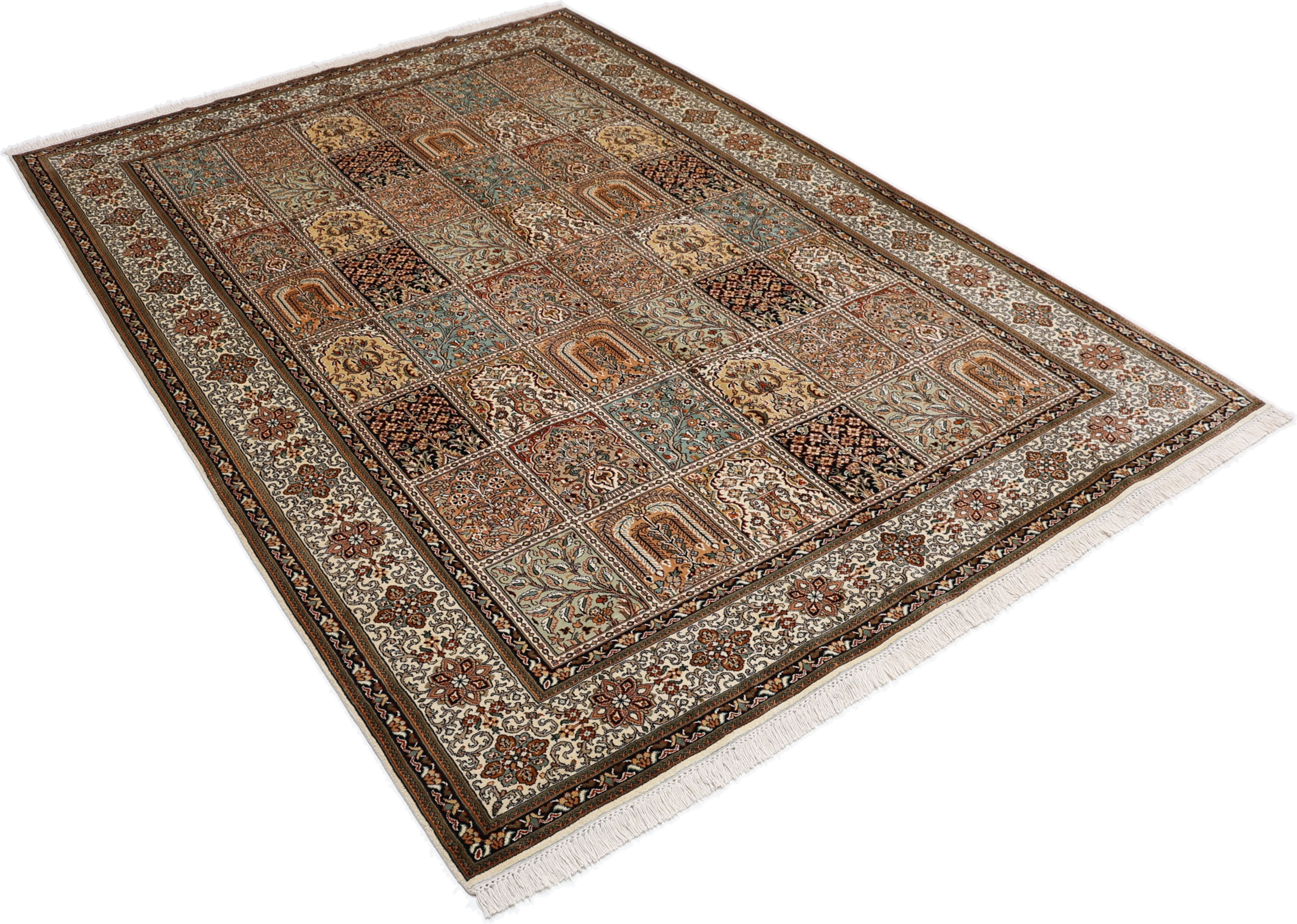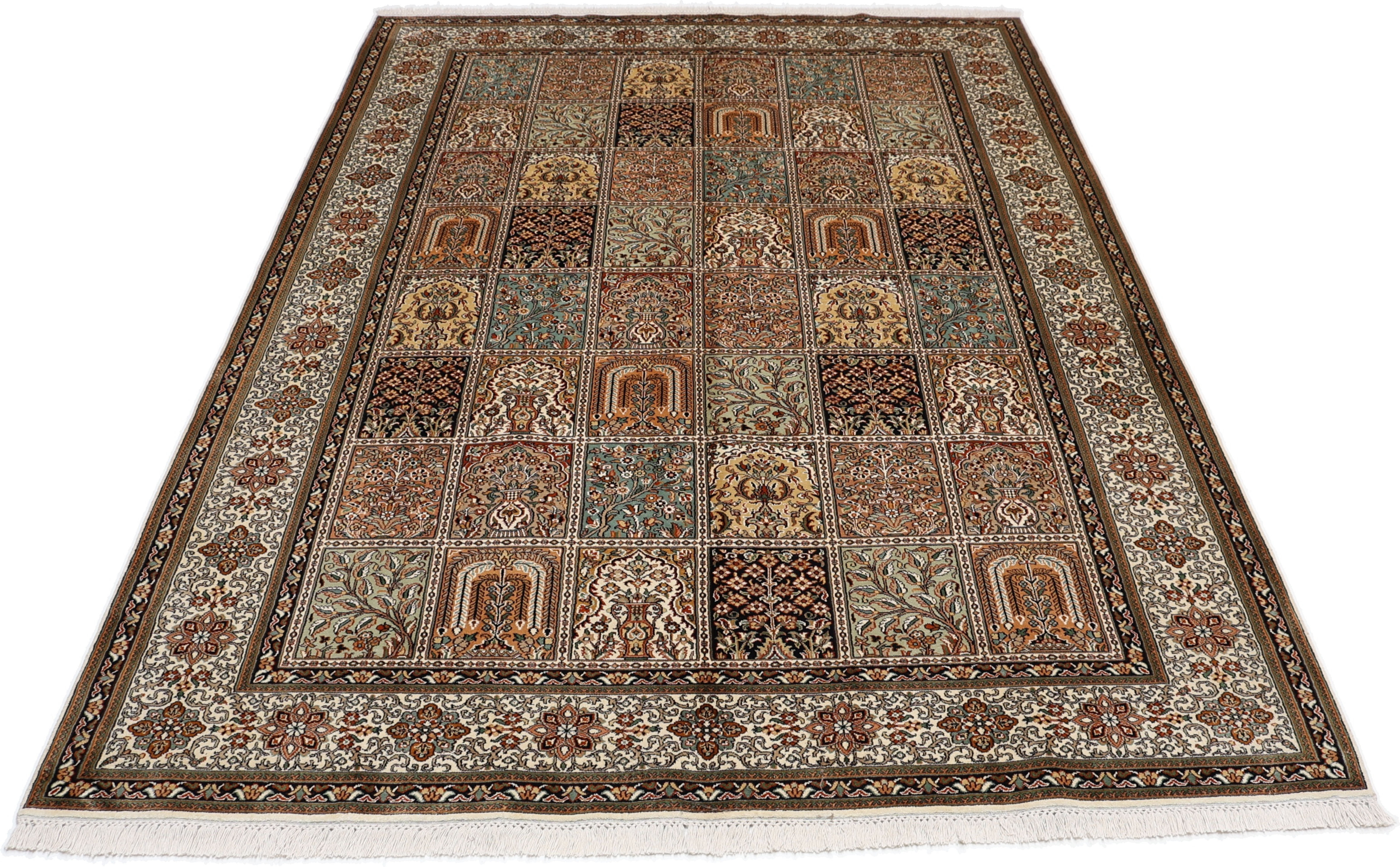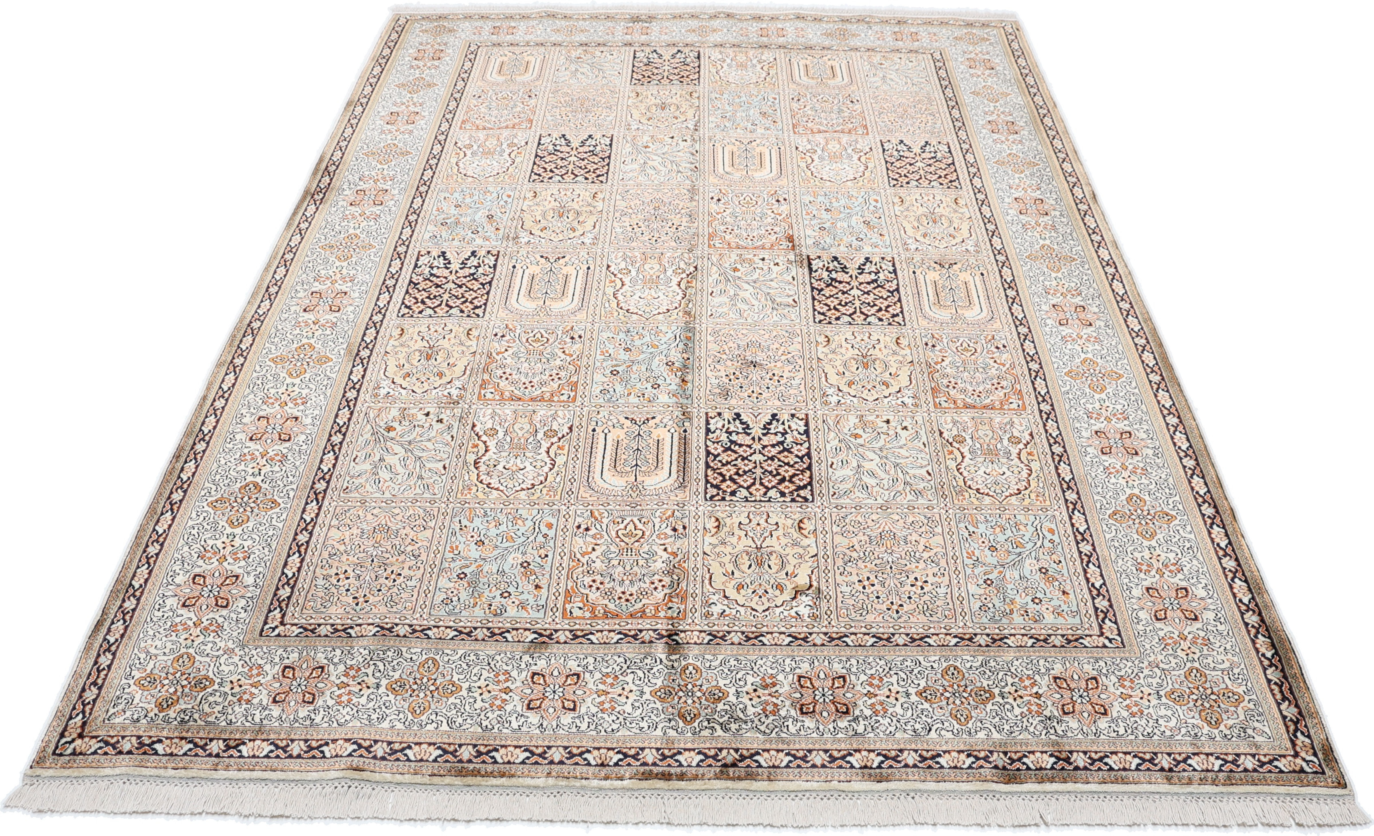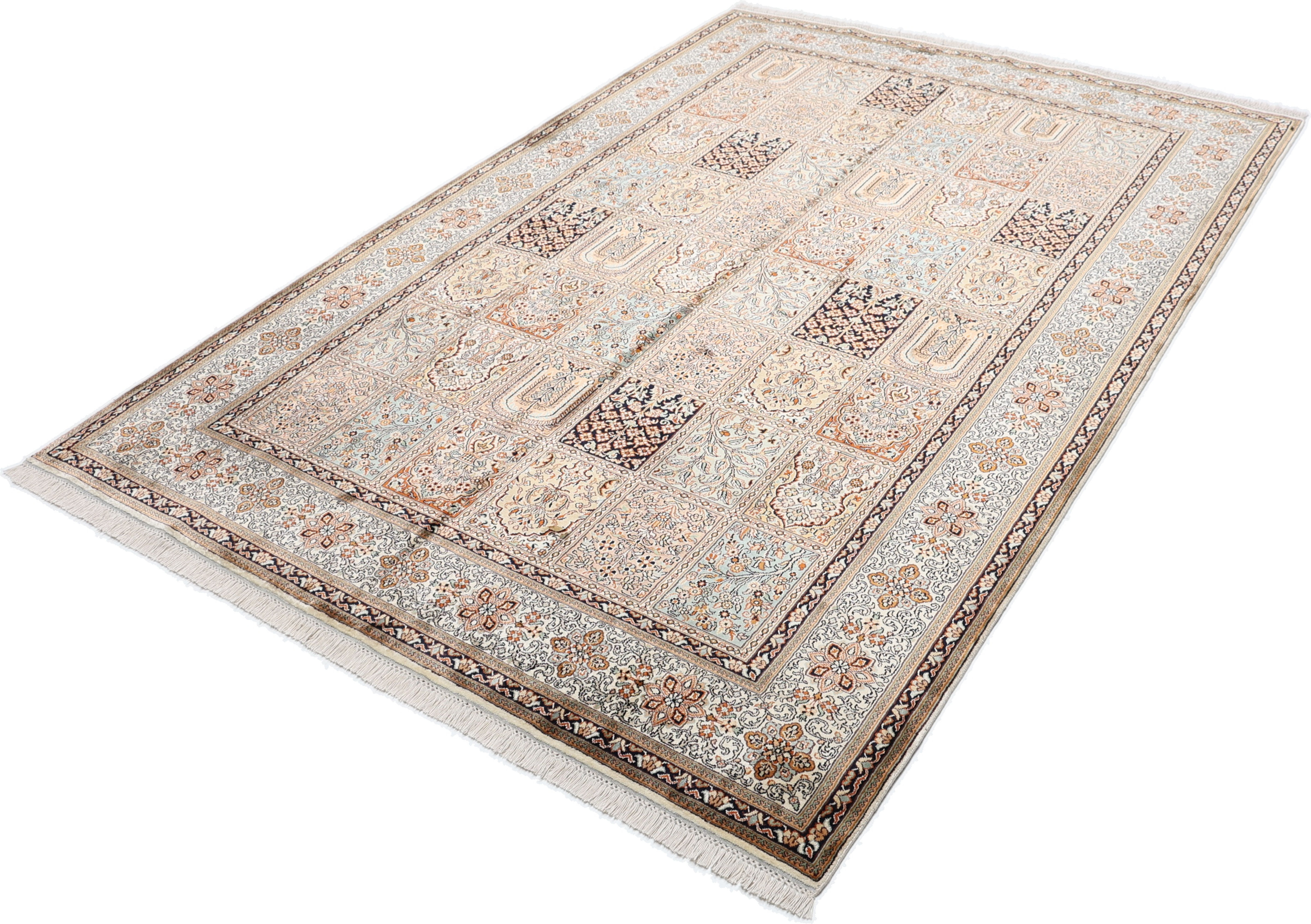 Kashmirseide Teppiche: Kaschmir Seide Teppiche sind weltberühmt und zählen zu den feinsten und hochwertigsten Teppichen des Orients. Die Provinz Kaschmir ist seit jeher für seine exklusiven Woll- und Seidenteppiche bekannt. Die Teppiche sind besonders fein und weich mit einer unvergleichlich angenehmen Haptik. Das persische Muster wird in schönen und harmonischen Pastellfarben geknüpft und verleiht ihrem Zuhause eine edle Note.