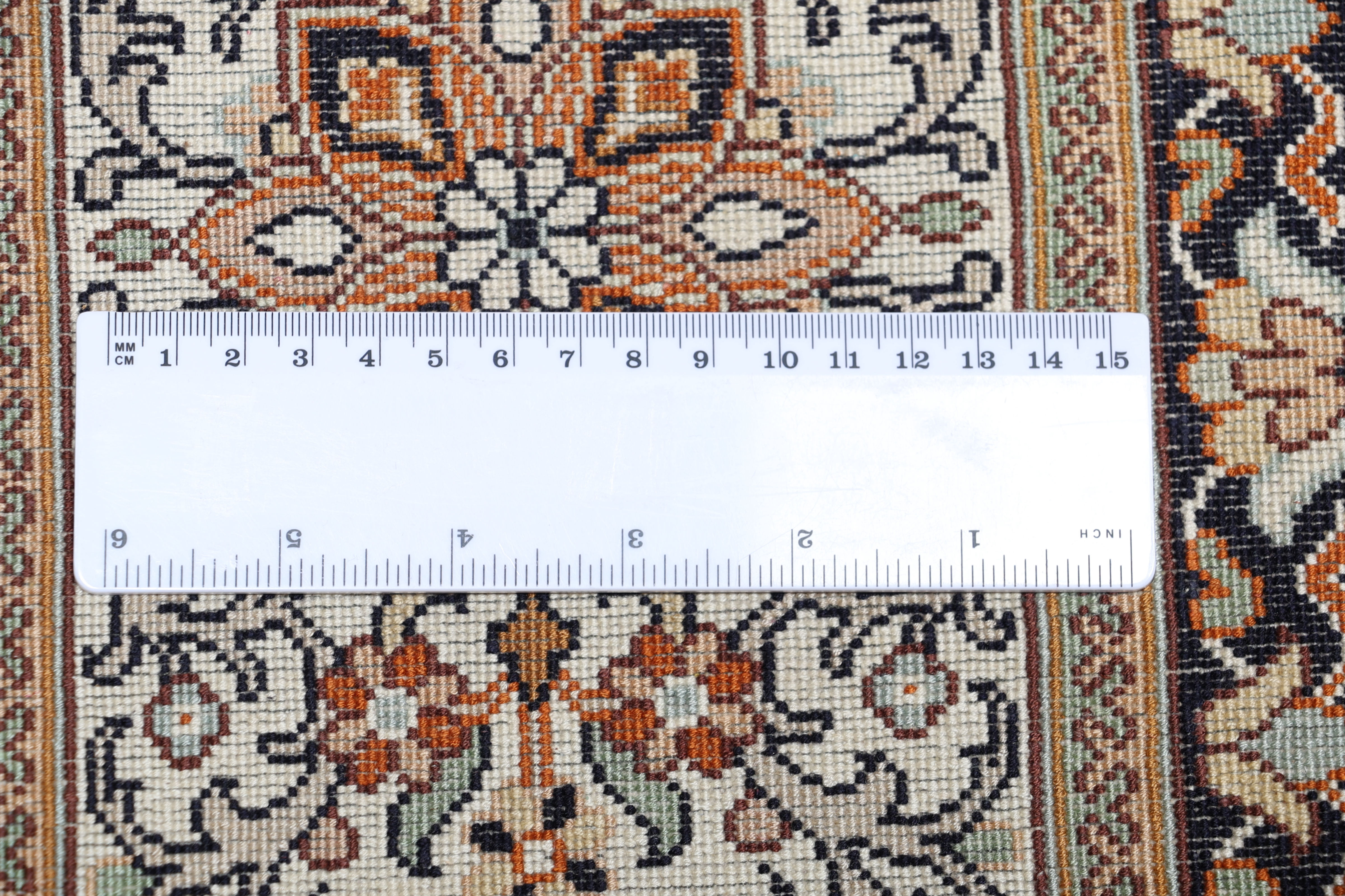 Kette aus Baumwolle: Baumwolle eignet sich hervorragend als Kette (Grundgewebe) für einen echten handgeknüpften Teppich, da Sie strapazierfähig und gleichzeitig fein und engmaschig gesponnen werden kann.