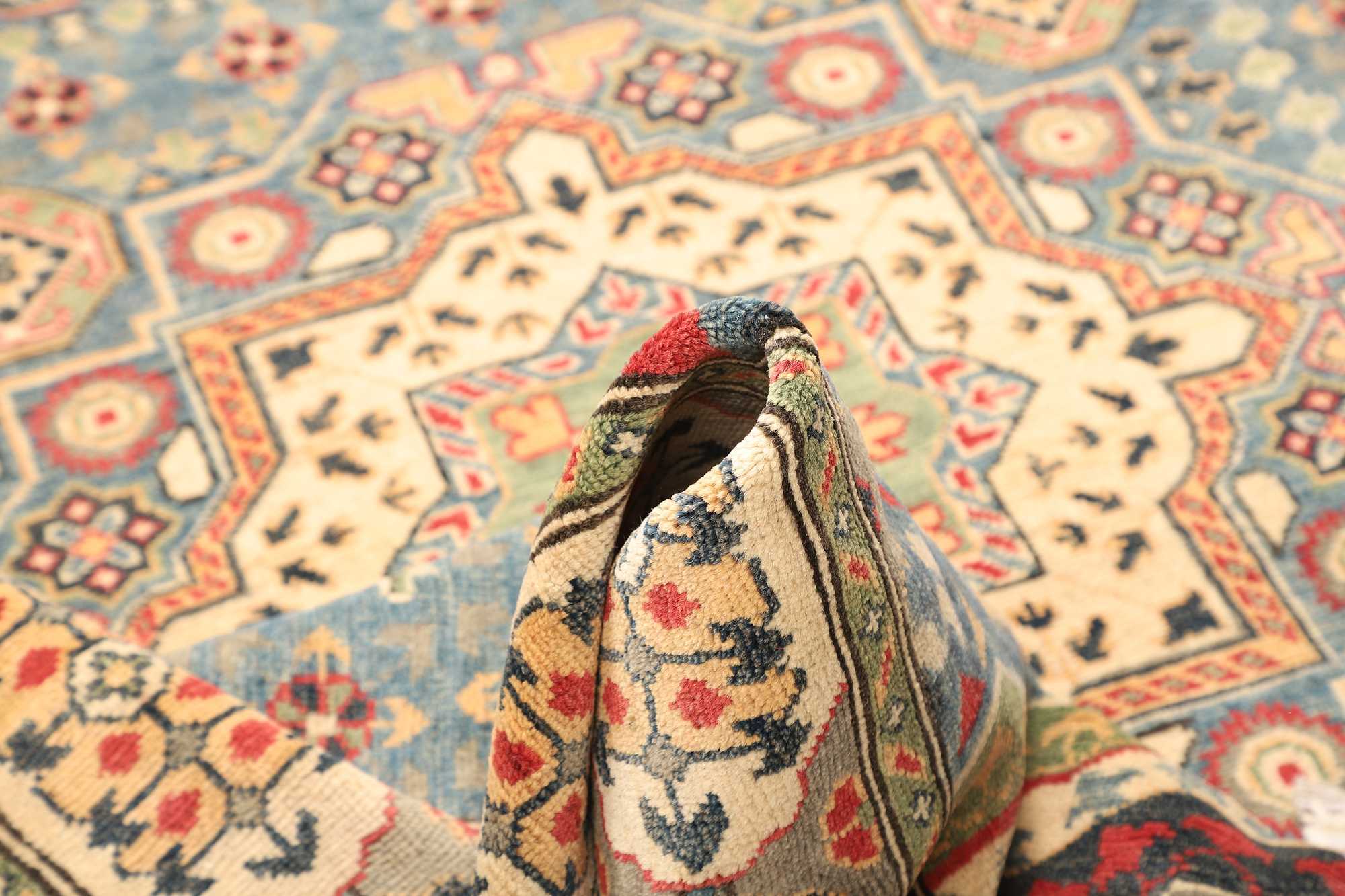Kazak Teppiche: Kazak Teppiche stammen ursprünglich aus dem Gebiet des Kaukasus. Kennzeichnend für einen Kazak sind geometrische Muster und Figuren, sowie eine flache Knüpfung. Alte Kazaks gelten als Rarität und sind daher begehrte Sammlerstücke. Die frohe Natur dieser Teppiche geben ihrem Zuhause angenehmes und wohnliches Gefühl.