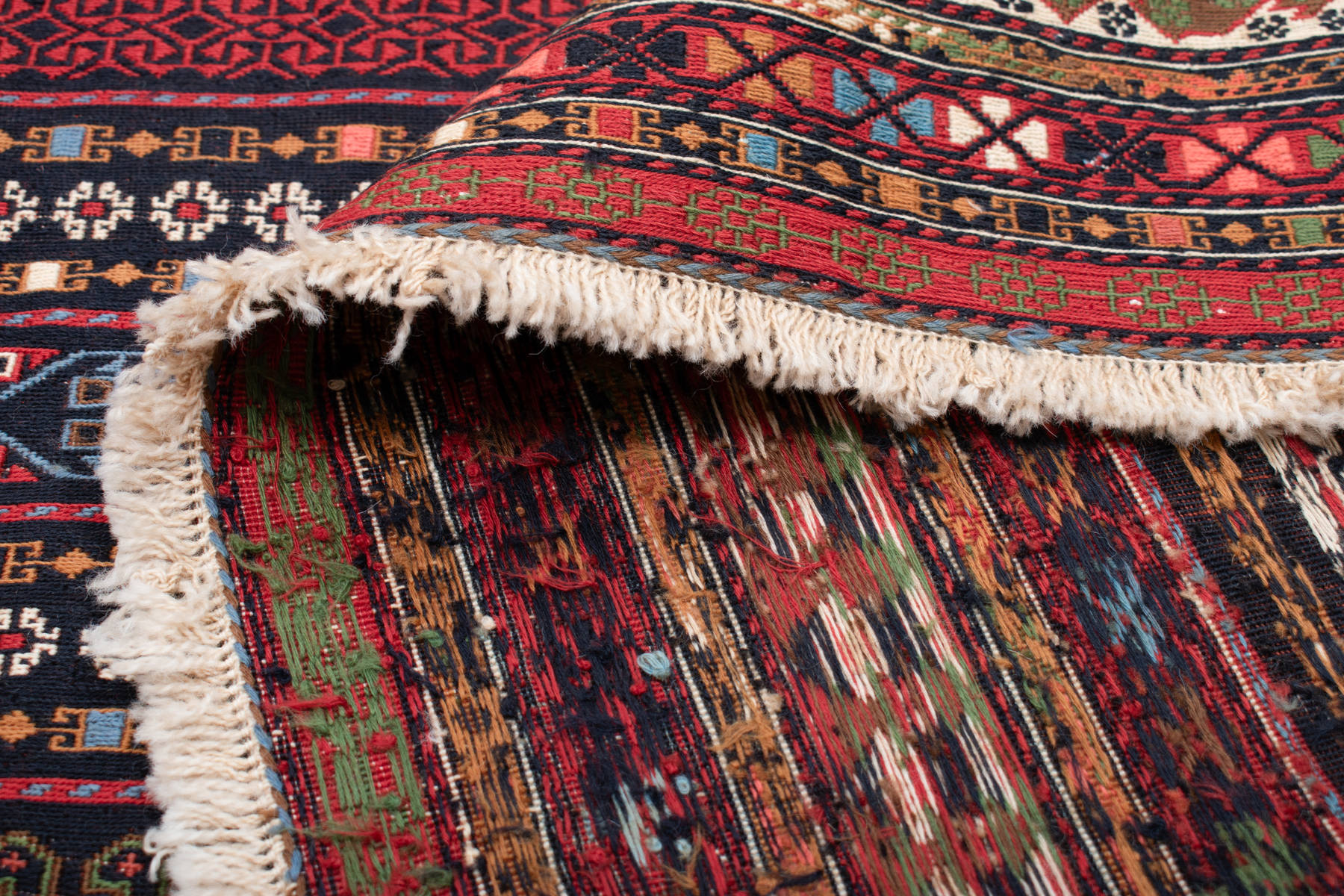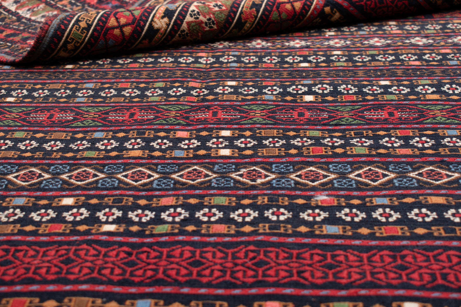 Handgewebte Qualität: Handgewebte Kelims sind in den orientalischen Ländern seit Jahrhunderten Teil der Kultur. Dabei je nach Region verschiedene Verfahren angewendet. Afghan Kelims sind beispielsweise beidseitig verwendbar, während Sirjan Kelims auf ein Grundgewebe gestickt werden.
