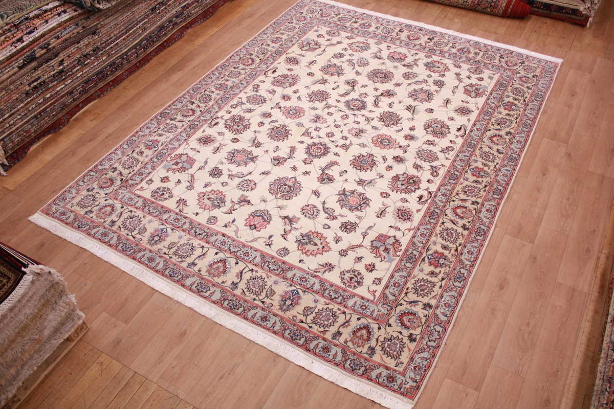 Mashad Teppiche: Der Mashad-Teppich ist allein wegen seines Namens vielen ein Begriff. Der Teppich ist nach der Pilgerstadt im Iran benannt. Der Flor dieses Teppichs wird mit einer der besten Wollarten der Welt geknüpft. Diese spezielle Wolle macht den Teppich Weicher und natürlicher im Look als andere Teppiche. Besonders typisch für den Mashad sind die floralen Muster und ein großes Medaillon in der Mitte.