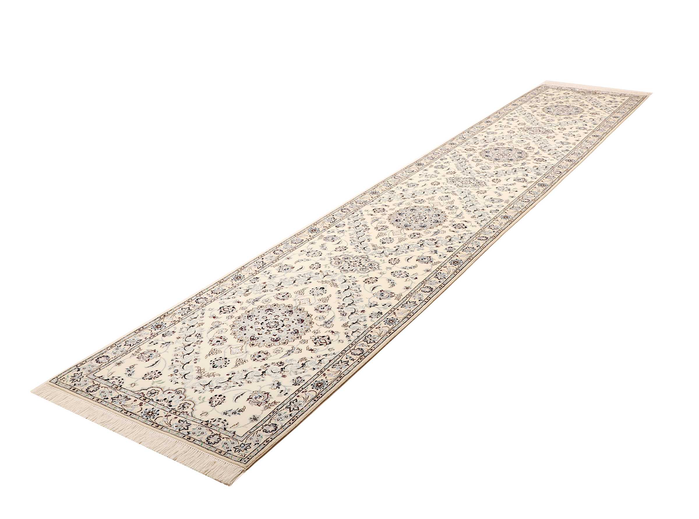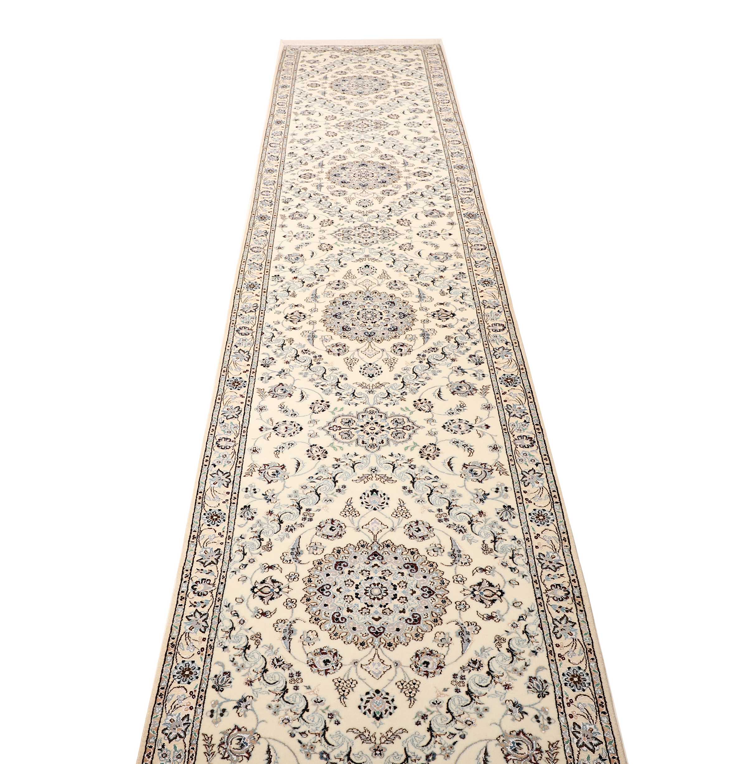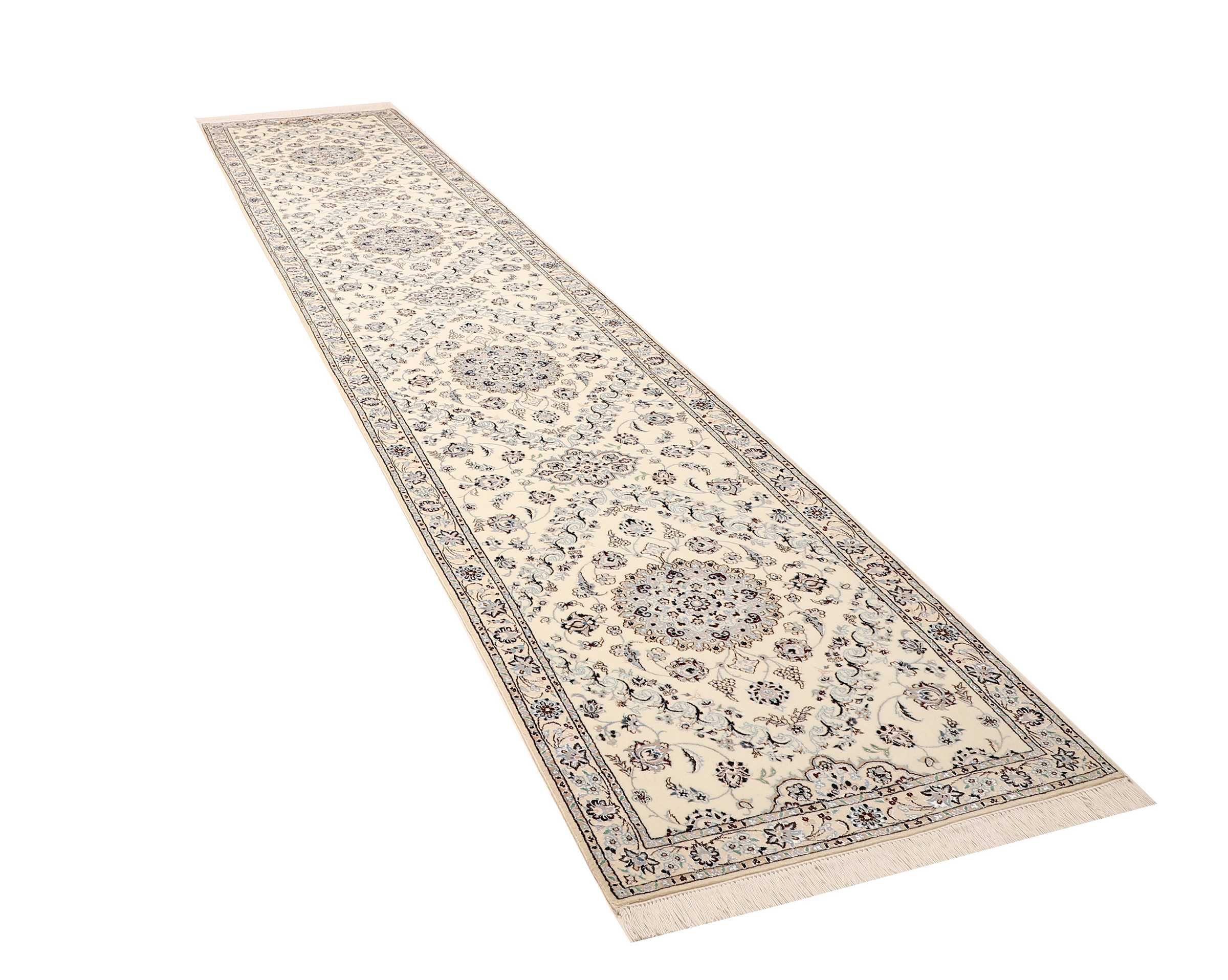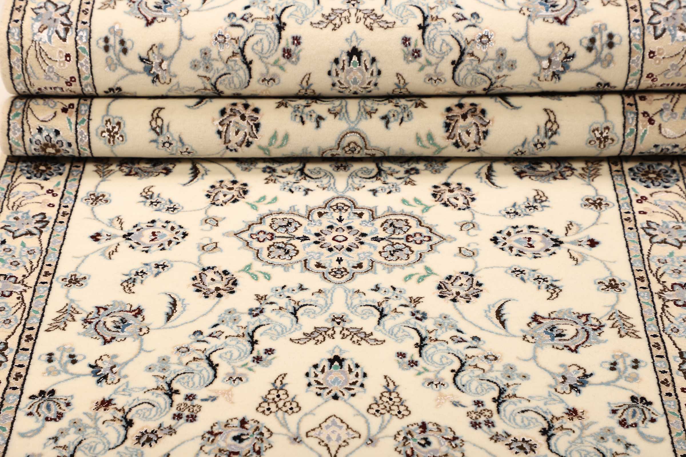 Nain Teppiche: Nain Teppiche entstammen der persischen Oasenstadt in der Provinz Isfahan. Die Stadt Nain ist weltweit bekannt für ihre Teppichknüpfereien und auch vielen Laien ein Begriff. Der unverwechselbare helle Grundton wird meistens mit einem kräftigen, königsblauen Ton kombiniert. Die Musterung der Teppiche reicht von klassischen floralen Motiven bis hin zu sehr ungewöhnlichen Neuinterpretationen andere persischer Muster. Durch seine Musterung, Farbwahl und Knüpfung ist der Nain Teppich ein besonders exklusiver Perserteppich, der Ihrer Einrichtung eine exklusive Note und einen echten Blickfang verleiht.