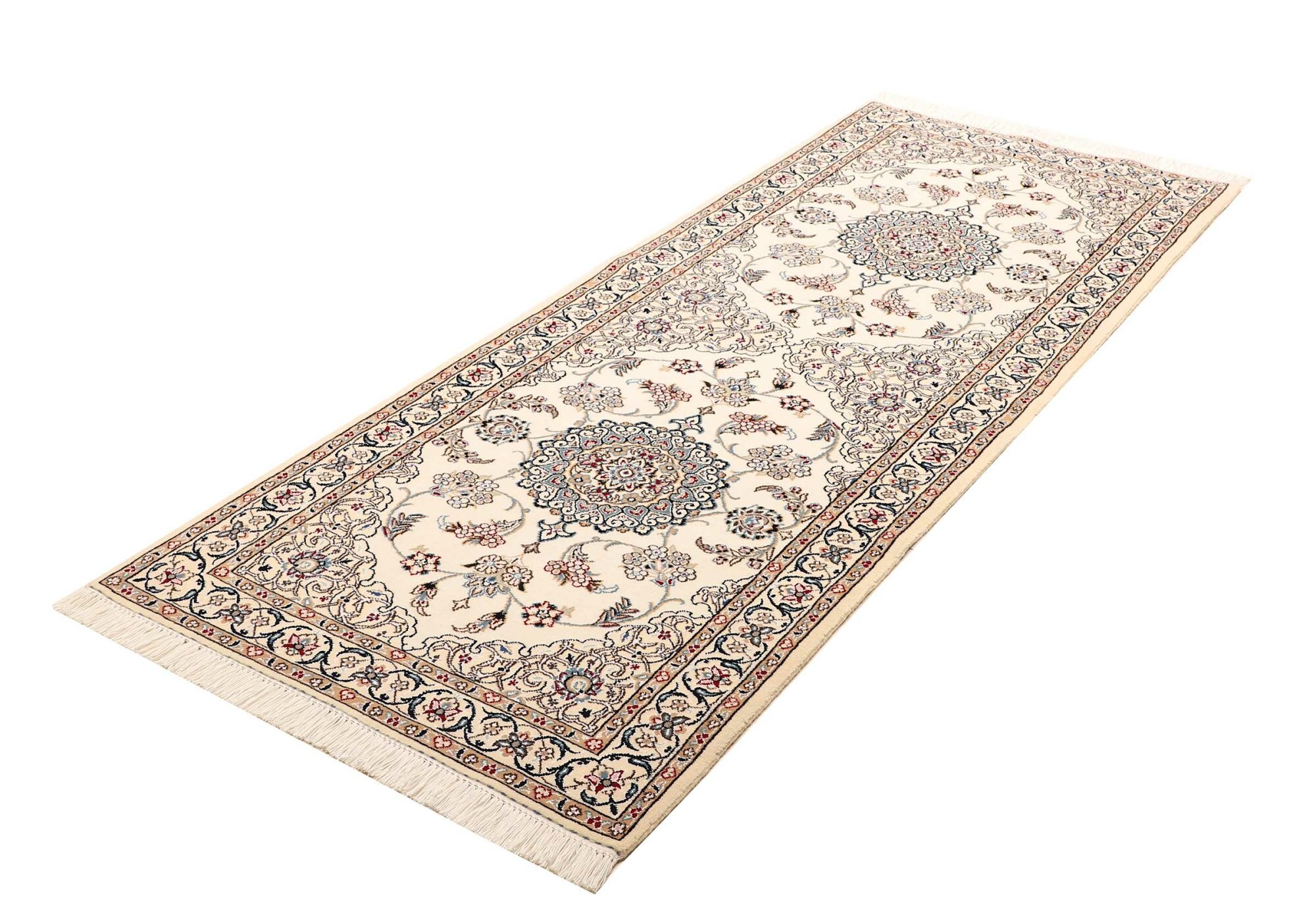 Nain Teppiche: Nain Teppiche entstammen der persischen Oasenstadt in der Provinz Isfahan. Die Stadt Nain ist weltweit bekannt für ihre Teppichknüpfereien und auch vielen Laien ein Begriff. Der unverwechselbare helle Grundton wird meistens mit einem kräftigen, königsblauen Ton kombiniert. Die Musterung der Teppiche reicht von klassischen floralen Motiven bis hin zu sehr ungewöhnlichen Neuinterpretationen andere persischer Muster. Durch seine Musterung, Farbwahl und Knüpfung ist der Nain Teppich ein besonders exklusiver Perserteppich, der Ihrer Einrichtung eine exklusive Note und einen echten Blickfang verleiht.