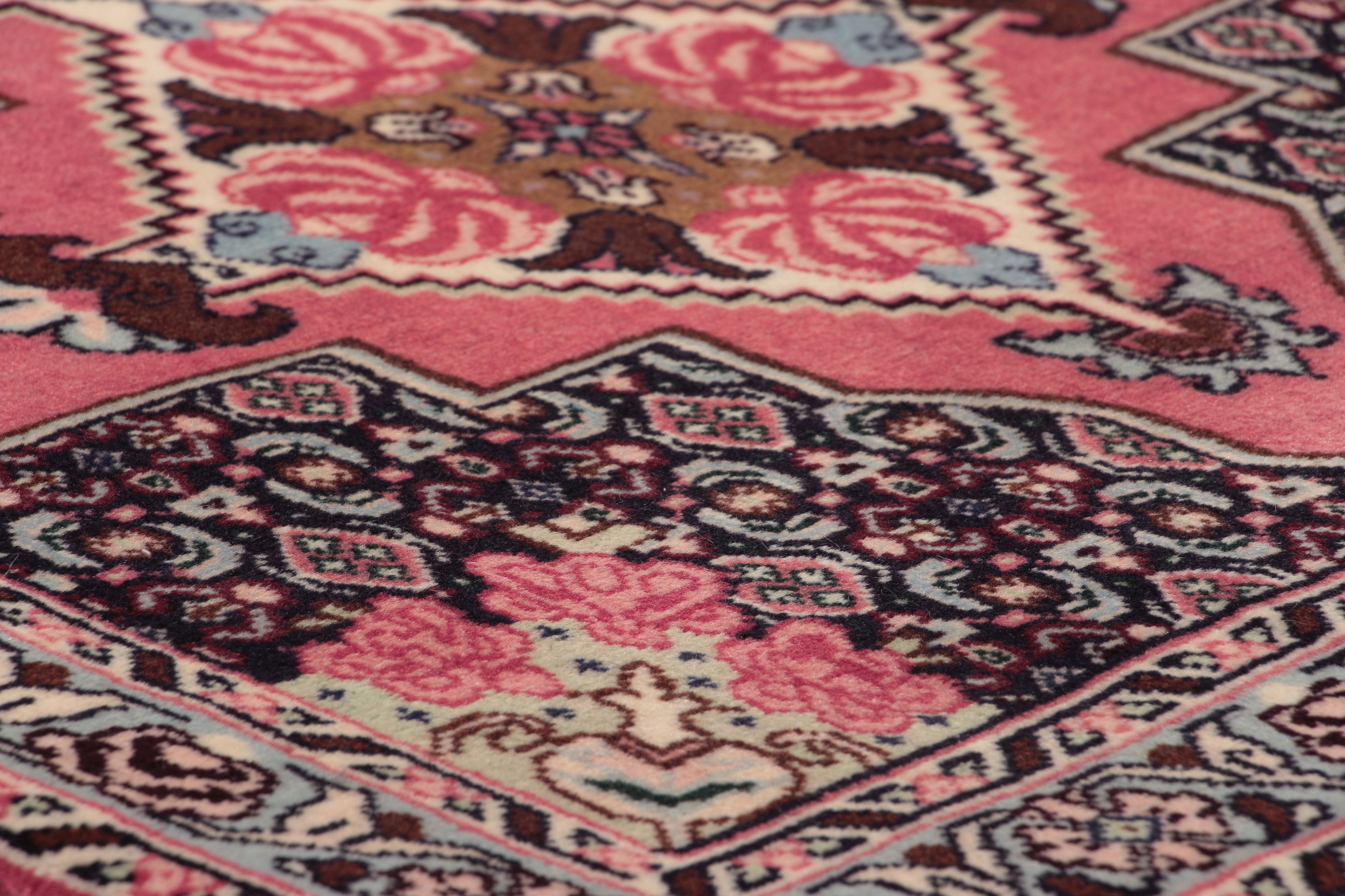 Handgeknüpfte Qualität: Handgeknüpfte Teppiche sind wahre Kunstwerke und erfordern je nach Qualität eine sehr gute Ausbildung und ein hohes Maß an Geduld. Durch die Knüpfung per Hand werden die Teppiche deutlich feiner, geschmeidiger und hochwertiger als mit anderen Verfahren.