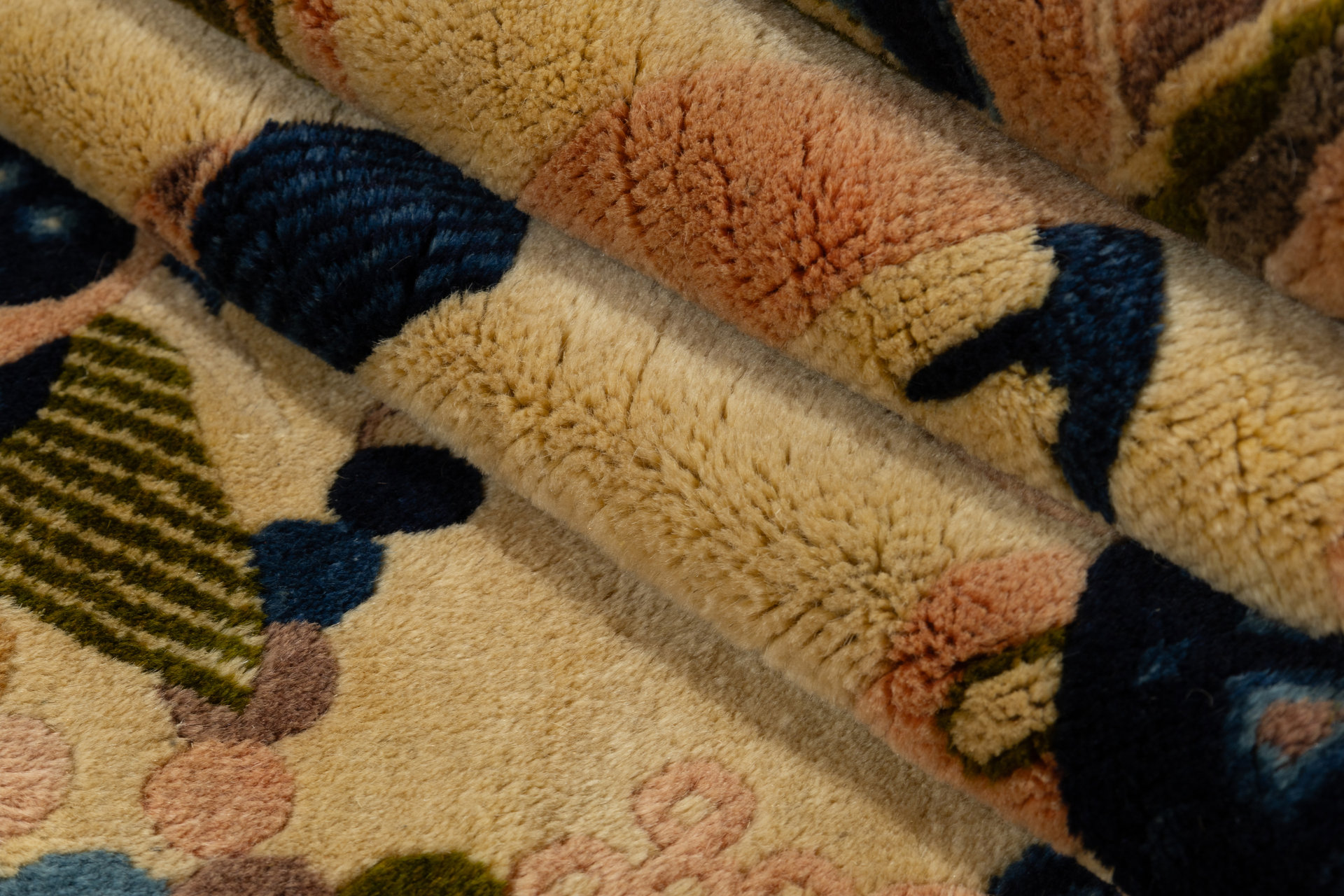 Kette aus Baumwolle: Baumwolle eignet sich hervorragend als Kette (Grundgewebe) für einen echten handgeknüpften Teppich, da Sie strapazierfähig und gleichzeitig fein und engmaschig gesponnen werden kann.