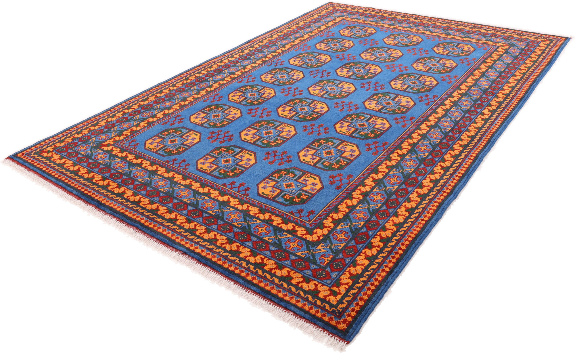 Afghanische Teppiche: Teppiche und Kelims haben in Afghanistan eine lange Tradition. Im Gegensatz zu persischen Teppichen sind Afghan Teppiche meist in geometrischen Mustern und ruhigeren Farben gehalten. Die Knüpfung der Teppiche ist fest und flachflorig.