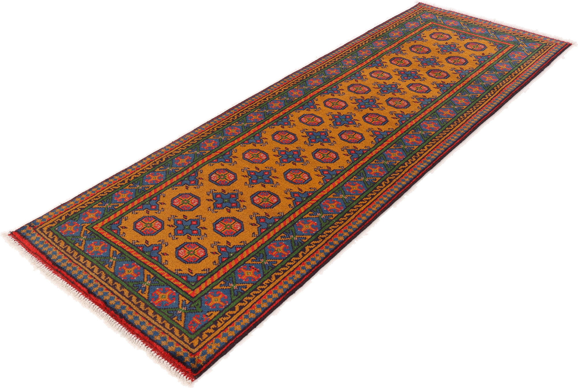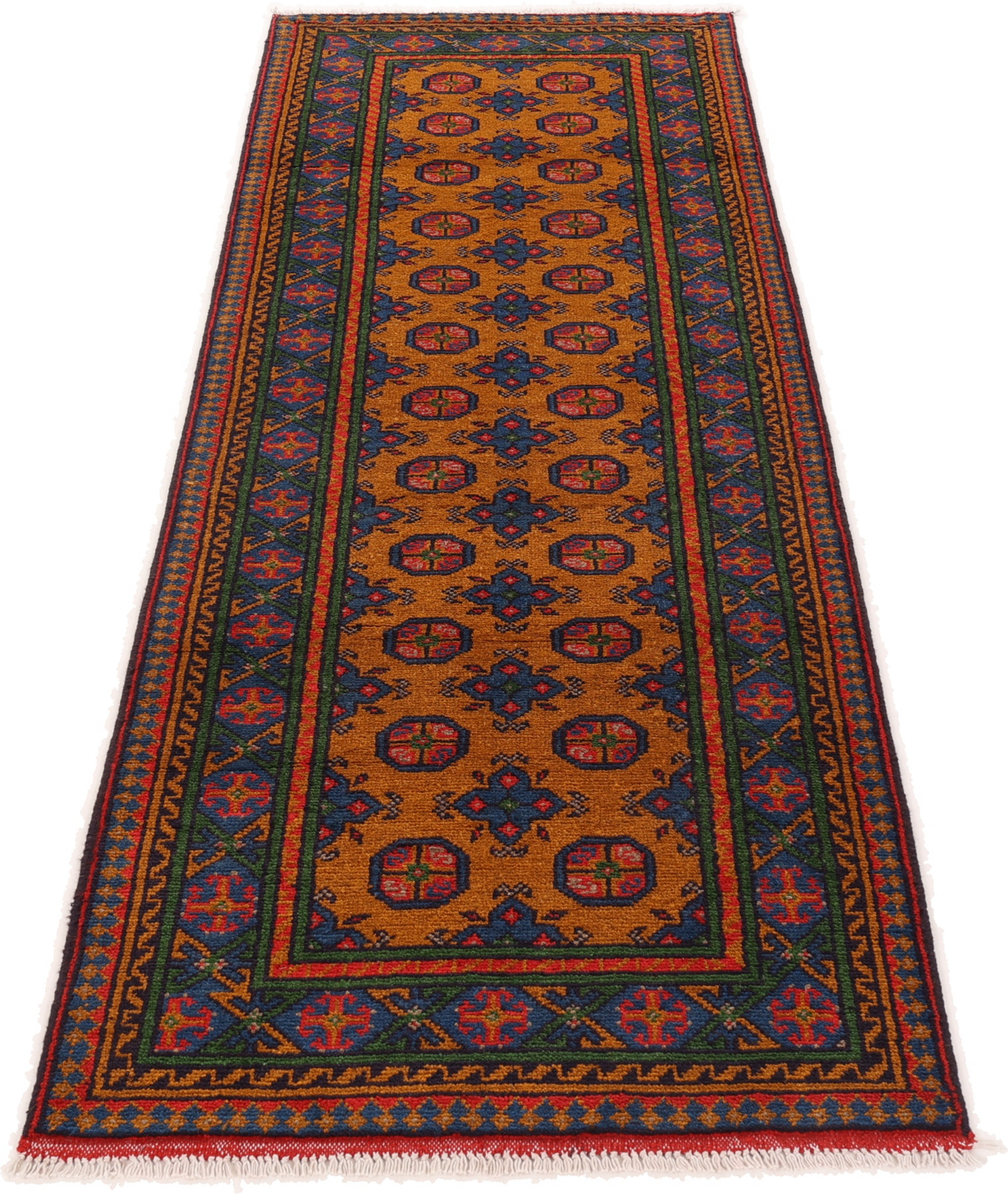 Afghanische Teppiche: Teppiche und Kelims haben in Afghanistan eine lange Tradition. Im Gegensatz zu persischen Teppichen sind Afghan Teppiche meist in geometrischen Mustern und ruhigeren Farben gehalten. Die Knüpfung der Teppiche ist fest und flachflorig.