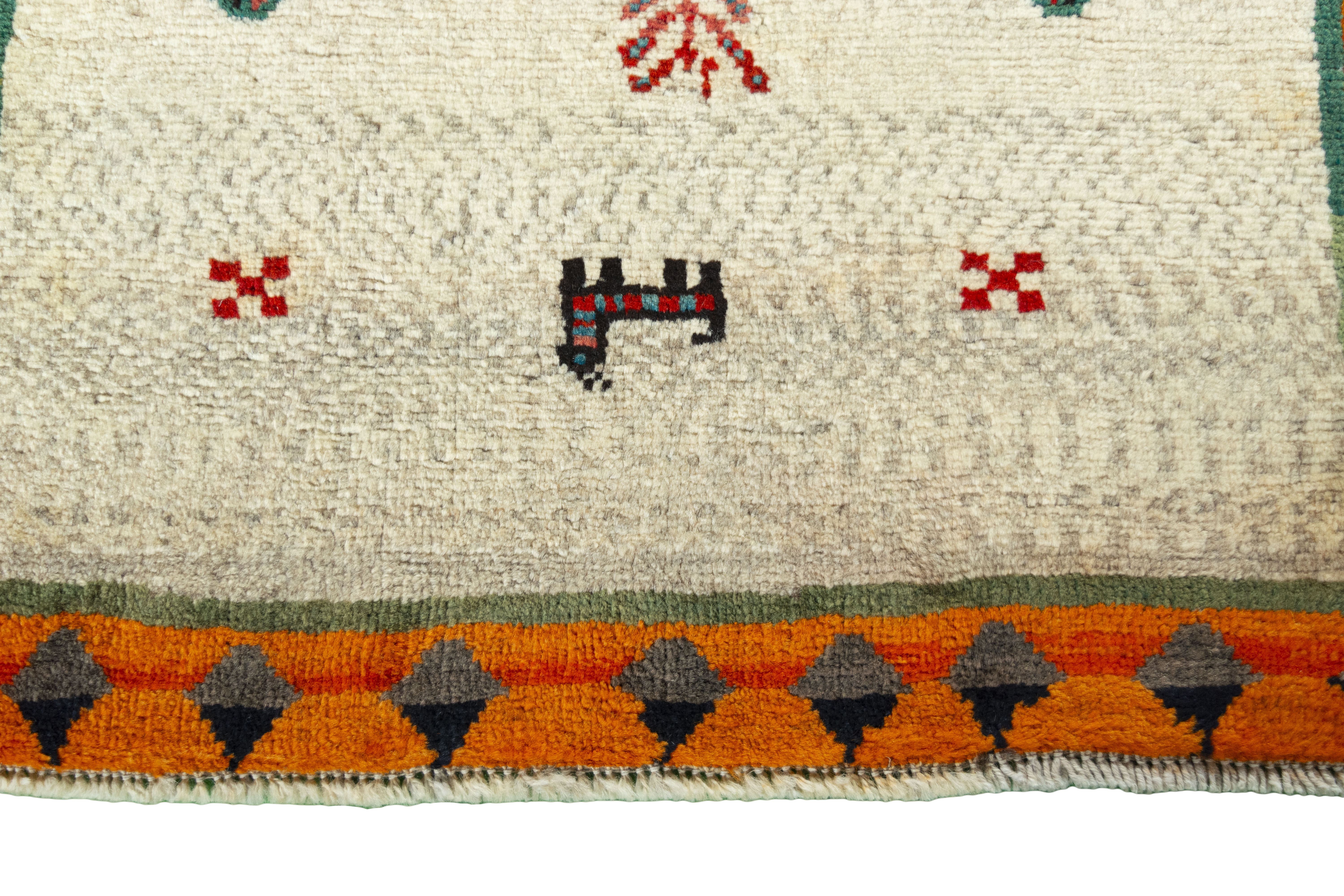 Gabbeh Teppiche: Gabbeh Teppiche sind sehr beliebte persische Nomadenteppiche, die durch ihre simplen und ursprünglichen Muster viele Herzen erobert haben. Die besonders weiche Schurwolle stammt von den Nomaden selbst, die den Teppich ursprünglich für den Eigenbedarf geknüpft haben. Heute wird der Gabbeh aber auch in anderen Ländern des Orients geknüpft, beispielsweise in Indien. Seine schöne Wolle und die weiche Haptik geben einem Raum viel Gemütlichkeit und Wohnlichkeit.