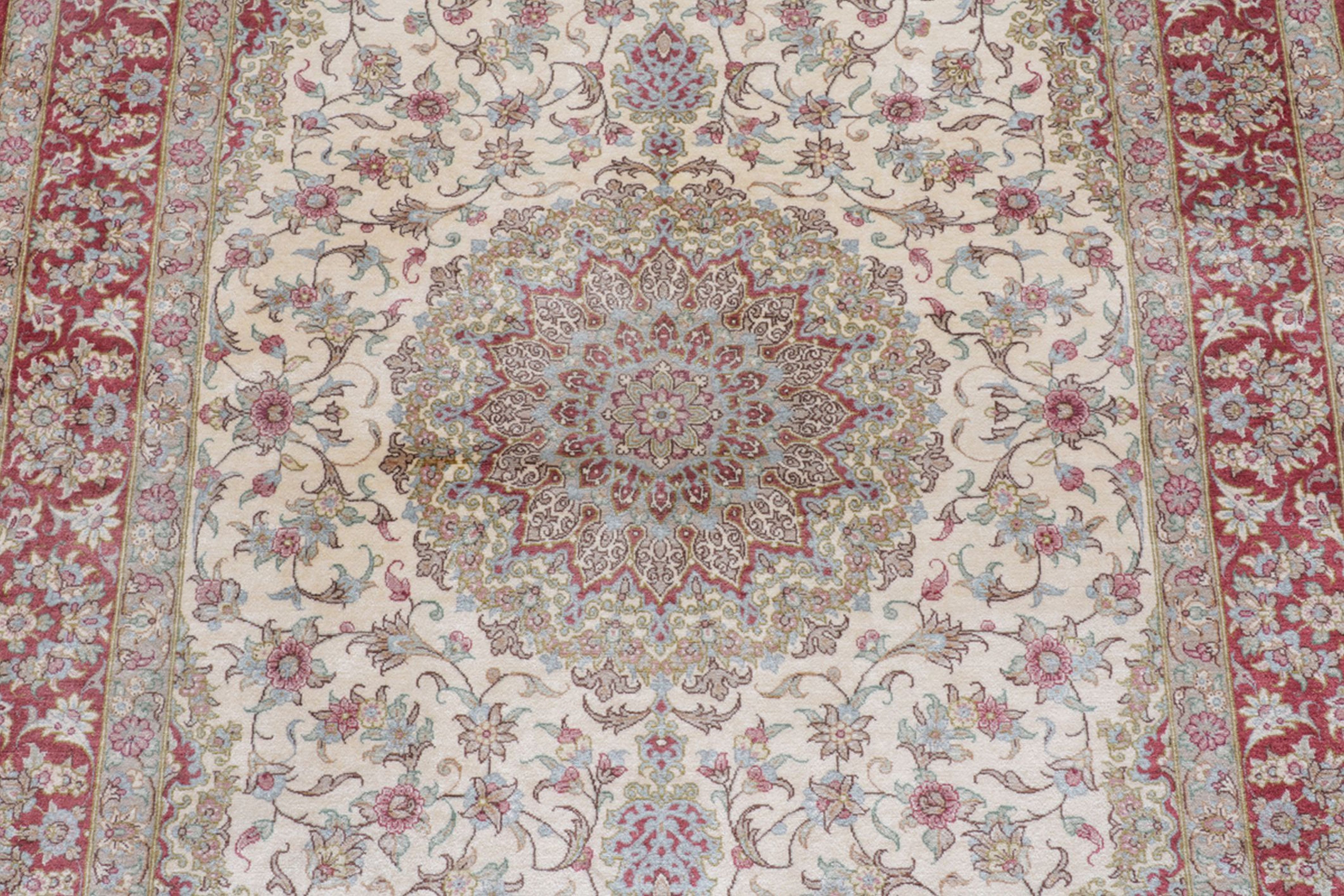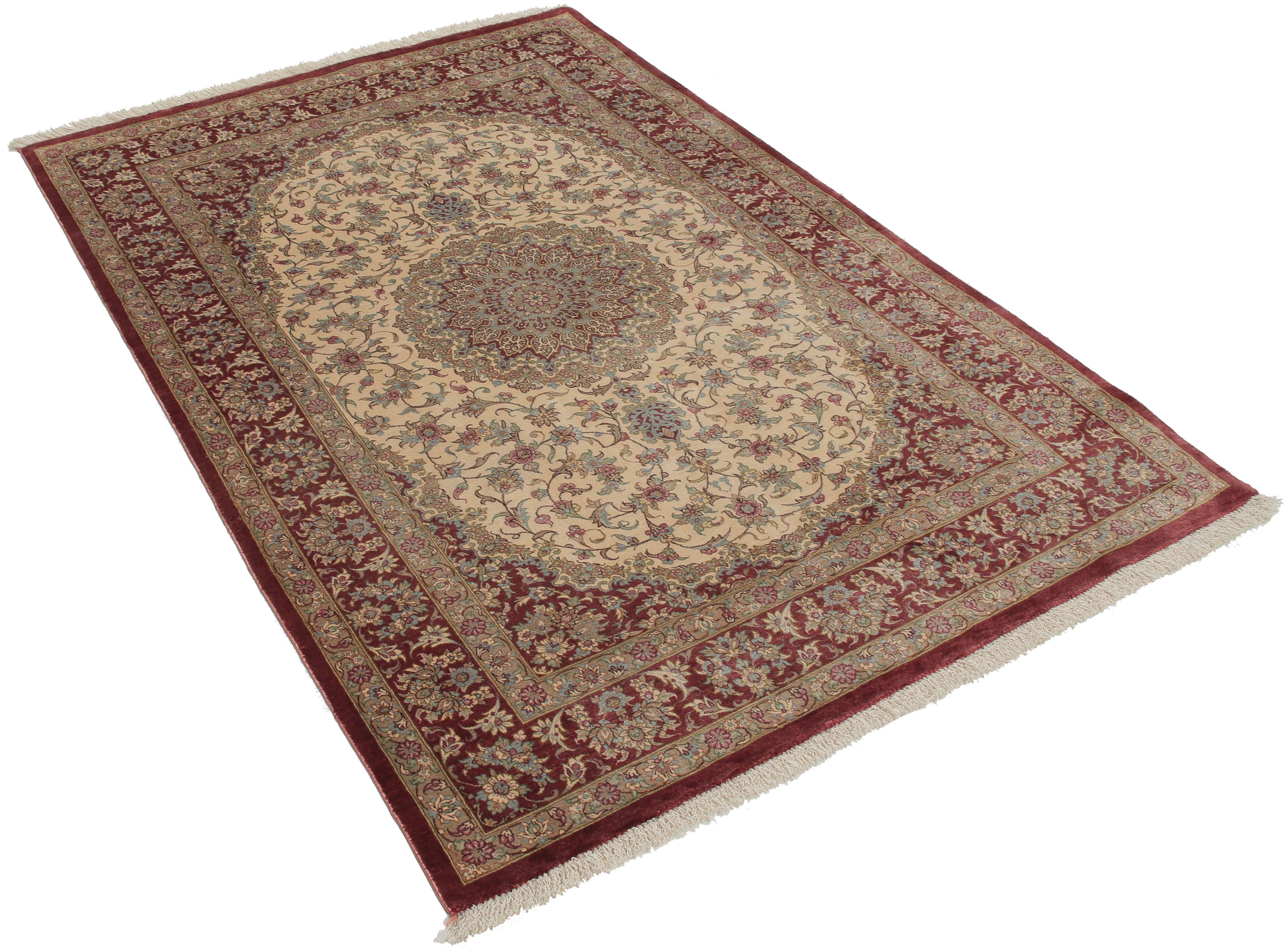 Flor aus Seide: Seide ist das feinste und geschmeidigste Garn der Welt und verleiht dem Teppich dadurch eine sehr exklusive Note. Seide wird nur für sehr hochwertige Teppiche verwendet und verleiht dem Teppich eine sehr angenehme Haptik.