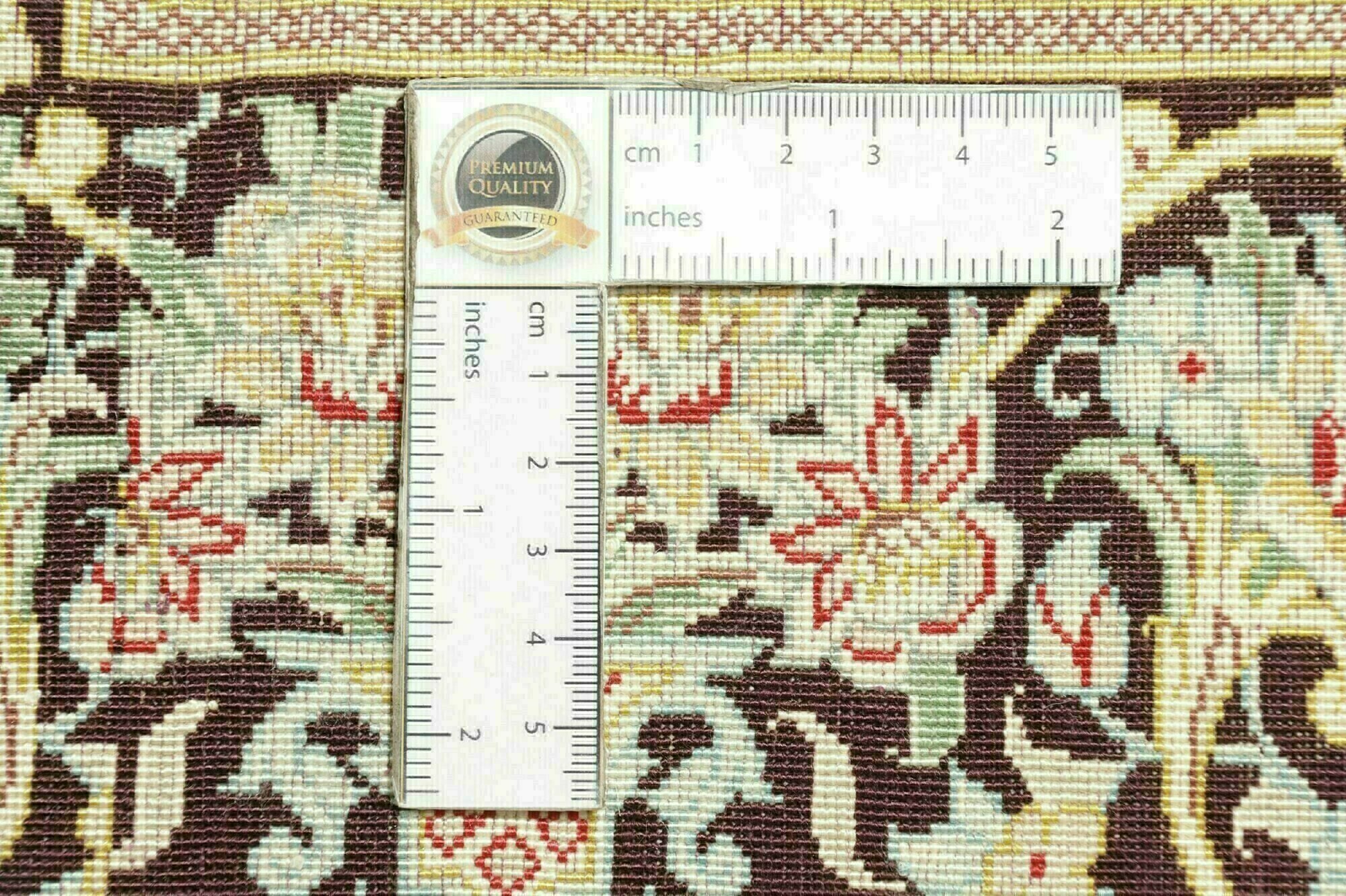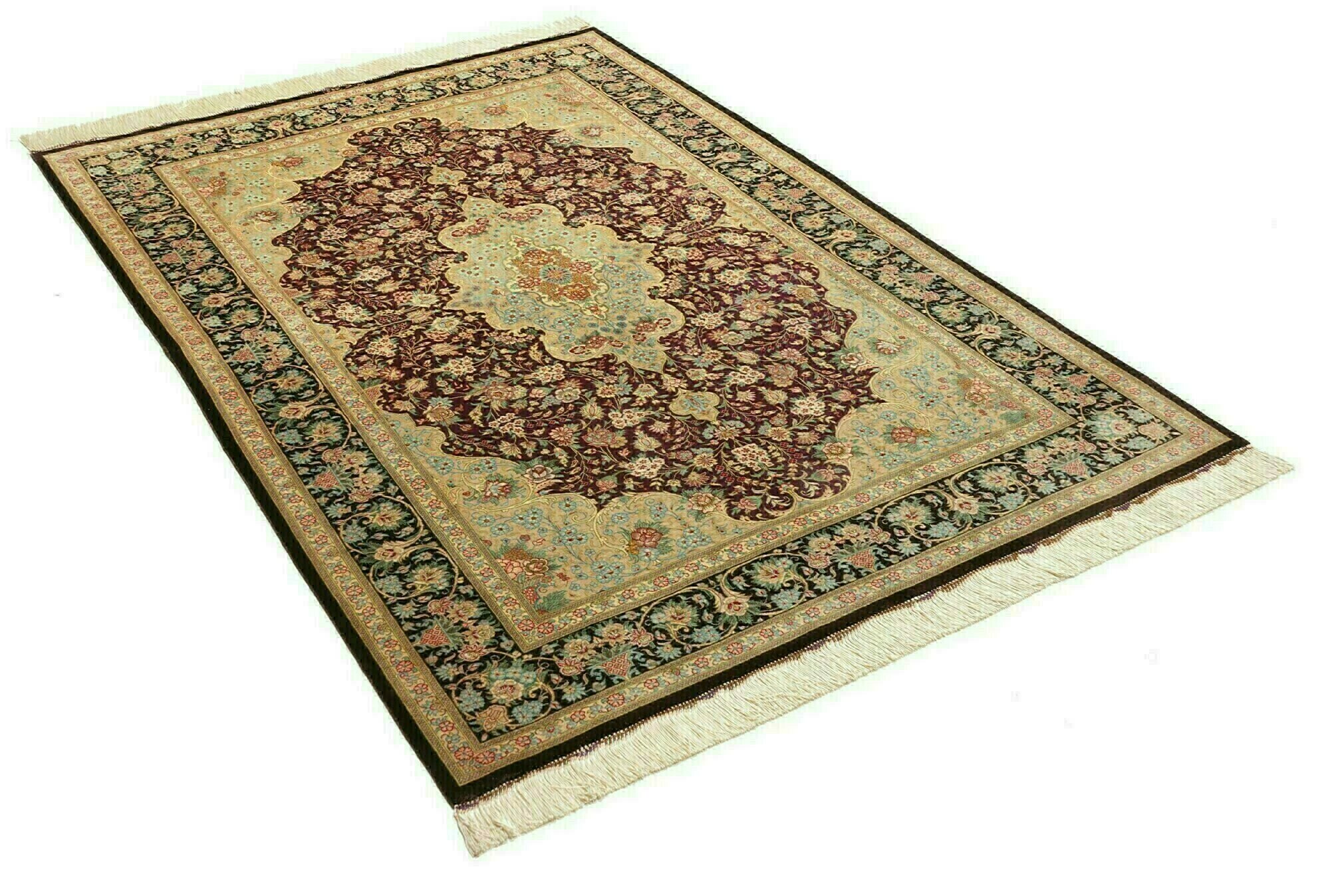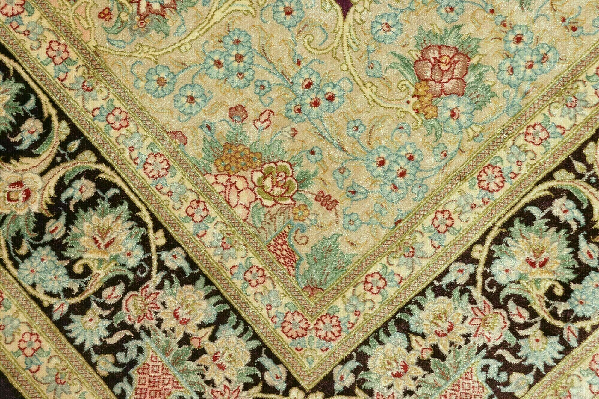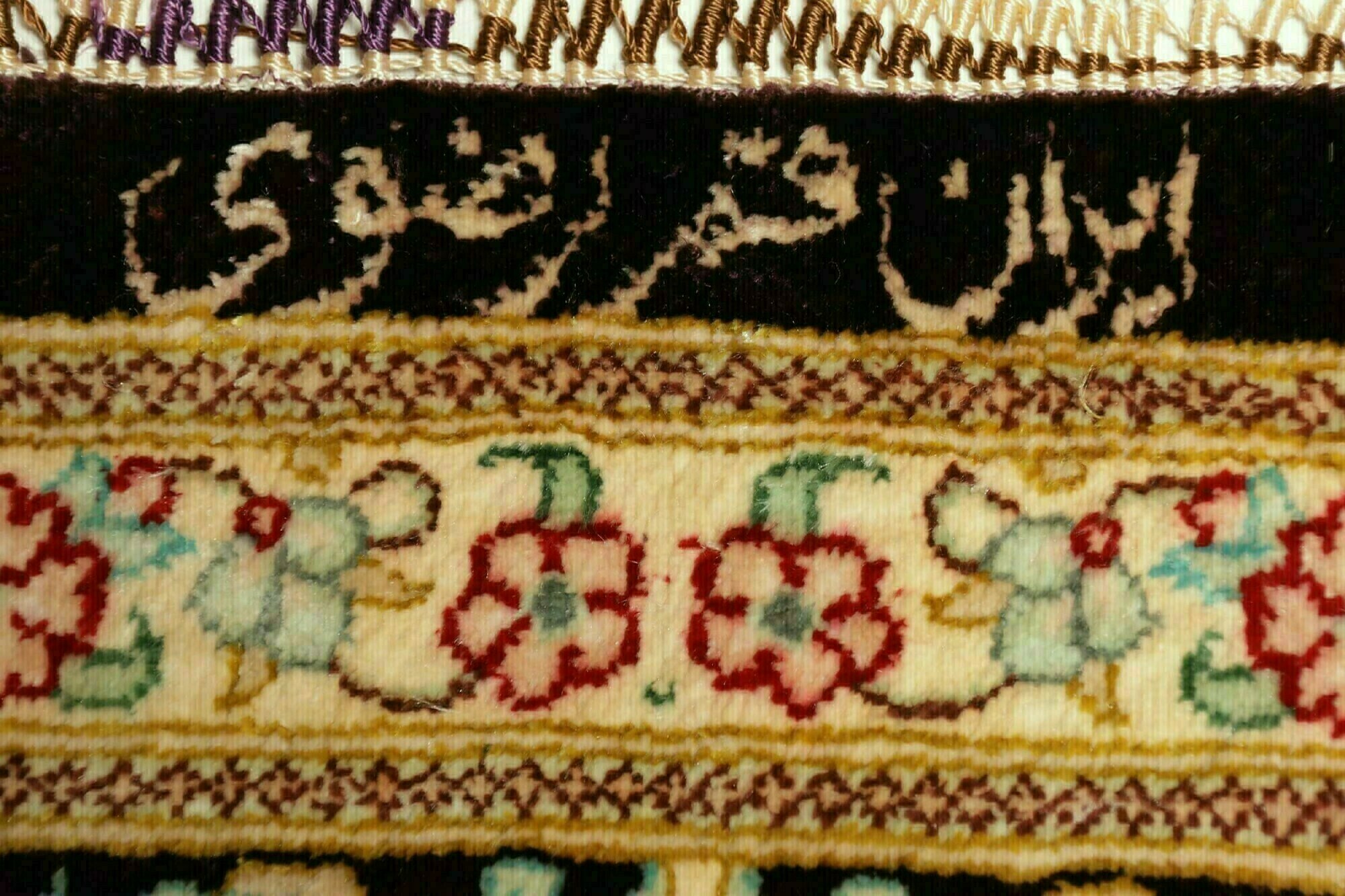Flor aus Seide: Seide ist das feinste und geschmeidigste Garn der Welt und verleiht dem Teppich dadurch eine sehr exklusive Note. Seide wird nur für sehr hochwertige Teppiche verwendet und verleiht dem Teppich eine sehr angenehme Haptik.