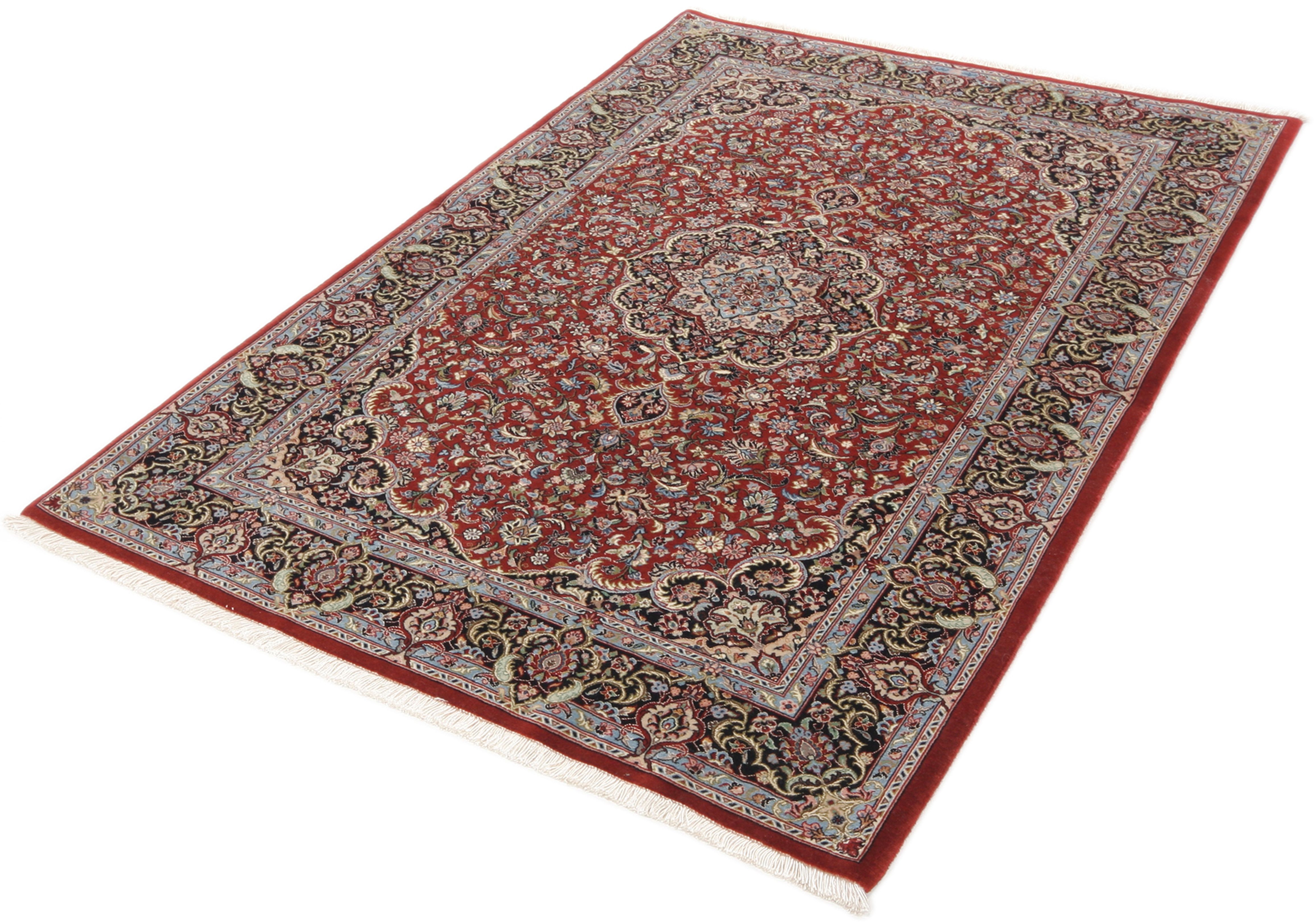 Isfahan Teppiche: Die Stadt Isfahan ist das kulturelle Herz Persiens. Die Designs und Muster Isfahans beeinflussen bis heute den gesamten Orient. Feine Isfahan Teppiche erreichen eine Knotenzahl von bis zu einer Million Knoten pro Quadratmeter. Besonders feine und hochwertige Isfahan Teppiche werden auf Seide geknüpft. Mit einem echten Isfahan Teppich erhält Ihr Zuhause ein optisches Highlight persischer Knüpfkunst. Die hochwertige Verarbeitung, die feine Korkwolle und die floralen persischen Muster machen den Isfahan zum exklusivsten Perserteppich überhaupt.