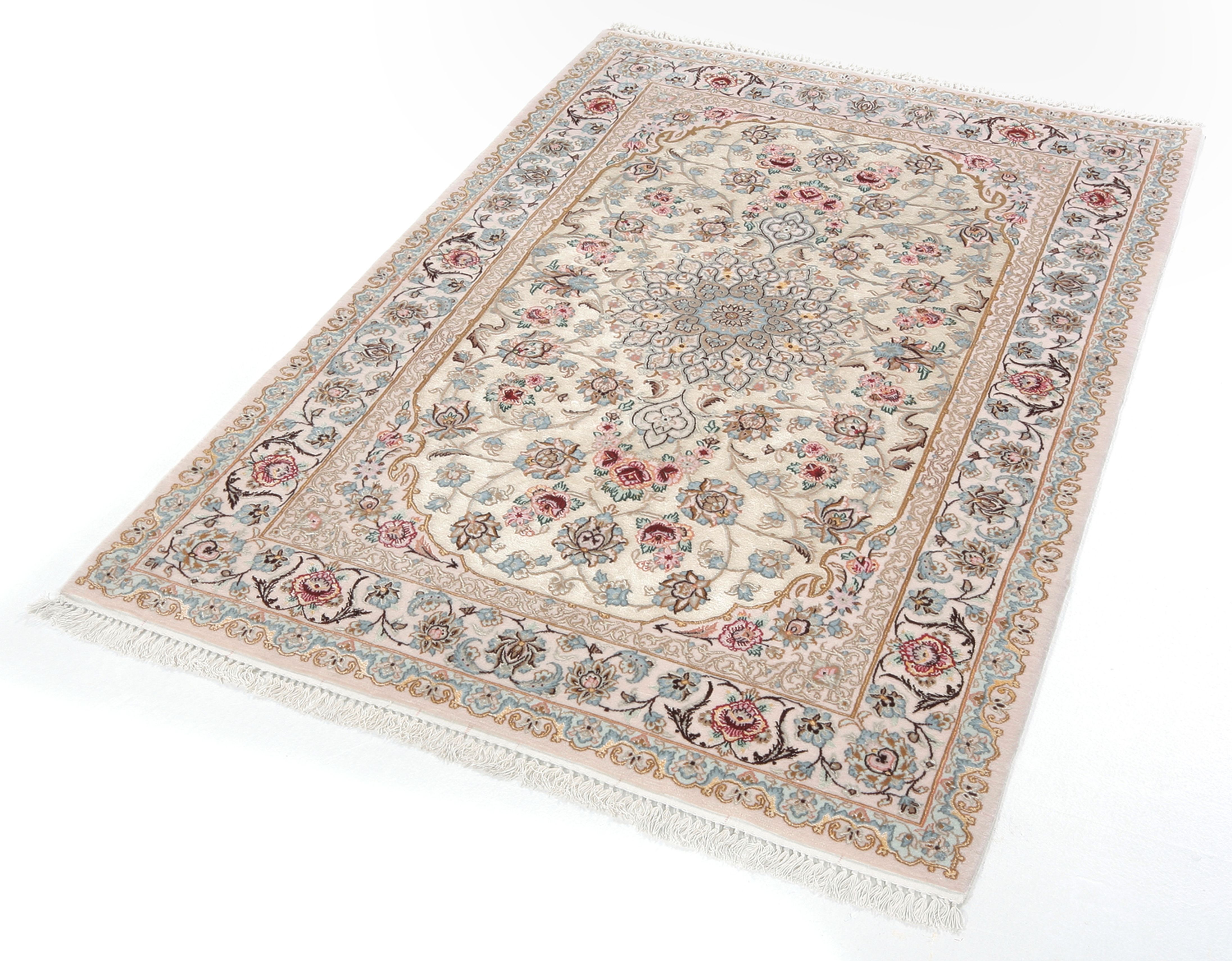 Isfahan Teppiche: Die Stadt Isfahan ist das kulturelle Herz Persiens. Die Designs und Muster Isfahans beeinflussen bis heute den gesamten Orient. Feine Isfahan Teppiche erreichen eine Knotenzahl von bis zu einer Million Knoten pro Quadratmeter. Besonders feine und hochwertige Isfahan Teppiche werden auf Seide geknüpft. Mit einem echten Isfahan Teppich erhält Ihr Zuhause ein optisches Highlight persischer Knüpfkunst. Die hochwertige Verarbeitung, die feine Korkwolle und die floralen persischen Muster machen den Isfahan zum exklusivsten Perserteppich überhaupt.