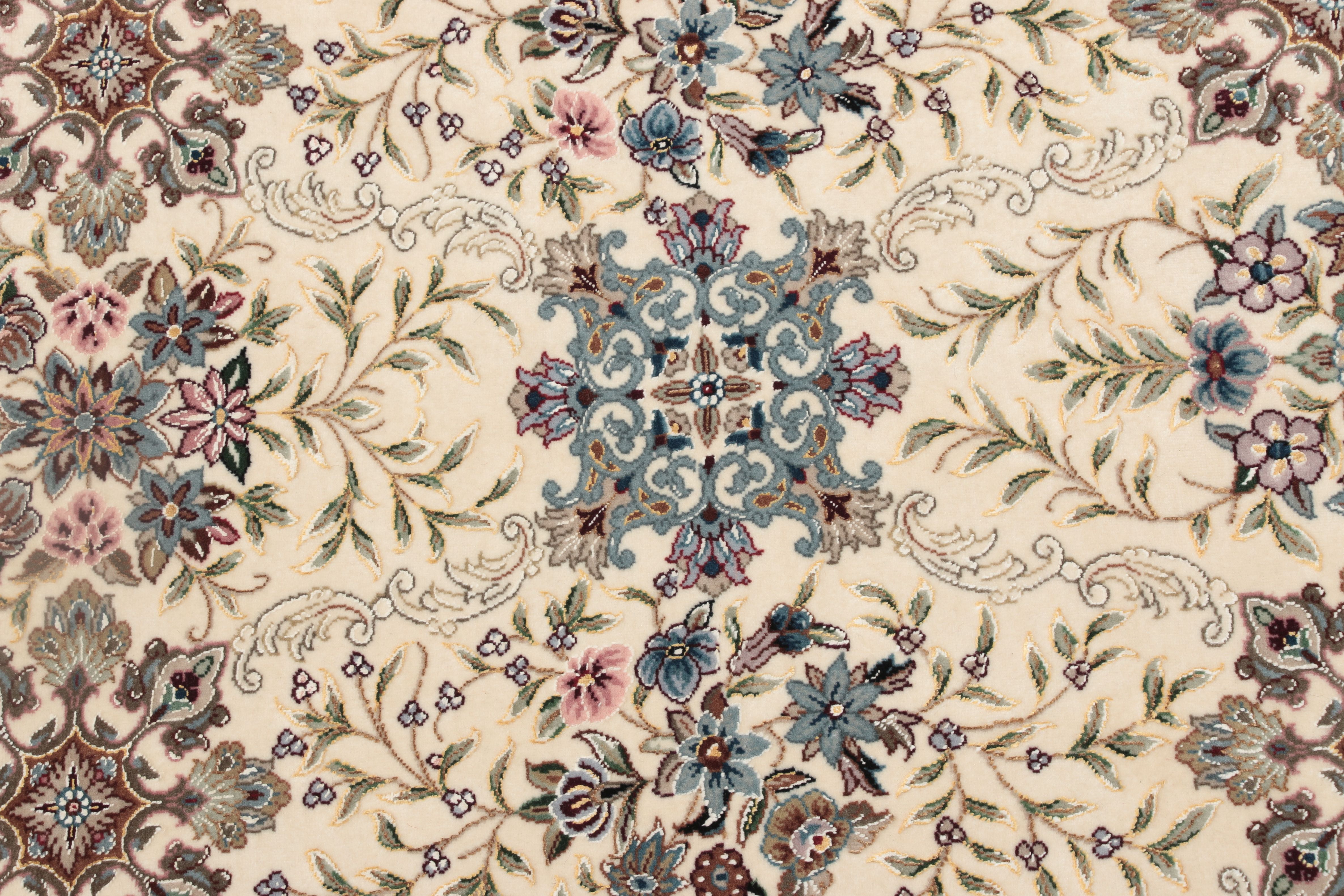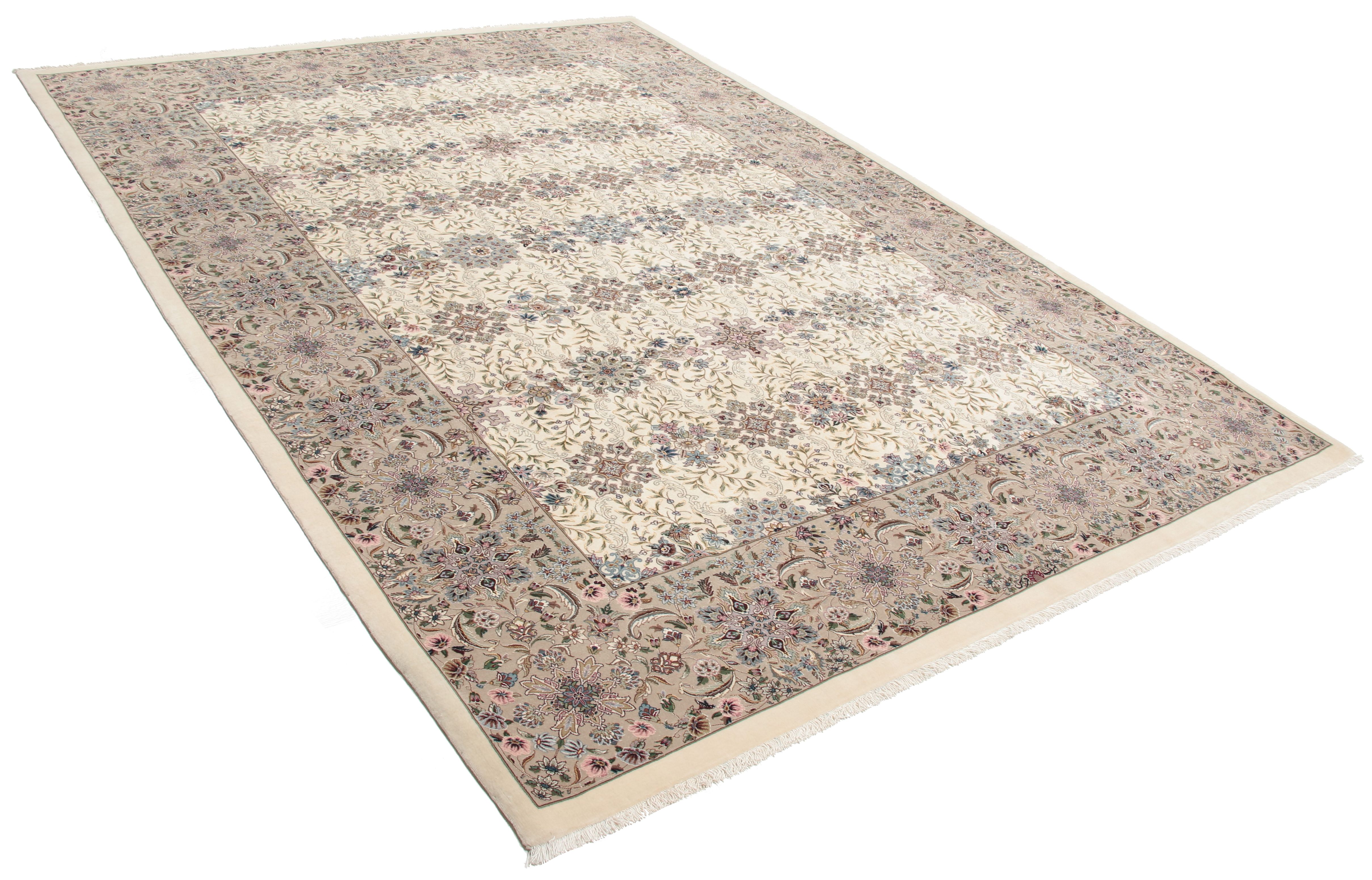 Isfahan Teppiche: Die Stadt Isfahan ist das kulturelle Herz Persiens. Die Designs und Muster Isfahans beeinflussen bis heute den gesamten Orient. Feine Isfahan Teppiche erreichen eine Knotenzahl von bis zu einer Million Knoten pro Quadratmeter. Besonders feine und hochwertige Isfahan Teppiche werden auf Seide geknüpft. Mit einem echten Isfahan Teppich erhält Ihr Zuhause ein optisches Highlight persischer Knüpfkunst. Die hochwertige Verarbeitung, die feine Korkwolle und die floralen persischen Muster machen den Isfahan zum exklusivsten Perserteppich überhaupt.