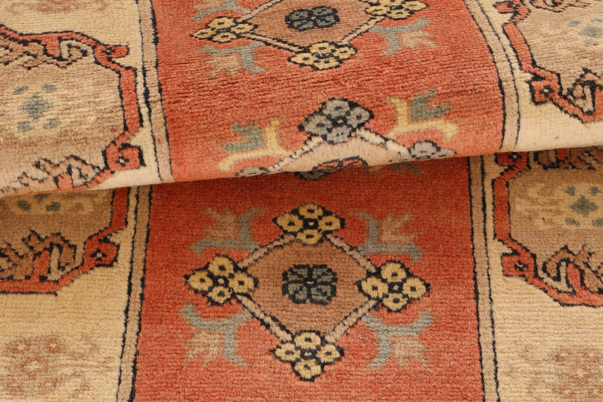 Kette aus Baumwolle: Baumwolle eignet sich hervorragend als Kette (Grundgewebe) für einen echten handgeknüpften Teppich, da Sie strapazierfähig und gleichzeitig fein und engmaschig gesponnen werden kann.