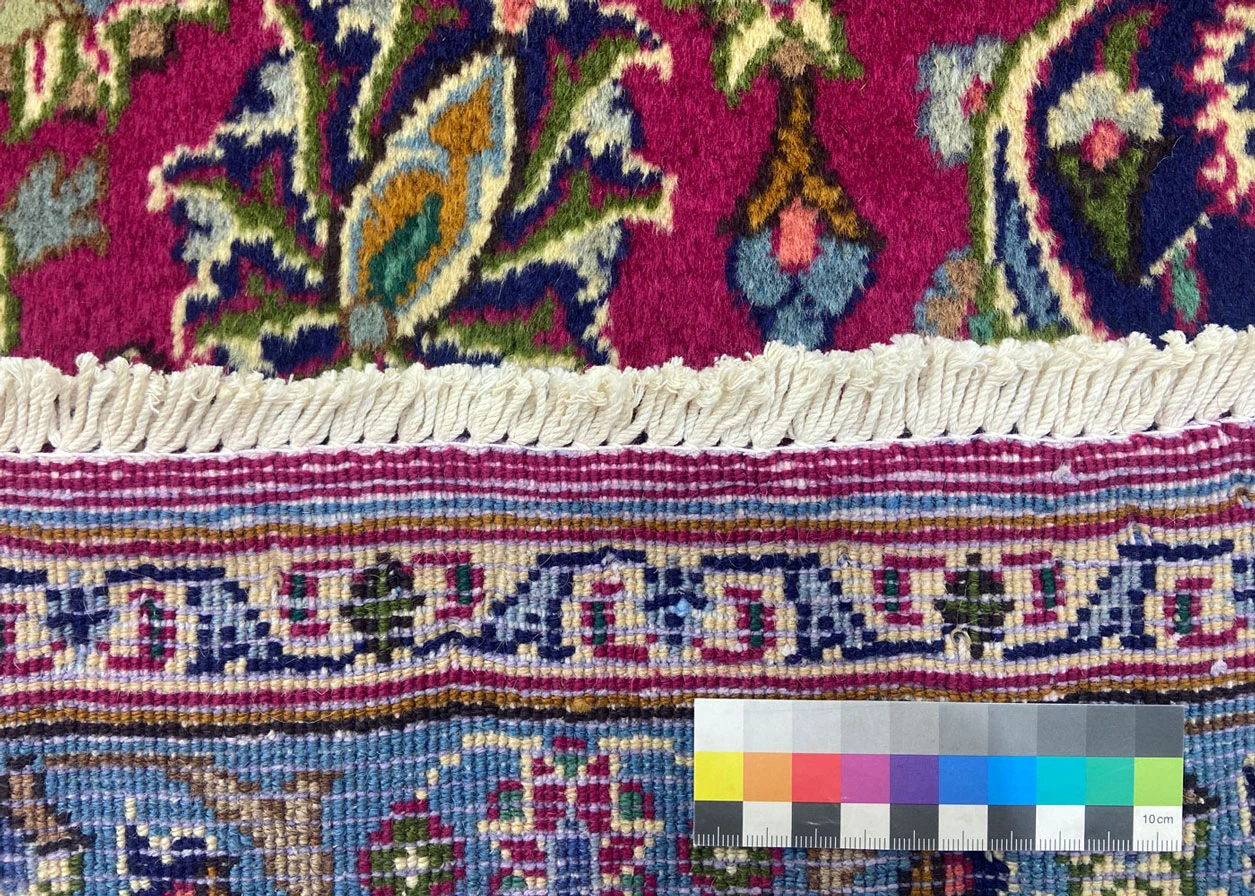 Kette aus Baumwolle: Baumwolle eignet sich hervorragend als Kette (Grundgewebe) für einen echten handgeknüpften Teppich, da Sie strapazierfähig und gleichzeitig fein und engmaschig gesponnen werden kann.