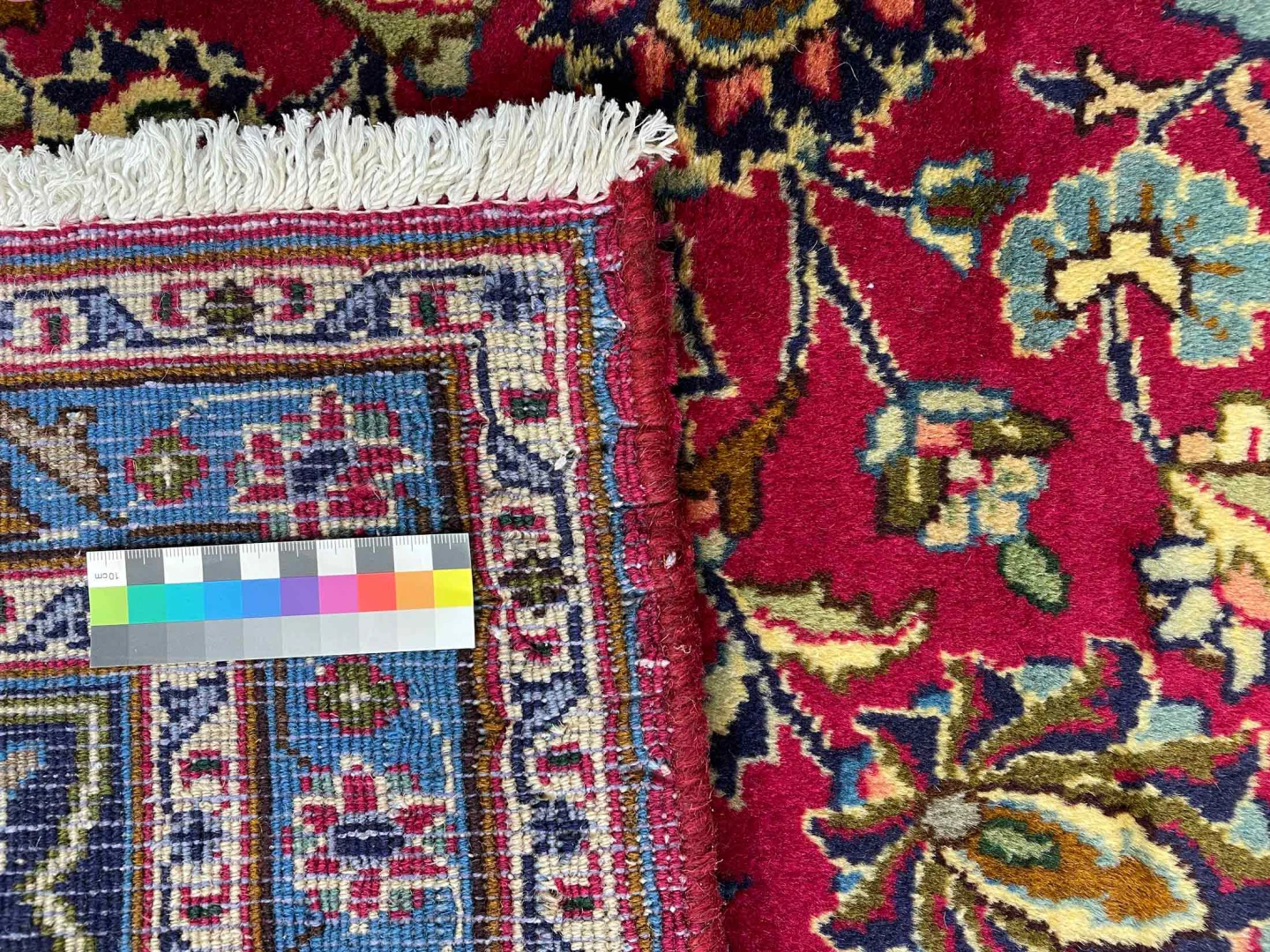 Kette aus Baumwolle: Baumwolle eignet sich hervorragend als Kette (Grundgewebe) für einen echten handgeknüpften Teppich, da Sie strapazierfähig und gleichzeitig fein und engmaschig gesponnen werden kann.