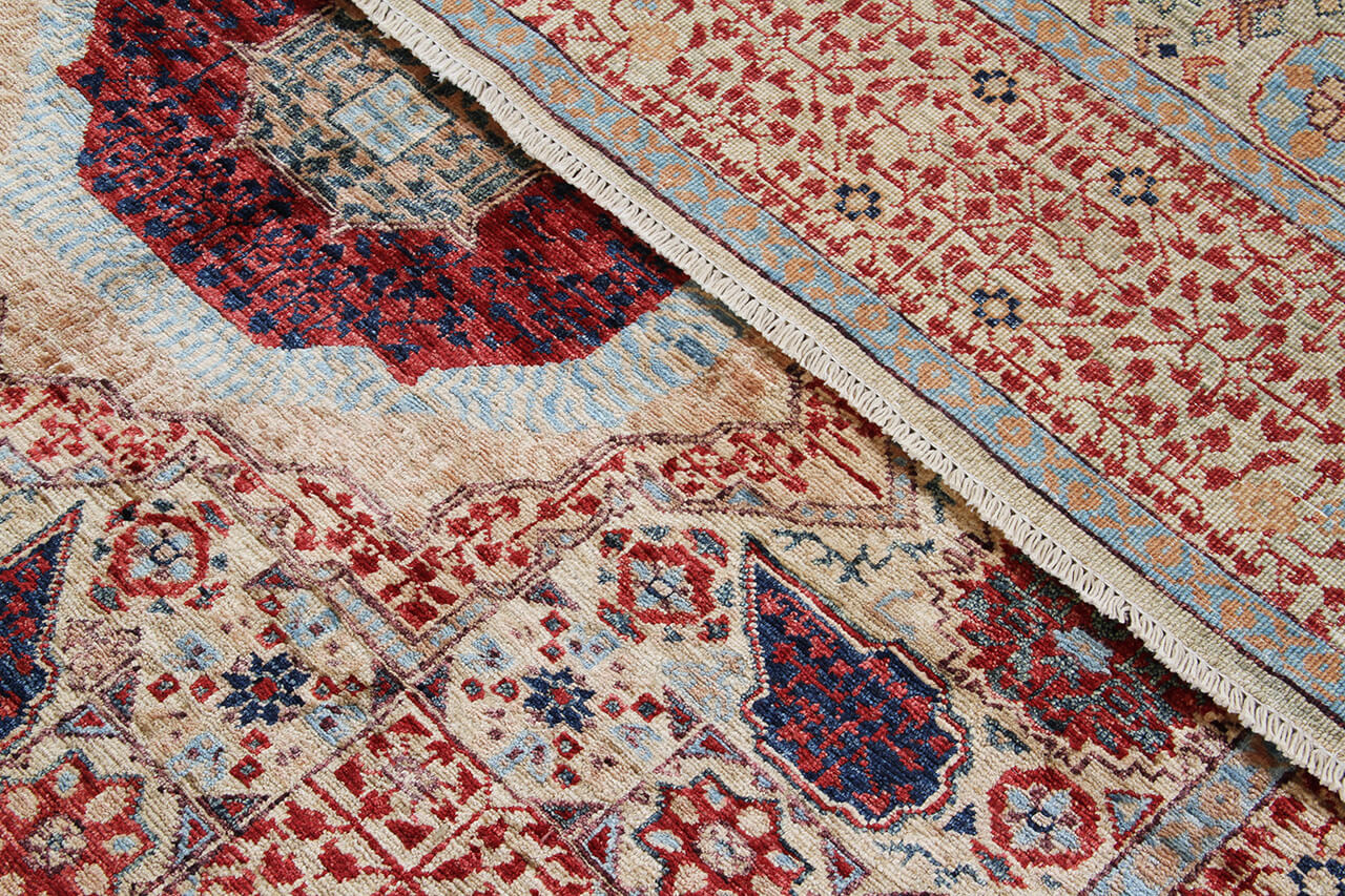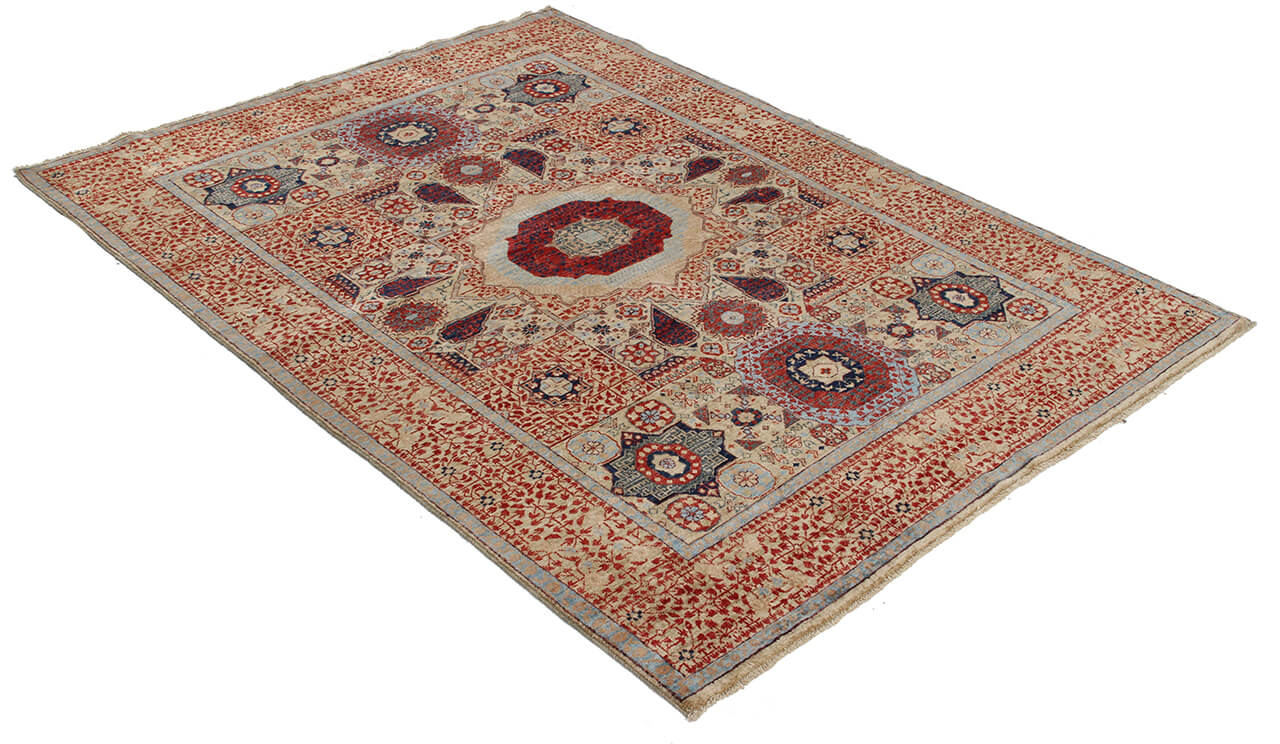 Mamluk Teppiche: Der Mamluk-Teppich kommt ursprünglich aus dem Ägyptischen Reich und wurde schätzungsweise im 14. Jahrhundert das erste Mal geknüpft. Diese sehr schönen Seidenteppiche werden auch schon seit längerer Zeit in Afghanistan hergestellt. Charakteristisch ist ihre sehr hohe Qualität und das typische Mamluk-Medaillon in der Mitte des Teppichs.