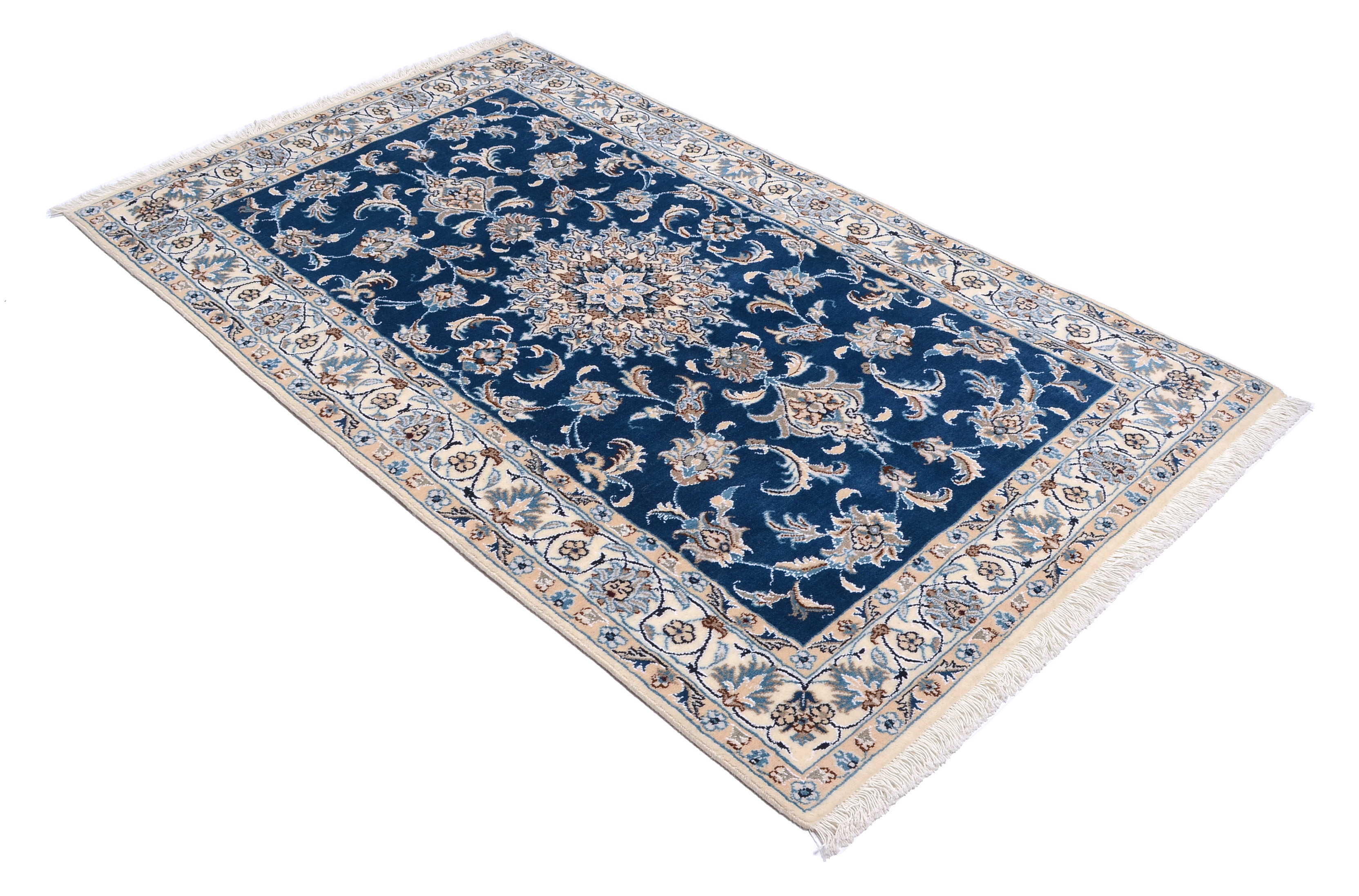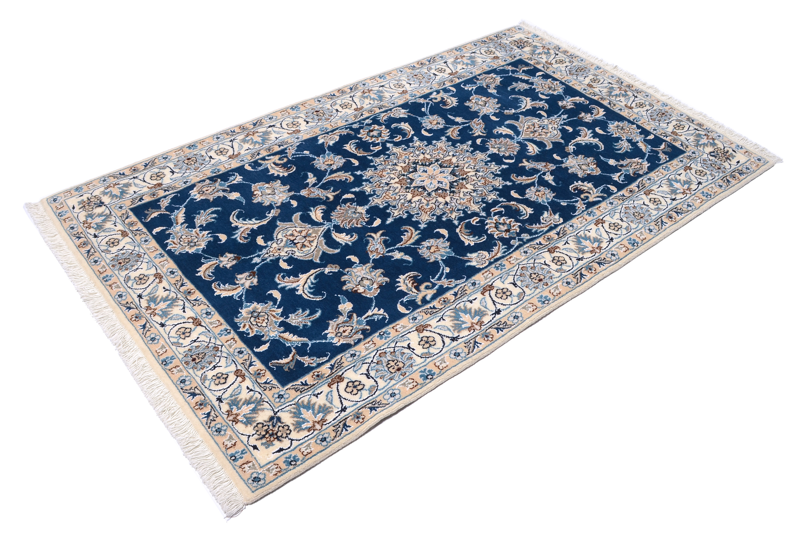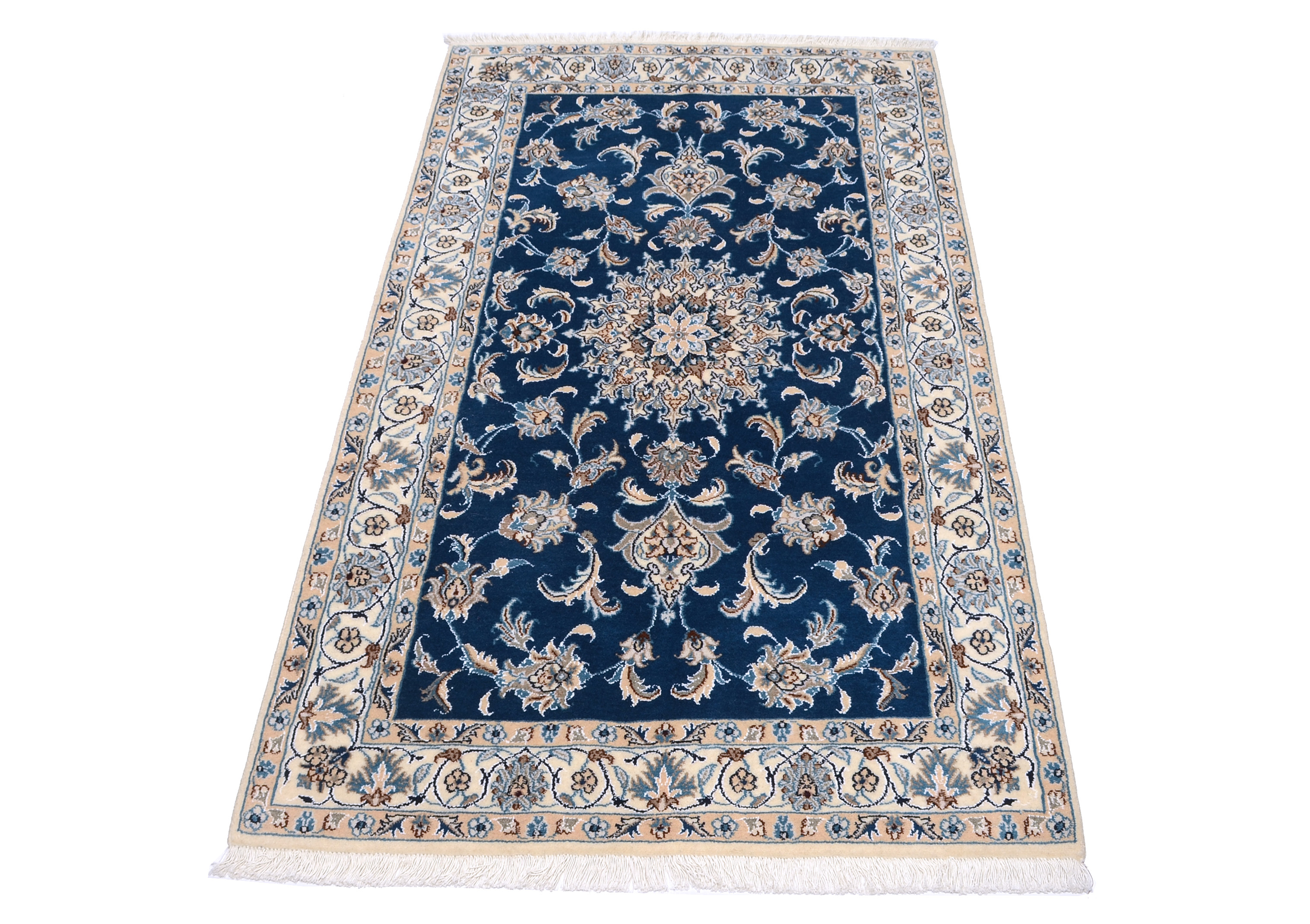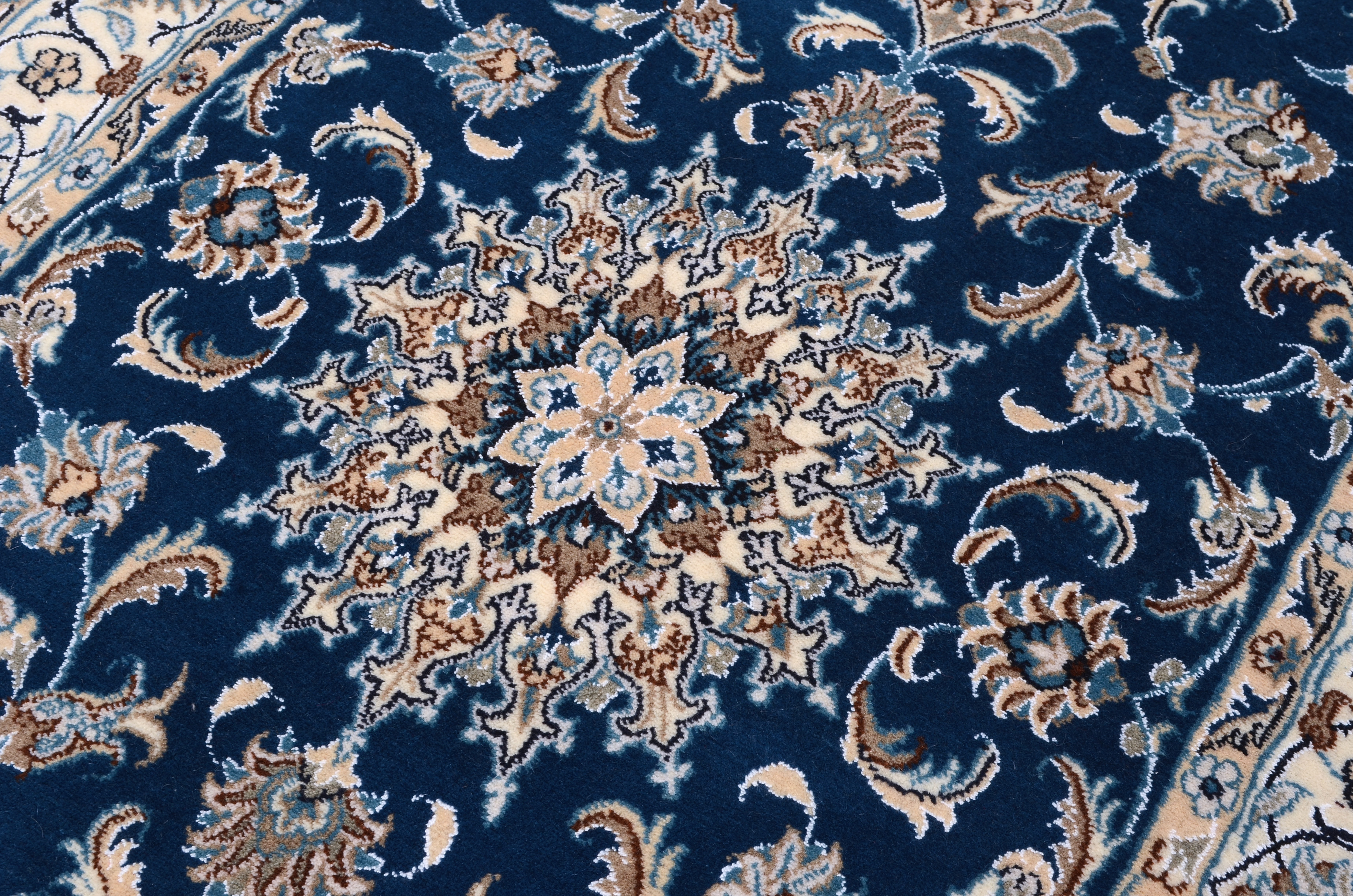 Nain Teppiche: Nain Teppiche entstammen der persischen Oasenstadt in der Provinz Isfahan. Die Stadt Nain ist weltweit bekannt für ihre Teppichknüpfereien und auch vielen Laien ein Begriff. Der unverwechselbare helle Grundton wird meistens mit einem kräftigen, königsblauen Ton kombiniert. Die Musterung der Teppiche reicht von klassischen floralen Motiven bis hin zu sehr ungewöhnlichen Neuinterpretationen andere persischer Muster. Durch seine Musterung, Farbwahl und Knüpfung ist der Nain Teppich ein besonders exklusiver Perserteppich, der Ihrer Einrichtung eine exklusive Note und einen echten Blickfang verleiht.