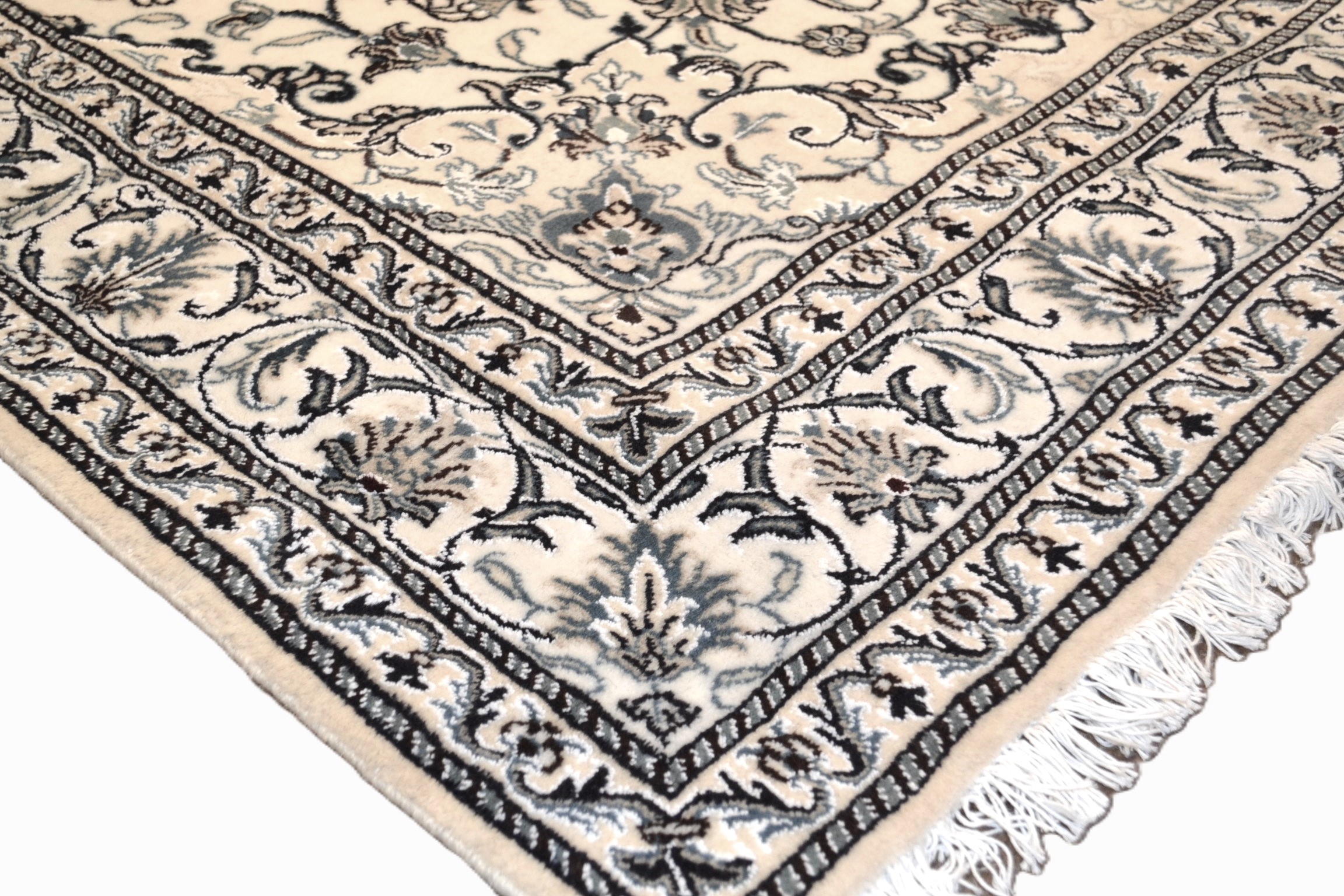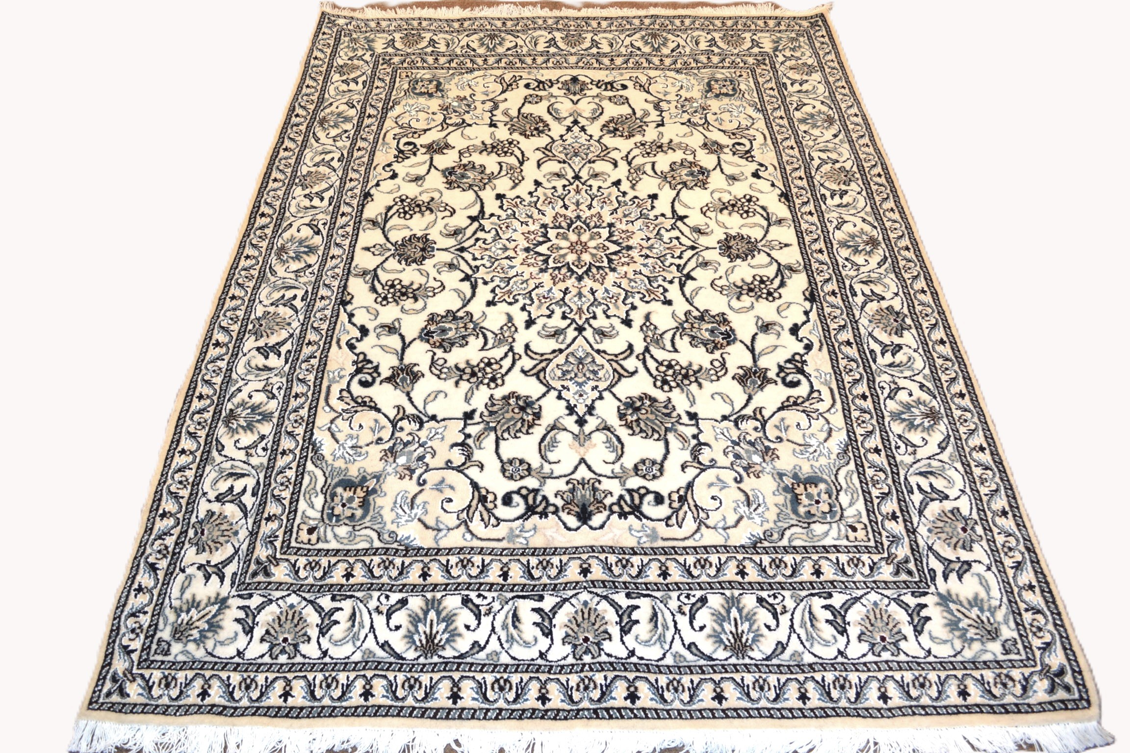 Nain Teppiche: Nain Teppiche entstammen der persischen Oasenstadt in der Provinz Isfahan. Die Stadt Nain ist weltweit bekannt für ihre Teppichknüpfereien und auch vielen Laien ein Begriff. Der unverwechselbare helle Grundton wird meistens mit einem kräftigen, königsblauen Ton kombiniert. Die Musterung der Teppiche reicht von klassischen floralen Motiven bis hin zu sehr ungewöhnlichen Neuinterpretationen andere persischer Muster. Durch seine Musterung, Farbwahl und Knüpfung ist der Nain Teppich ein besonders exklusiver Perserteppich, der Ihrer Einrichtung eine exklusive Note und einen echten Blickfang verleiht.