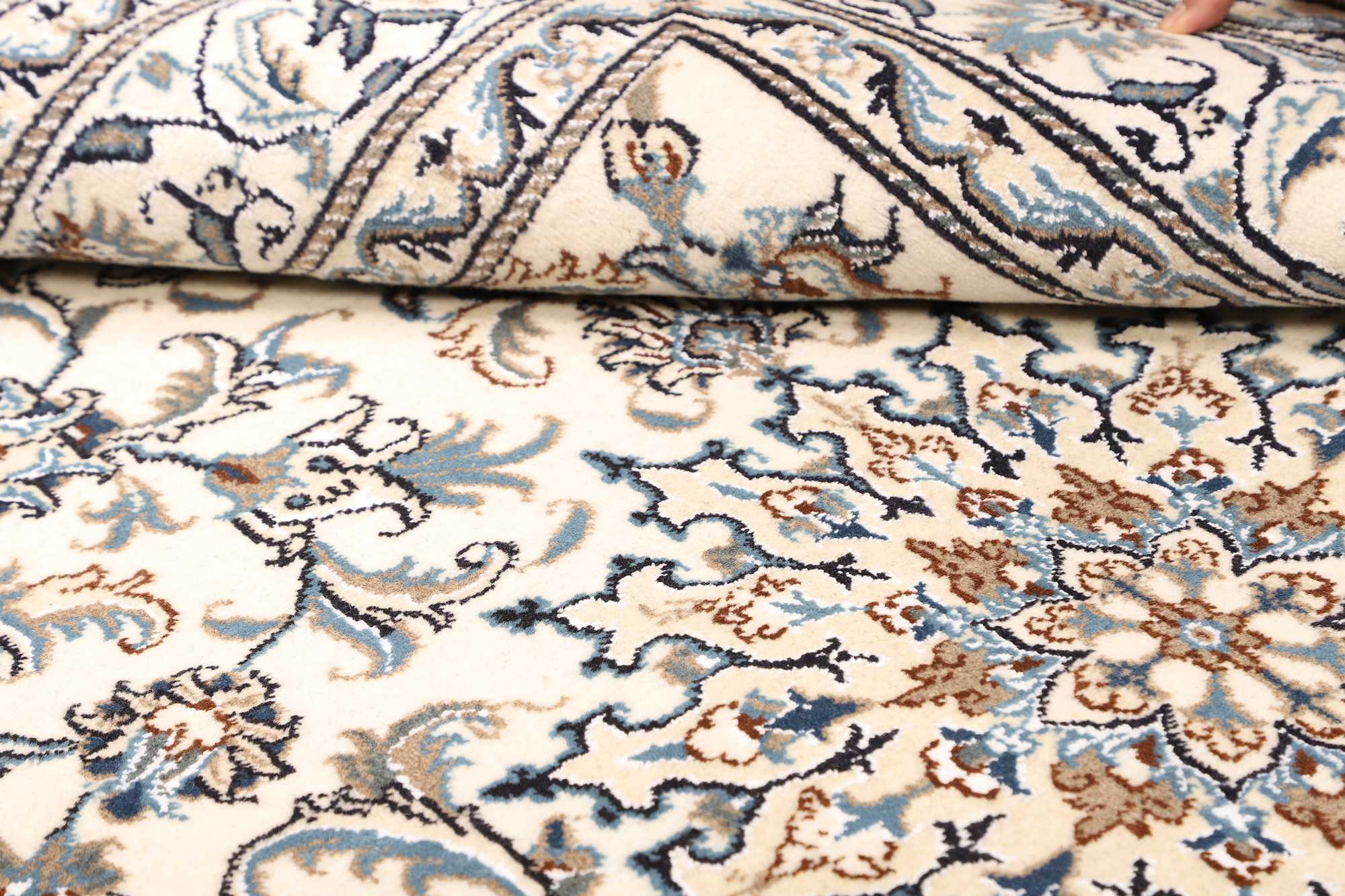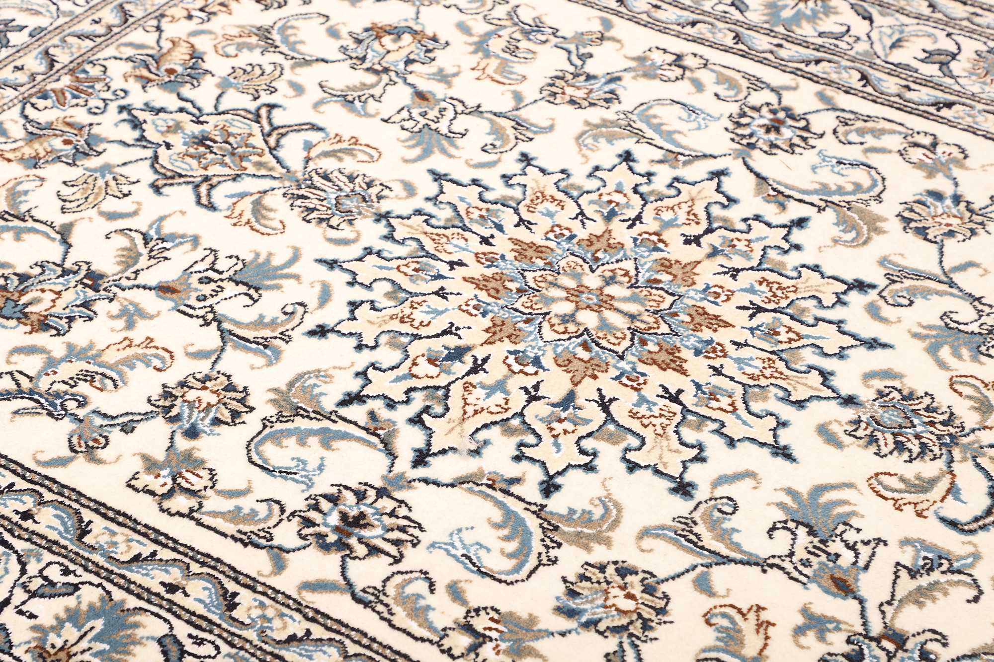 Nain Teppiche: Nain Teppiche entstammen der persischen Oasenstadt in der Provinz Isfahan. Die Stadt Nain ist weltweit bekannt für ihre Teppichknüpfereien und auch vielen Laien ein Begriff. Der unverwechselbare helle Grundton wird meistens mit einem kräftigen, königsblauen Ton kombiniert. Die Musterung der Teppiche reicht von klassischen floralen Motiven bis hin zu sehr ungewöhnlichen Neuinterpretationen andere persischer Muster. Durch seine Musterung, Farbwahl und Knüpfung ist der Nain Teppich ein besonders exklusiver Perserteppich, der Ihrer Einrichtung eine exklusive Note und einen echten Blickfang verleiht.