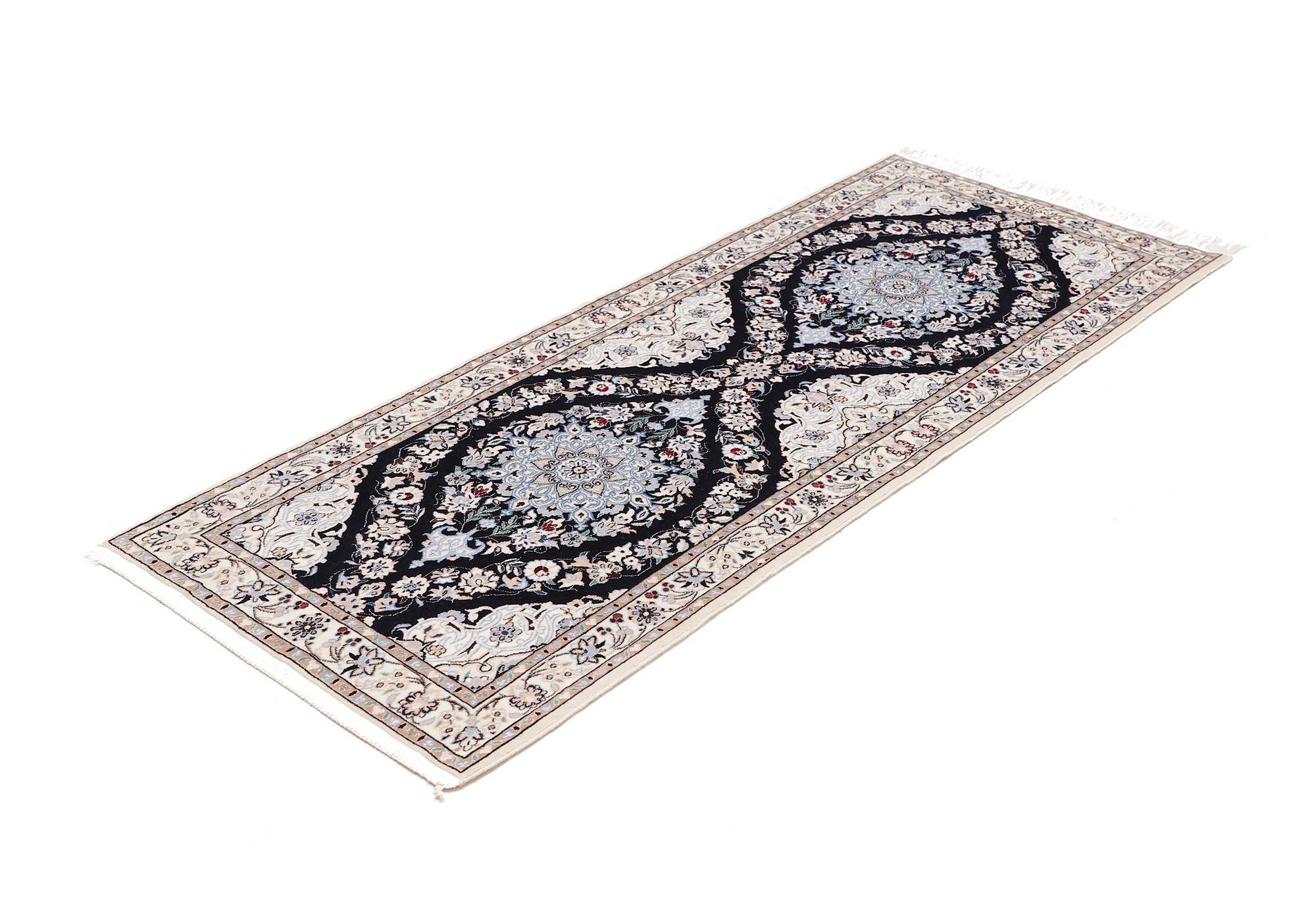 Nain Teppiche: Nain Teppiche entstammen der persischen Oasenstadt in der Provinz Isfahan. Die Stadt Nain ist weltweit bekannt für ihre Teppichknüpfereien und auch vielen Laien ein Begriff. Der unverwechselbare helle Grundton wird meistens mit einem kräftigen, königsblauen Ton kombiniert. Die Musterung der Teppiche reicht von klassischen floralen Motiven bis hin zu sehr ungewöhnlichen Neuinterpretationen andere persischer Muster. Durch seine Musterung, Farbwahl und Knüpfung ist der Nain Teppich ein besonders exklusiver Perserteppich, der Ihrer Einrichtung eine exklusive Note und einen echten Blickfang verleiht.