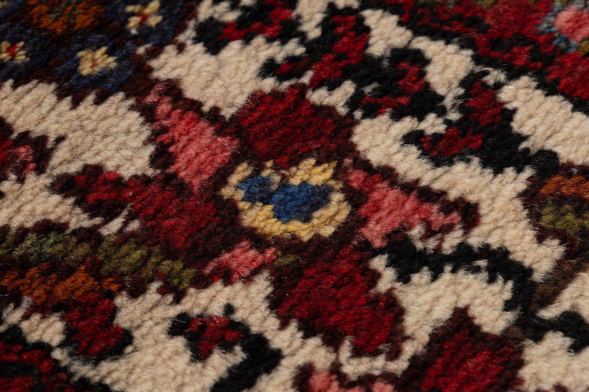 Kette aus Baumwolle: Baumwolle eignet sich hervorragend als Kette (Grundgewebe) für einen echten handgeknüpften Teppich, da Sie strapazierfähig und gleichzeitig fein und engmaschig gesponnen werden kann.