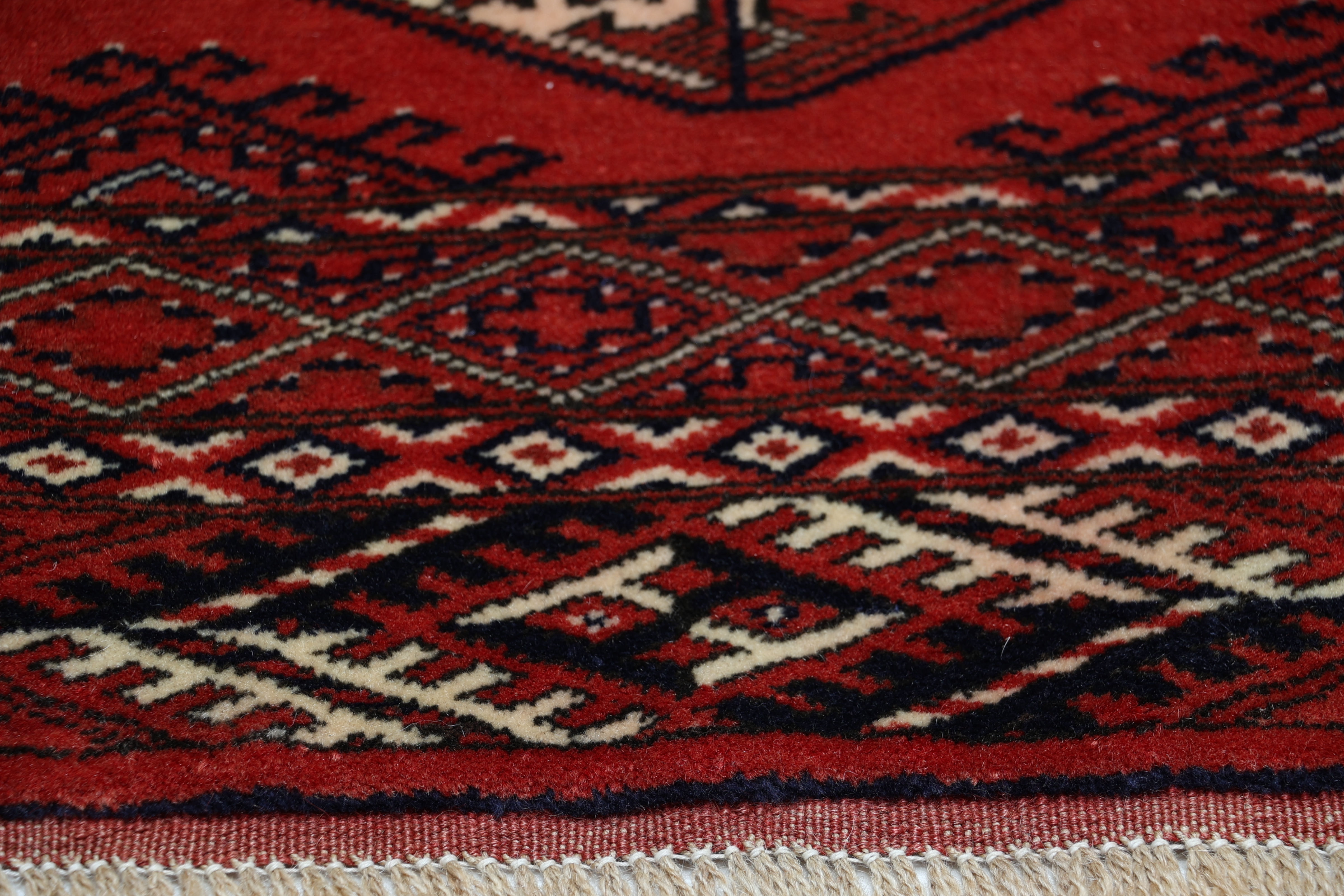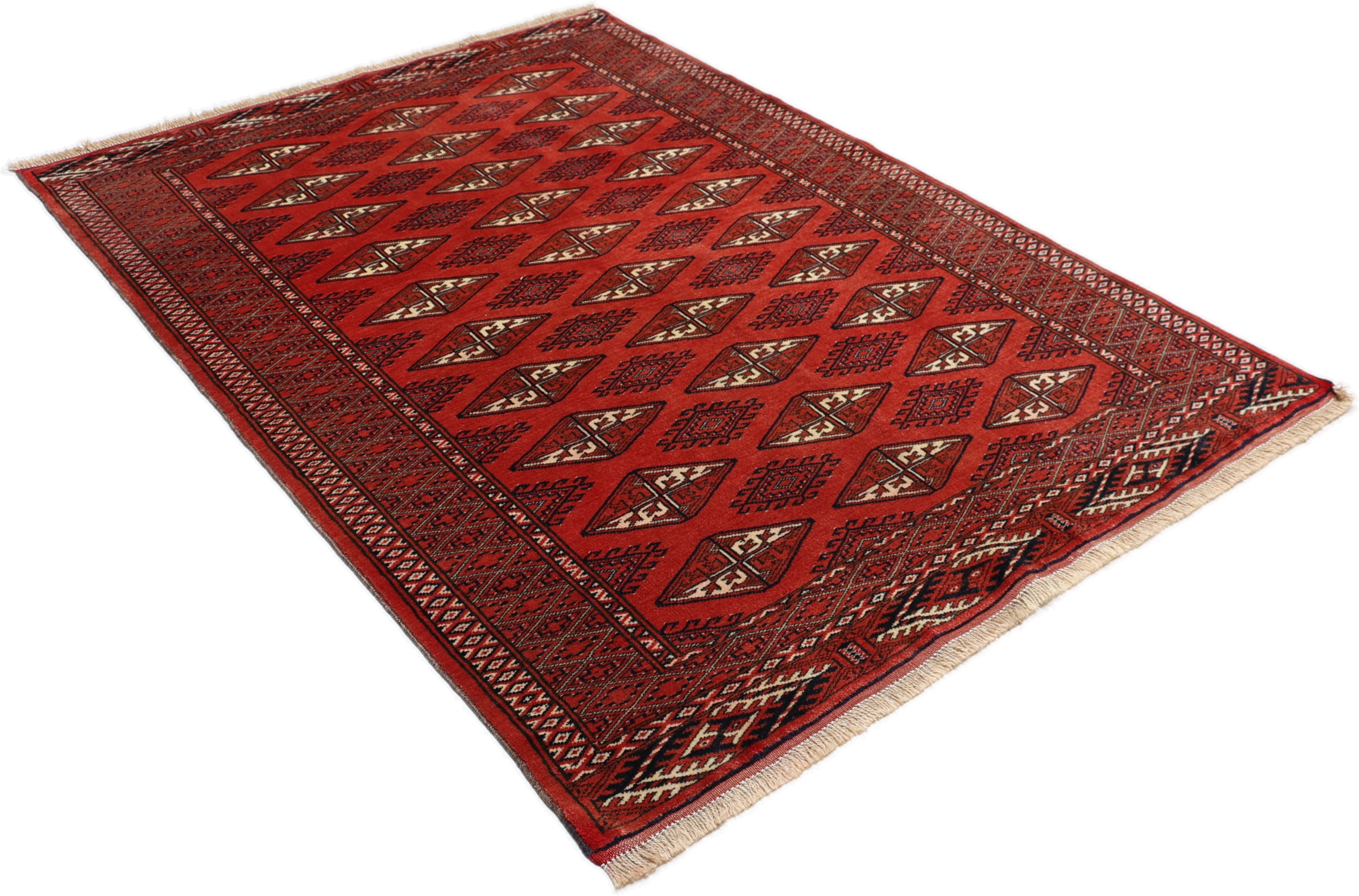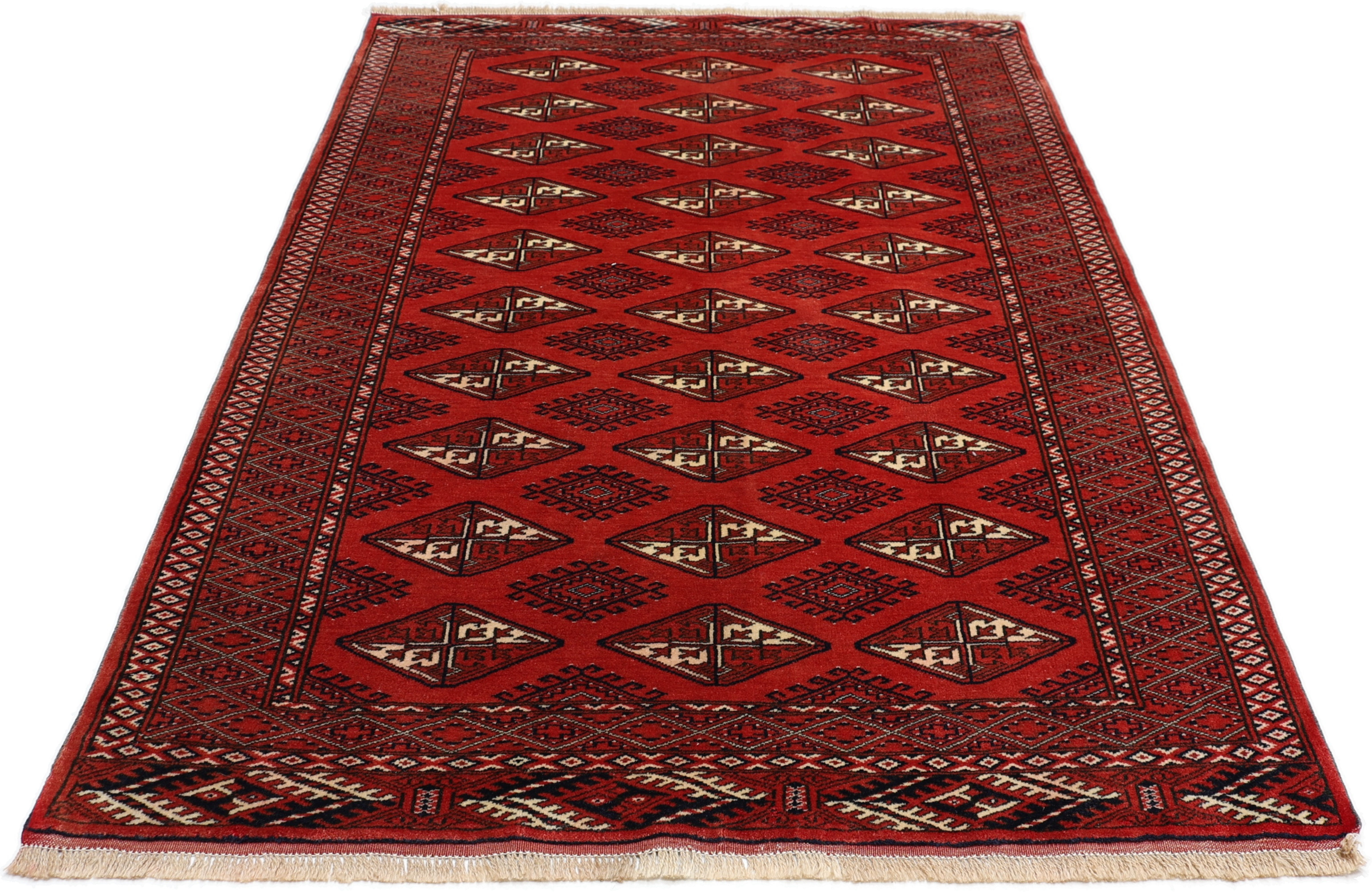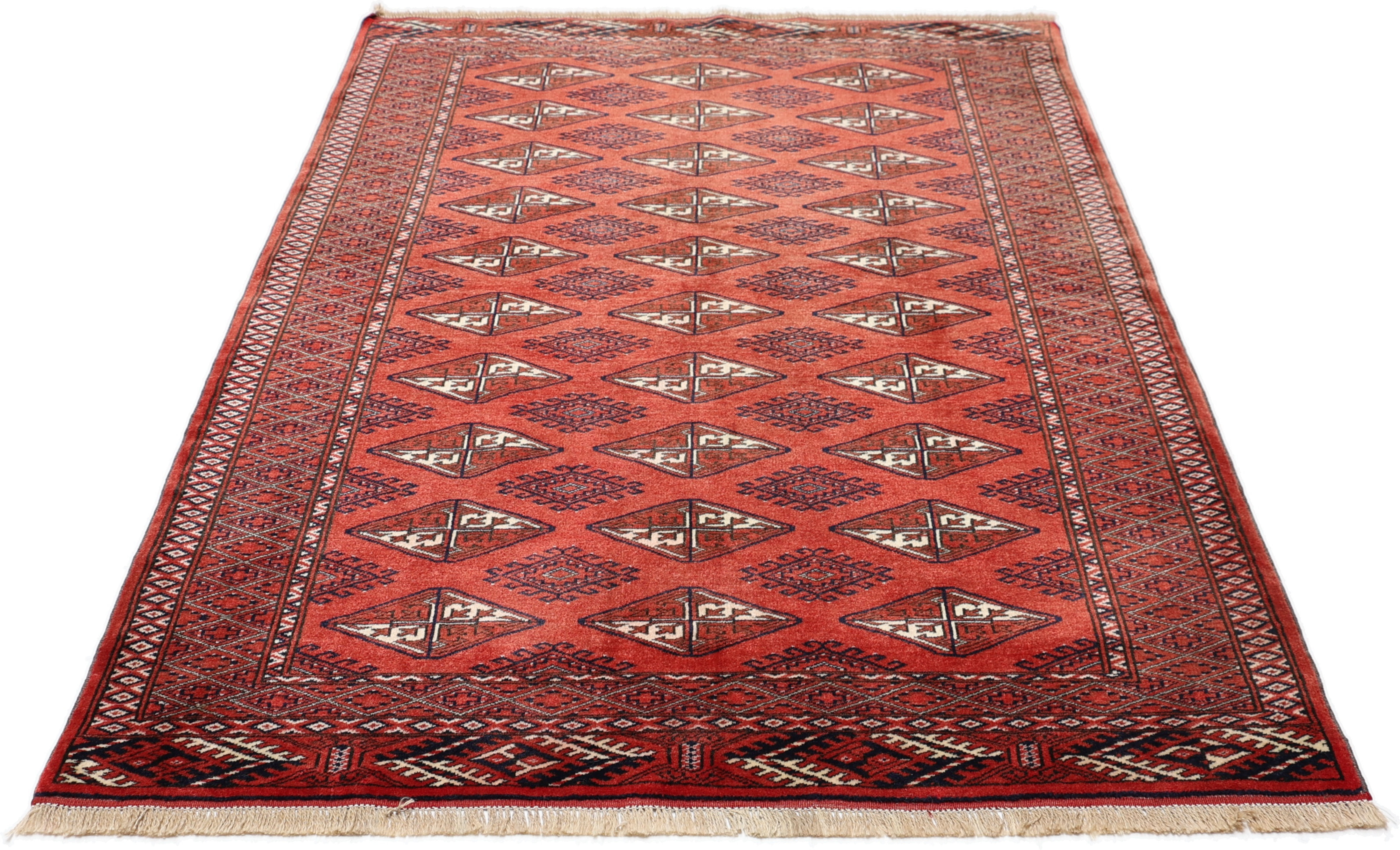 Turkmen Teppiche: Turkmen Teppiche werden vom Volksstamm der Turkmenen geknüpft. Die Turkmenen leben in einem Gebiet, dass sich von China über Afghanistan, Pakistan und dem Iran bis hin zur Türkei ausdehnt. Trotz der großen Streuung verstehen sich die Turkmenen immer noch als ein Volk. Auch ihre Teppiche haben mit diversen traditionellen Überlieferungen zum Zusammenhalt beigetragen. Grade bei Sammlern sind die Turkmen Teppiche deshalb sehr begehrt, da die Teppiche Zeugen der langen Geschichte dieses Volkes sind. Diese Teppiche sind daher für Geschichte- und Kulturliebhaber besonders interessant. Gerade zu älteren Turkmen Teppiche in unserem Sortiment können Sie gerne nach weiterführenden Informationen fragen.
