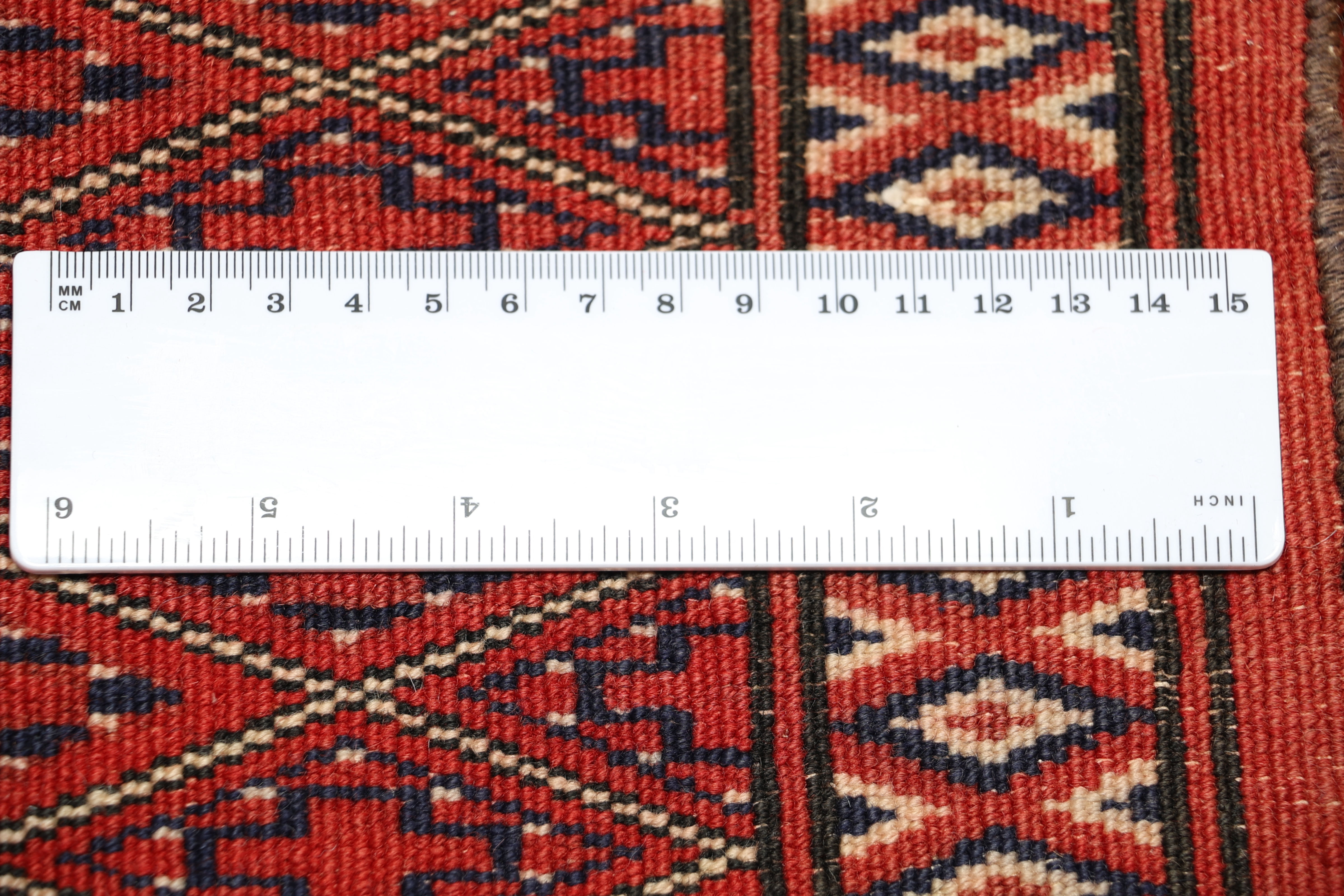 Kette aus Schurwolle: Handversponnene Schurwolle wird von Nomaden nicht nur im Flor, sondern auch für die Kette (das Grundgewebe) benutzt.