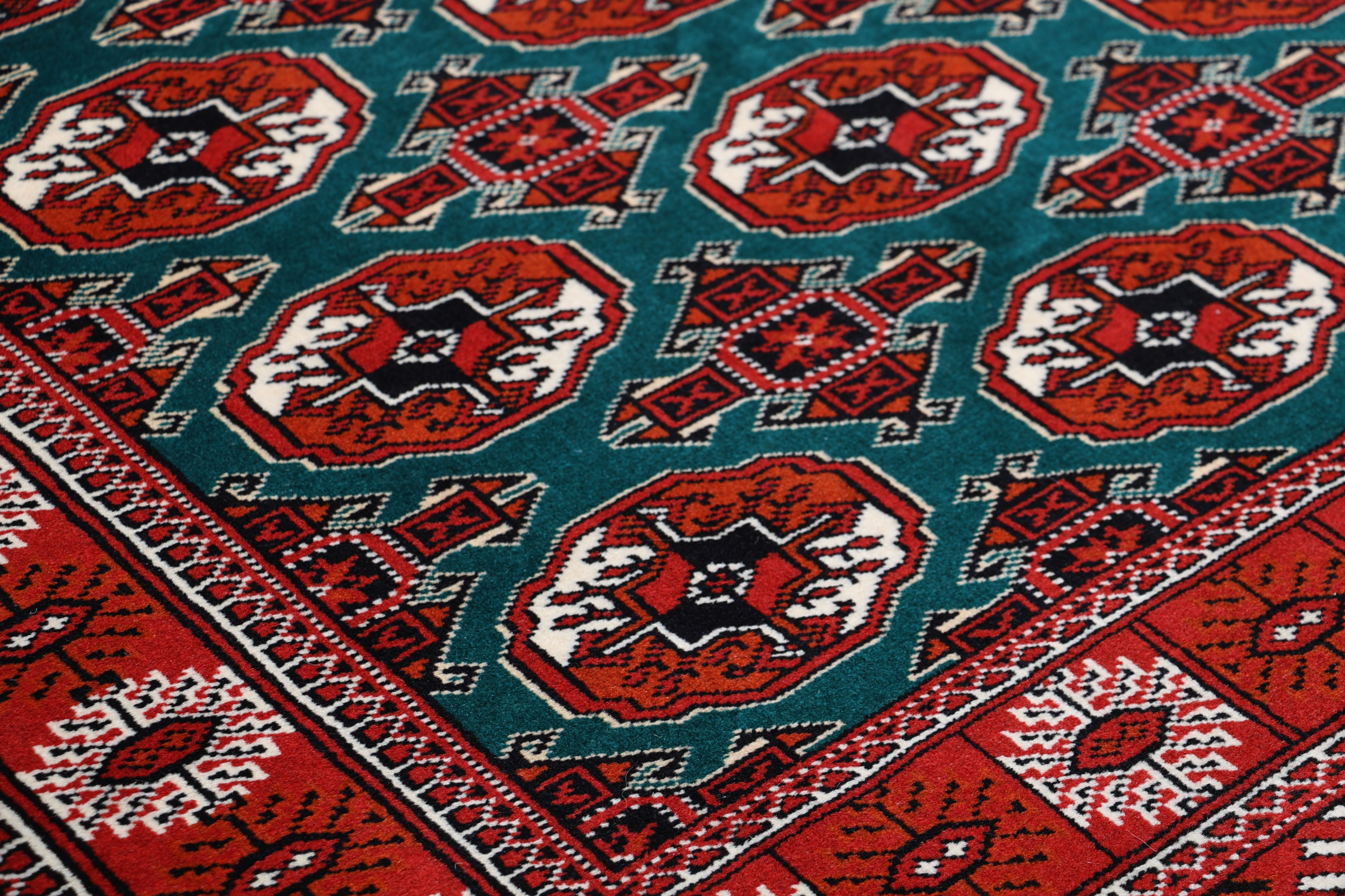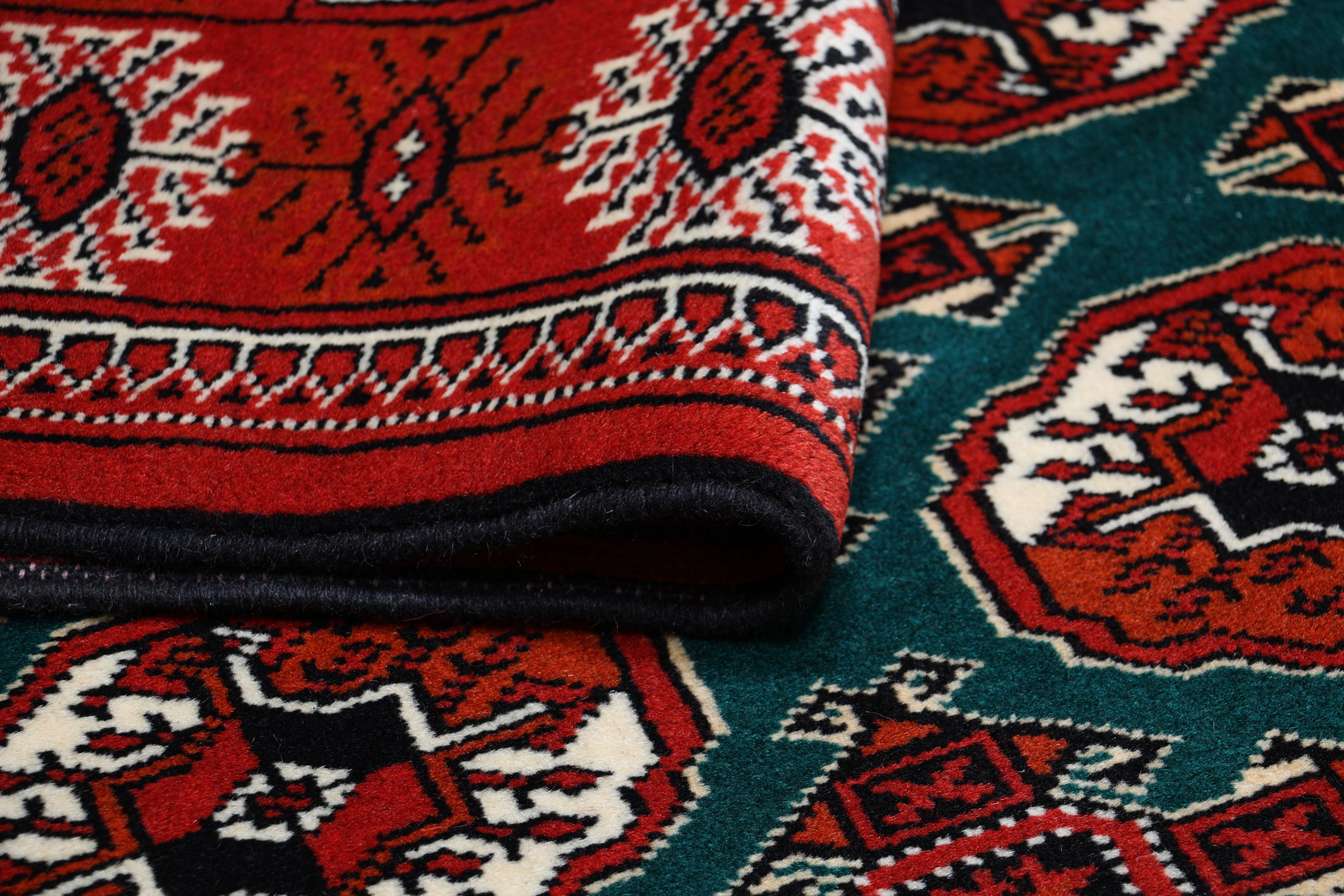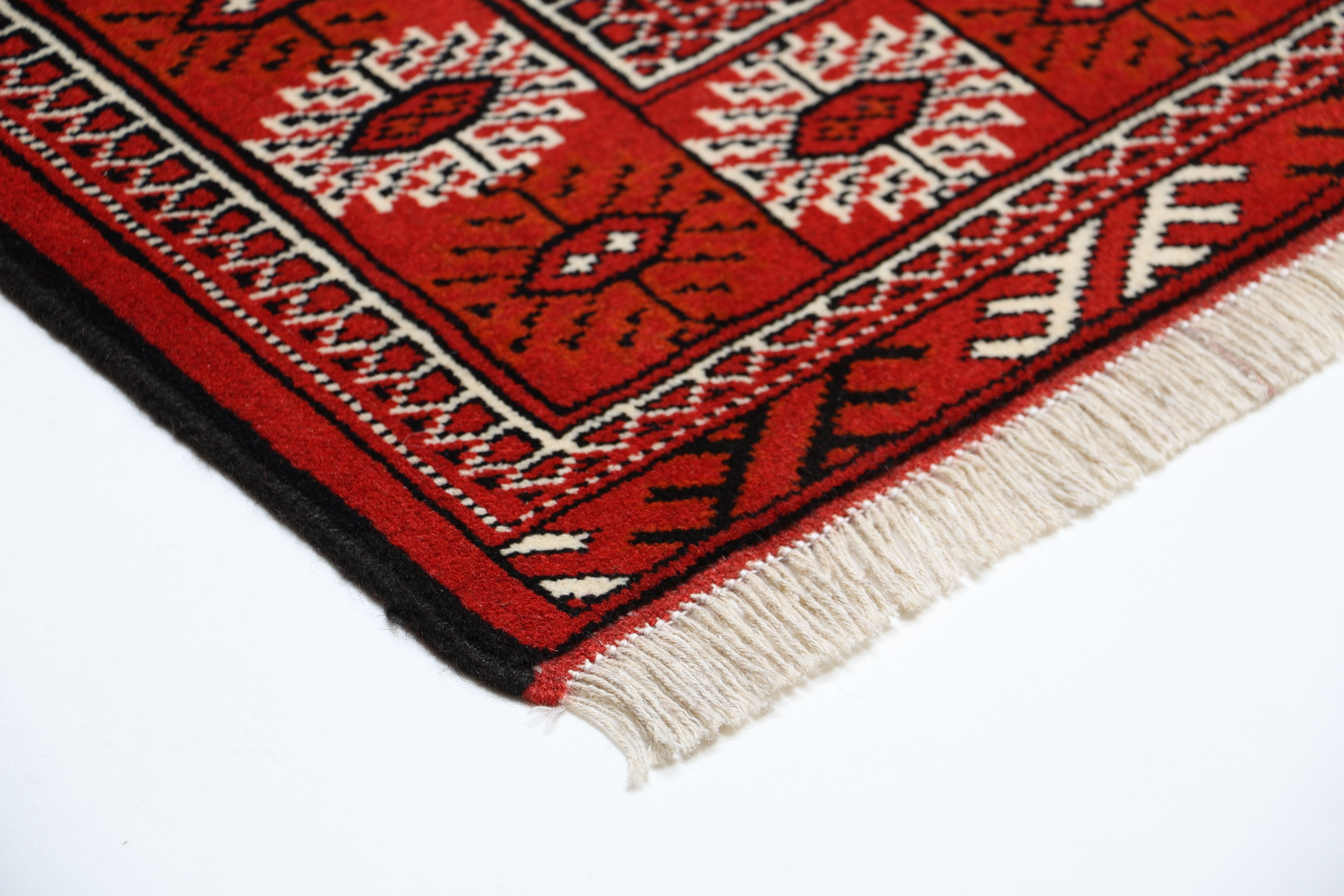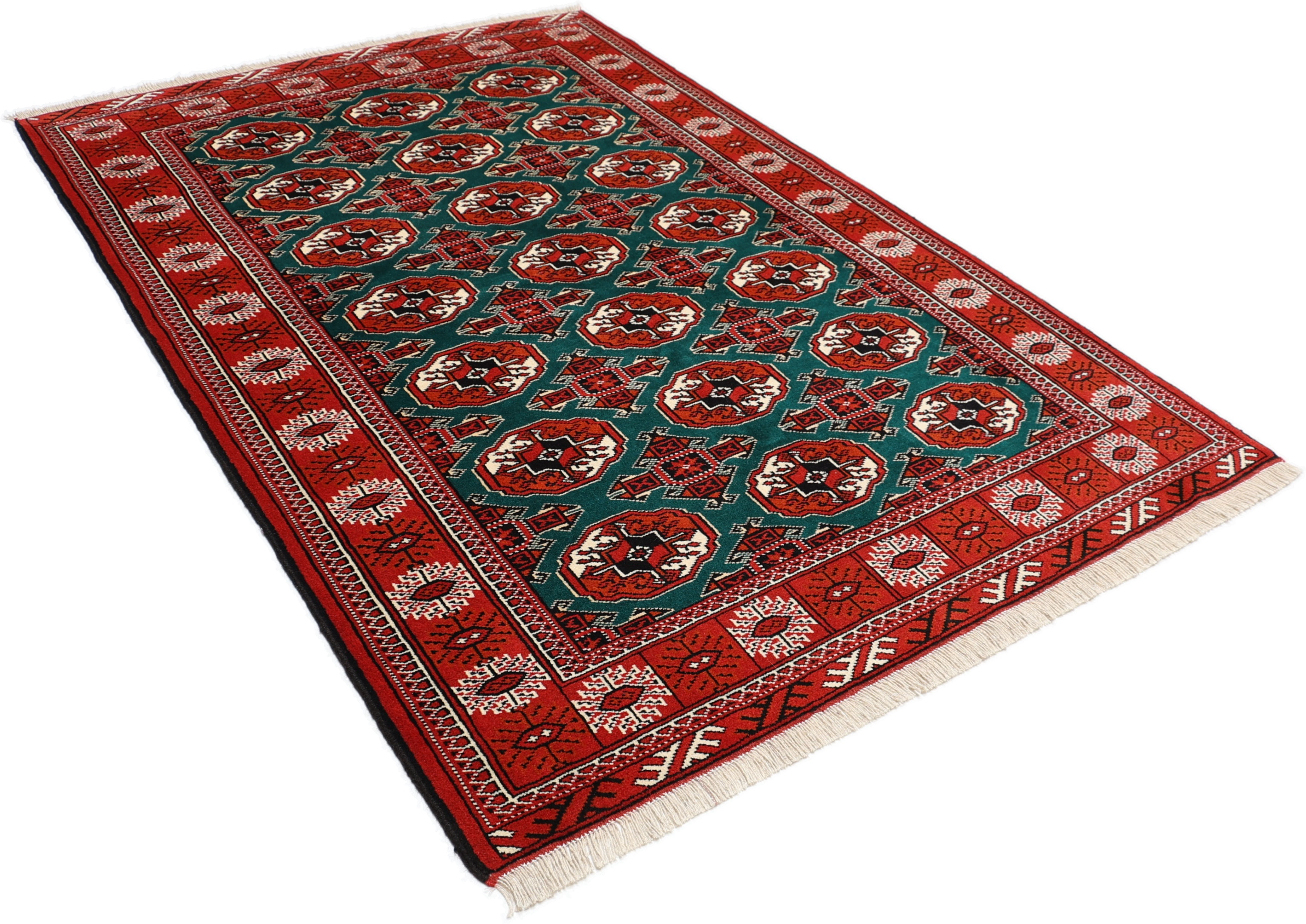 Turkmen Teppiche: Turkmen Teppiche werden vom Volksstamm der Turkmenen geknüpft. Die Turkmenen leben in einem Gebiet, dass sich von China über Afghanistan, Pakistan und dem Iran bis hin zur Türkei ausdehnt. Trotz der großen Streuung verstehen sich die Turkmenen immer noch als ein Volk. Auch ihre Teppiche haben mit diversen traditionellen Überlieferungen zum Zusammenhalt beigetragen. Grade bei Sammlern sind die Turkmen Teppiche deshalb sehr begehrt, da die Teppiche Zeugen der langen Geschichte dieses Volkes sind. Diese Teppiche sind daher für Geschichte- und Kulturliebhaber besonders interessant. Gerade zu älteren Turkmen Teppiche in unserem Sortiment können Sie gerne nach weiterführenden Informationen fragen.