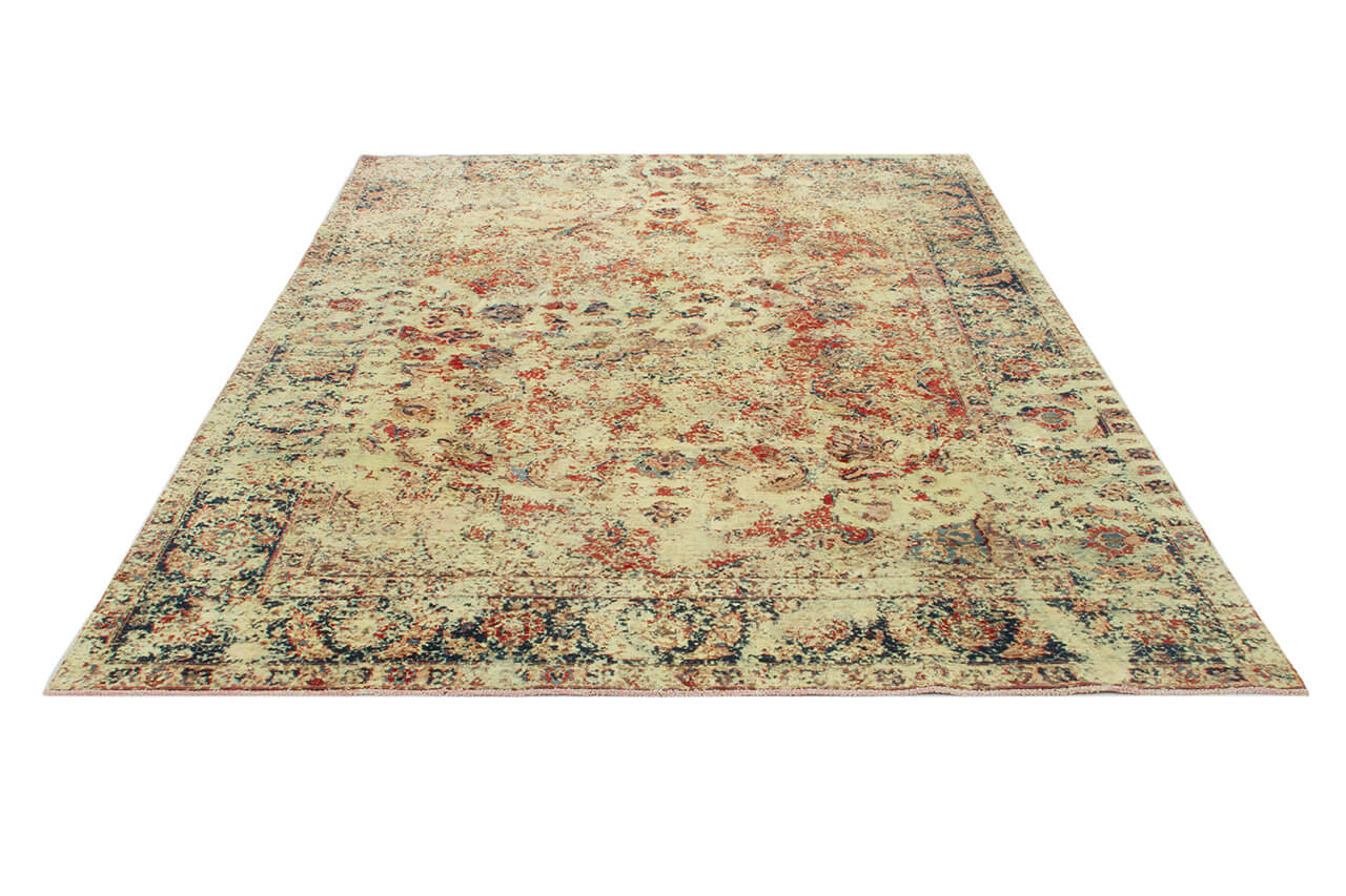 Vintage Teppiche: Vintage Teppiche werden aus alten Perserteppichen hergestellt. Dafür werden die Teppiche zunächst gefärbt und hinterher der Flor teilweise abgetragen. Dadurch entsteht die einzigartige Schönheit dieser Teppiche und gleichzeitig wird den alten Teppichen neues Leben verliehen.