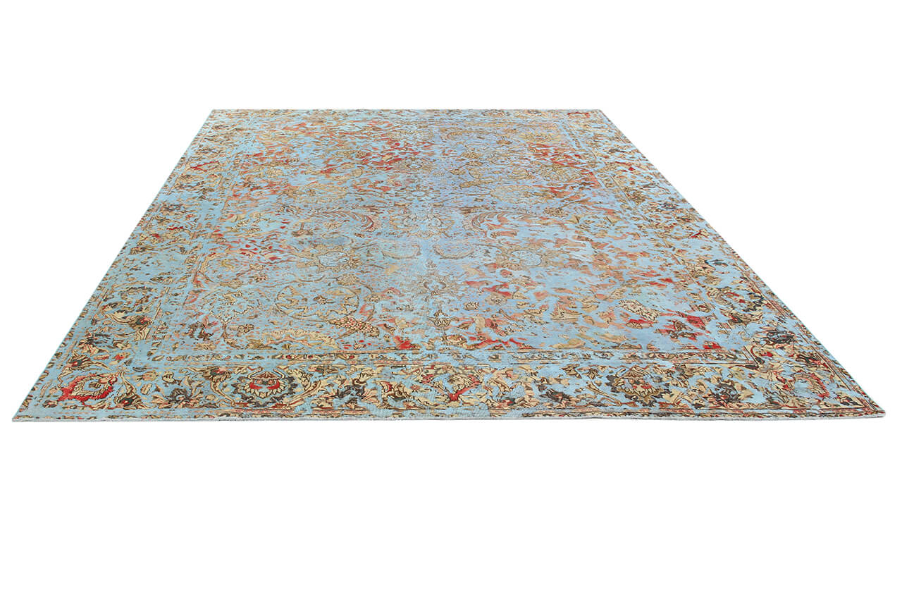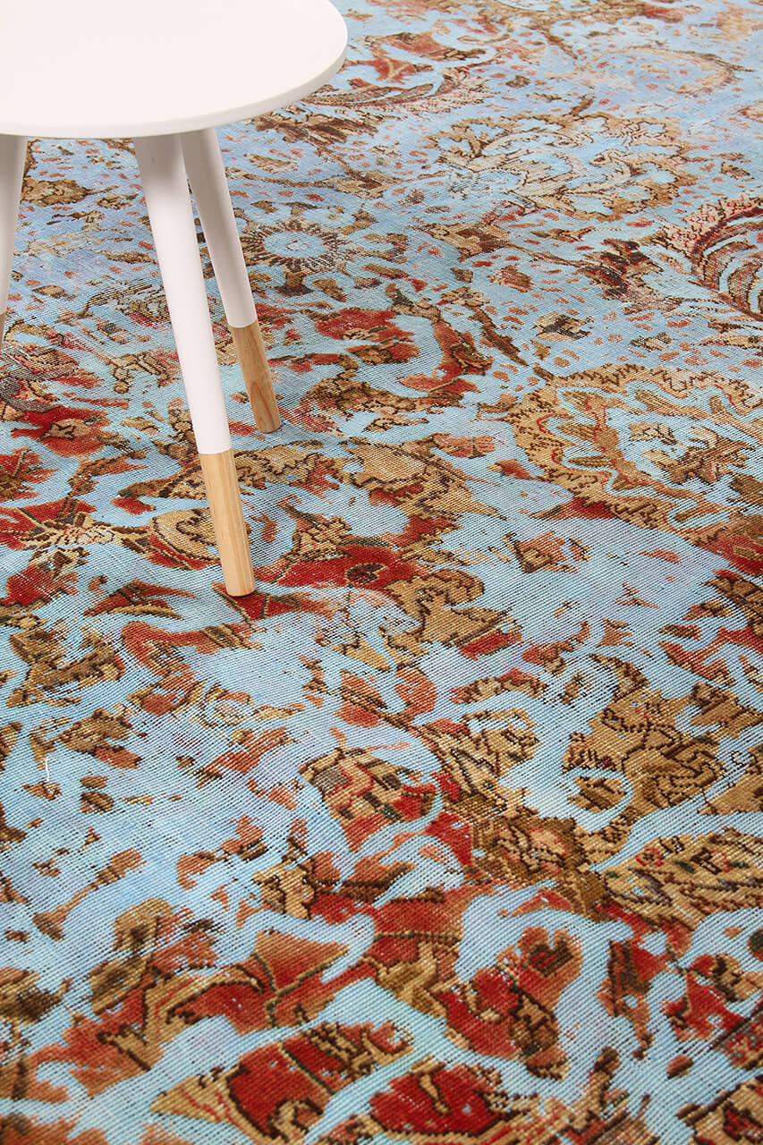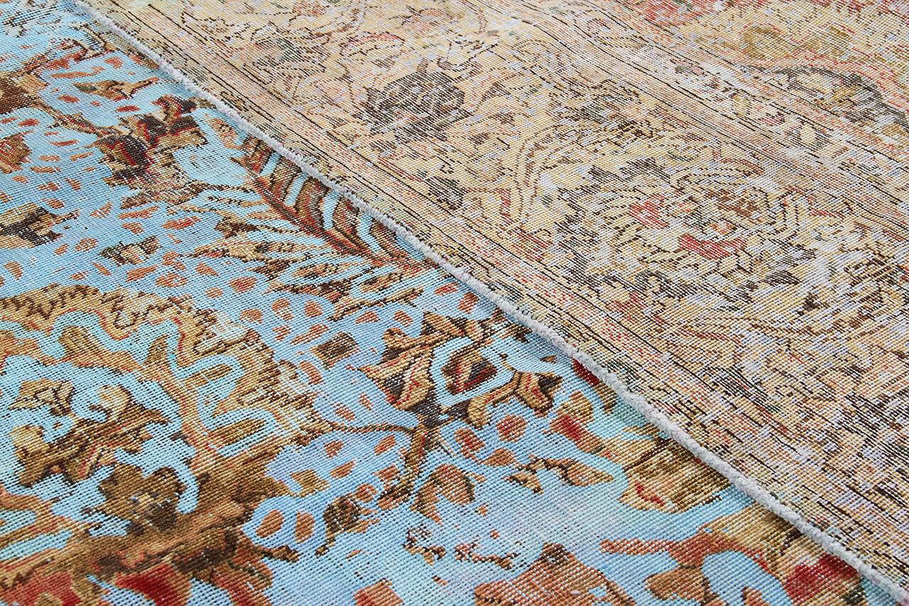 Vintage Teppiche: Vintage Teppiche werden aus alten Perserteppichen hergestellt. Dafür werden die Teppiche zunächst gefärbt und hinterher der Flor teilweise abgetragen. Dadurch entsteht die einzigartige Schönheit dieser Teppiche und gleichzeitig wird den alten Teppichen neues Leben verliehen.