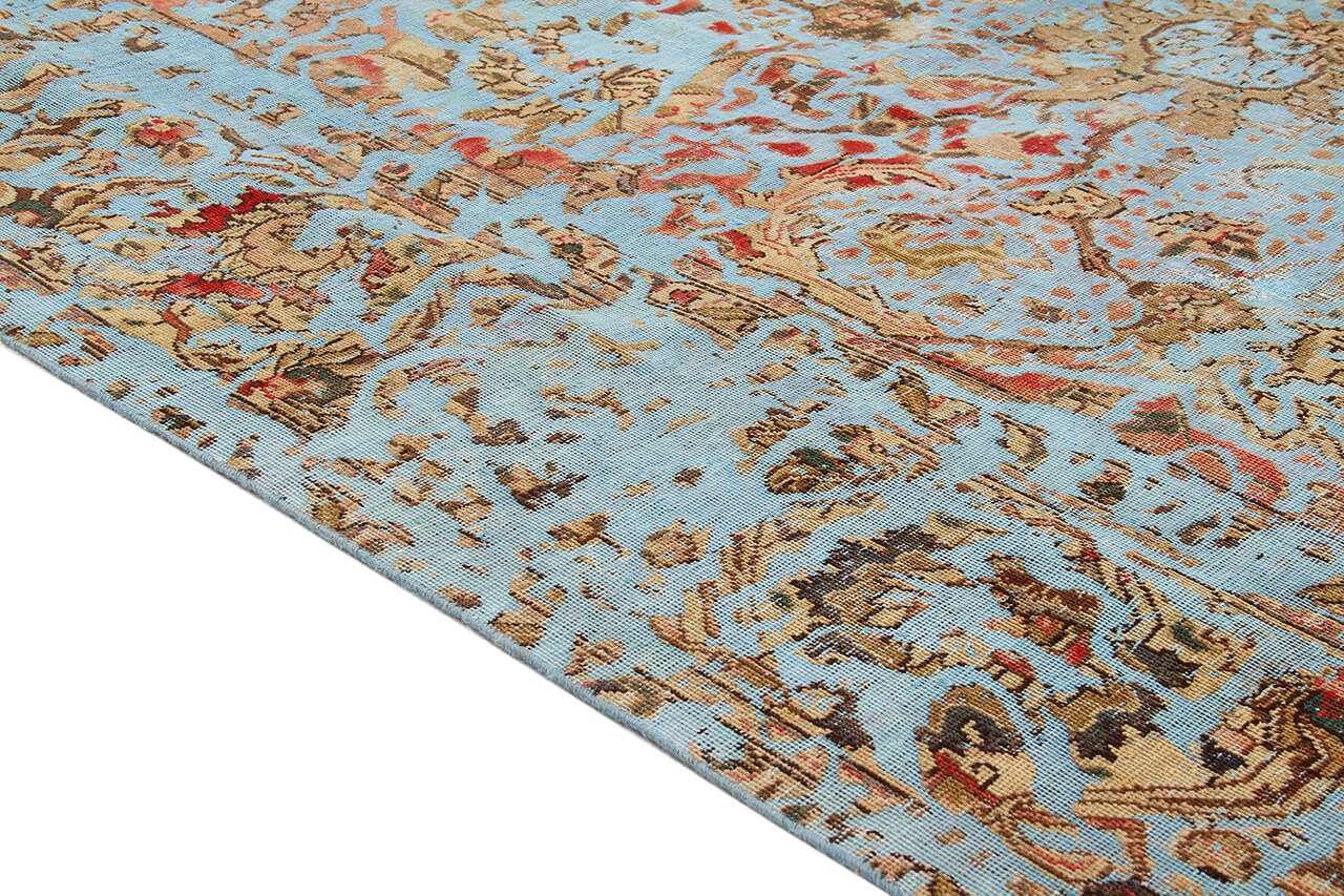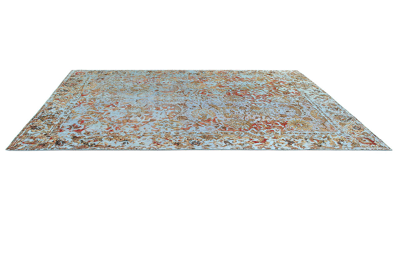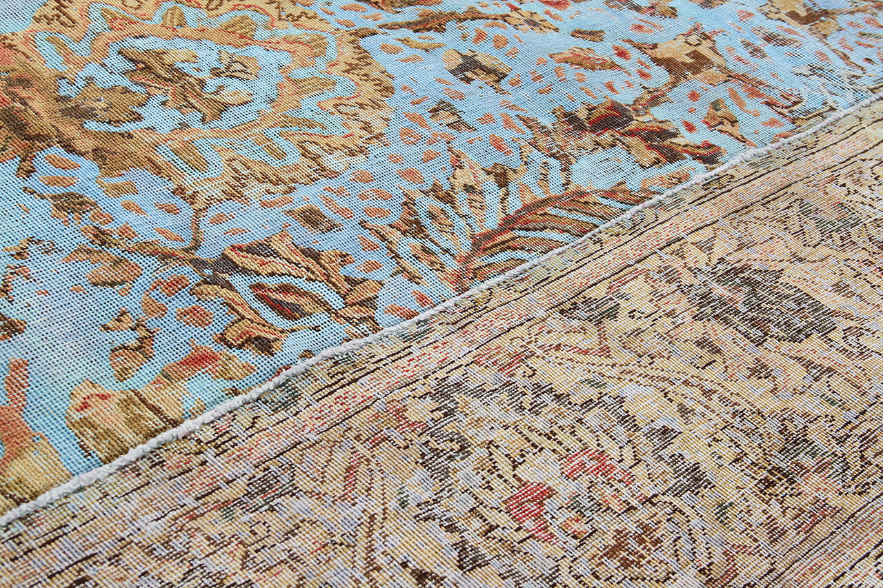Vintage Teppiche: Vintage Teppiche werden aus alten Perserteppichen hergestellt. Dafür werden die Teppiche zunächst gefärbt und hinterher der Flor teilweise abgetragen. Dadurch entsteht die einzigartige Schönheit dieser Teppiche und gleichzeitig wird den alten Teppichen neues Leben verliehen.