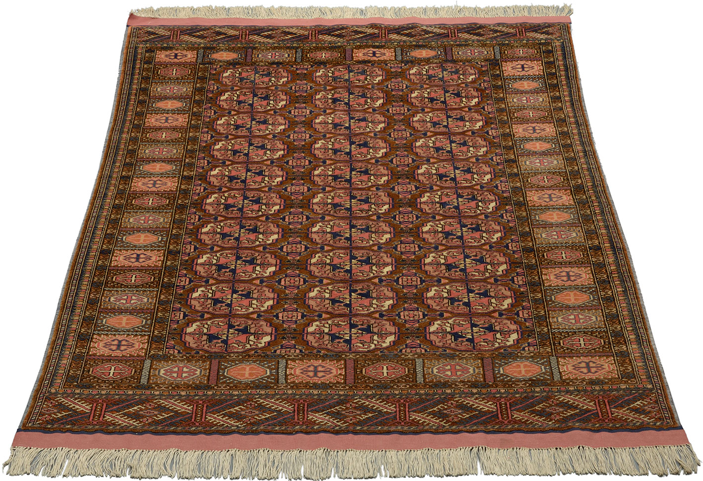 Turkmen Teppiche: Turkmen Teppiche werden vom Volksstamm der Turkmenen geknüpft. Die Turkmenen leben in einem Gebiet, dass sich von China über Afghanistan, Pakistan und dem Iran bis hin zur Türkei ausdehnt. Trotz der großen Streuung verstehen sich die Turkmenen immer noch als ein Volk. Auch ihre Teppiche haben mit diversen traditionellen Überlieferungen zum Zusammenhalt beigetragen. Grade bei Sammlern sind die Turkmen Teppiche deshalb sehr begehrt, da die Teppiche Zeugen der langen Geschichte dieses Volkes sind. Diese Teppiche sind daher für Geschichte- und Kulturliebhaber besonders interessant. Gerade zu älteren Turkmen Teppiche in unserem Sortiment können Sie gerne nach weiterführenden Informationen fragen.